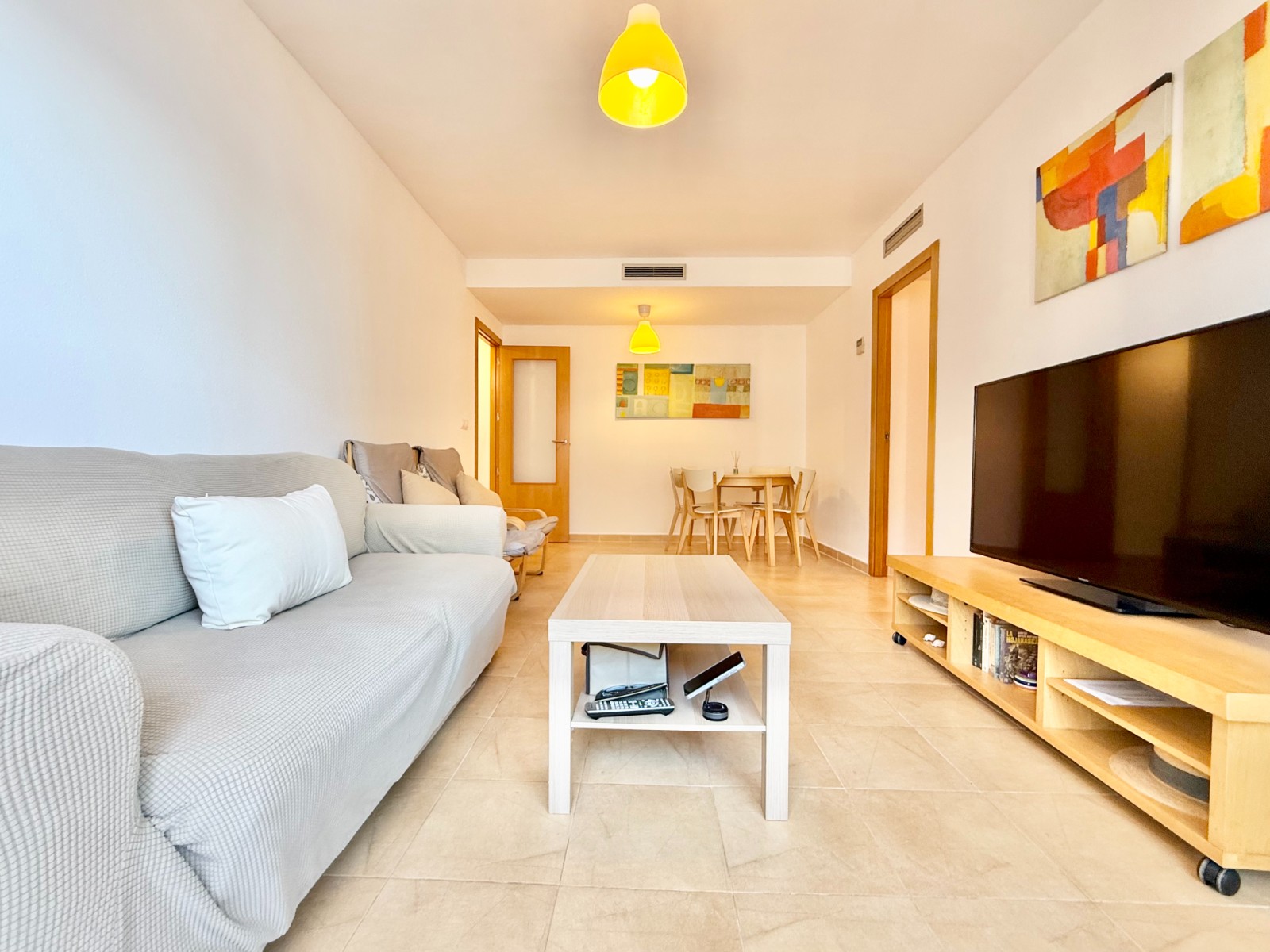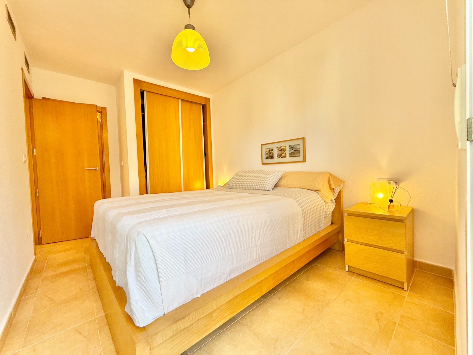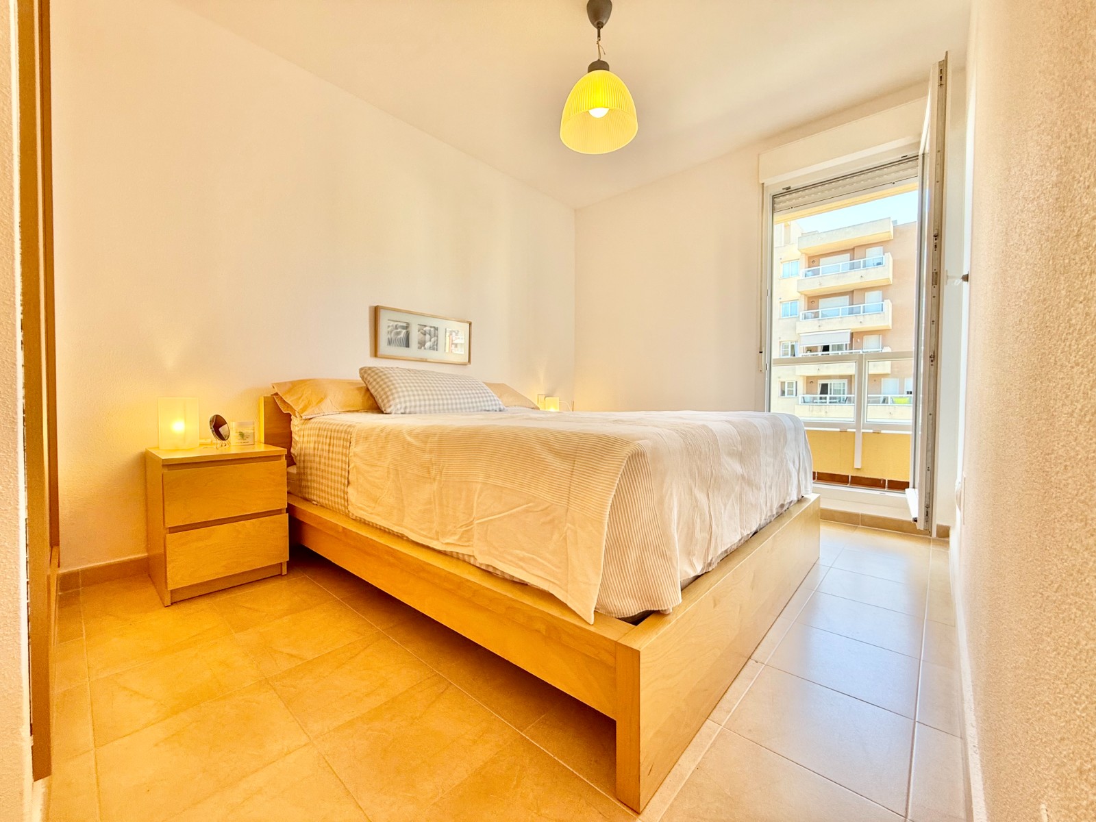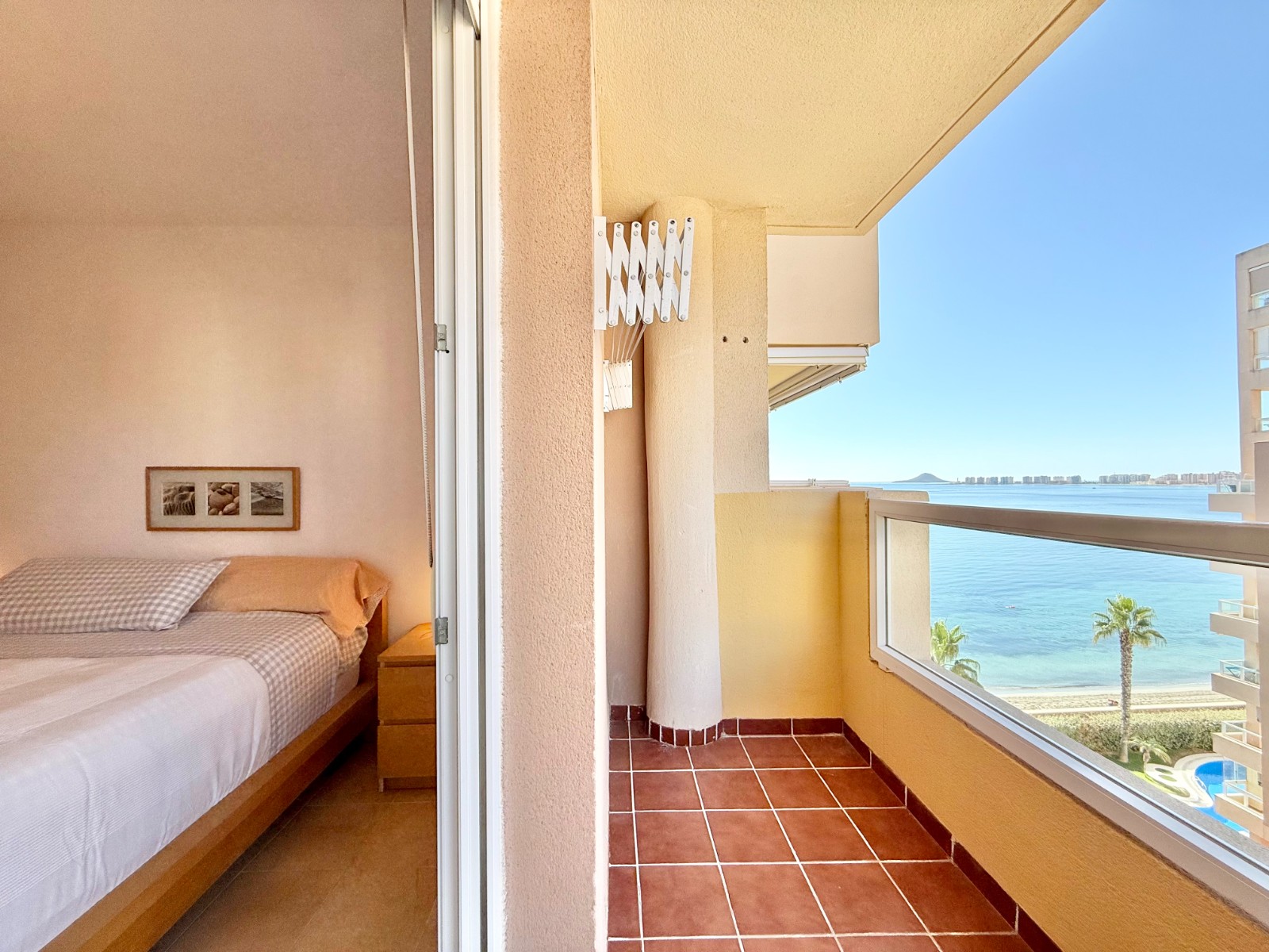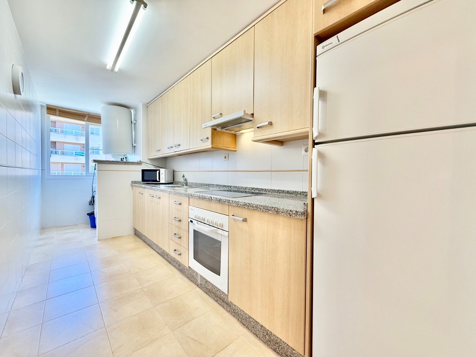 El apartamento, de construcción reciente y en excelente estado, está listo para entrar a vivir. Dispone de dos habitaciones y dos baños, además de aire acondicionado con bomba de frío y calor. La cocina es independiente, aunque existe la posibilidad de abrirla al salón para darle un estilo más moderno. Al fondo, encontrarás un lavadero, ideal para lavar la ropa de playa y enjuagar los bañadores tras un día de sol.