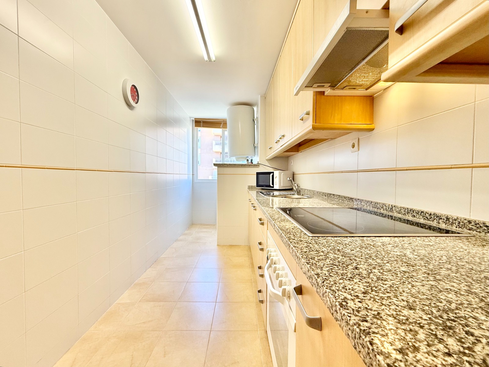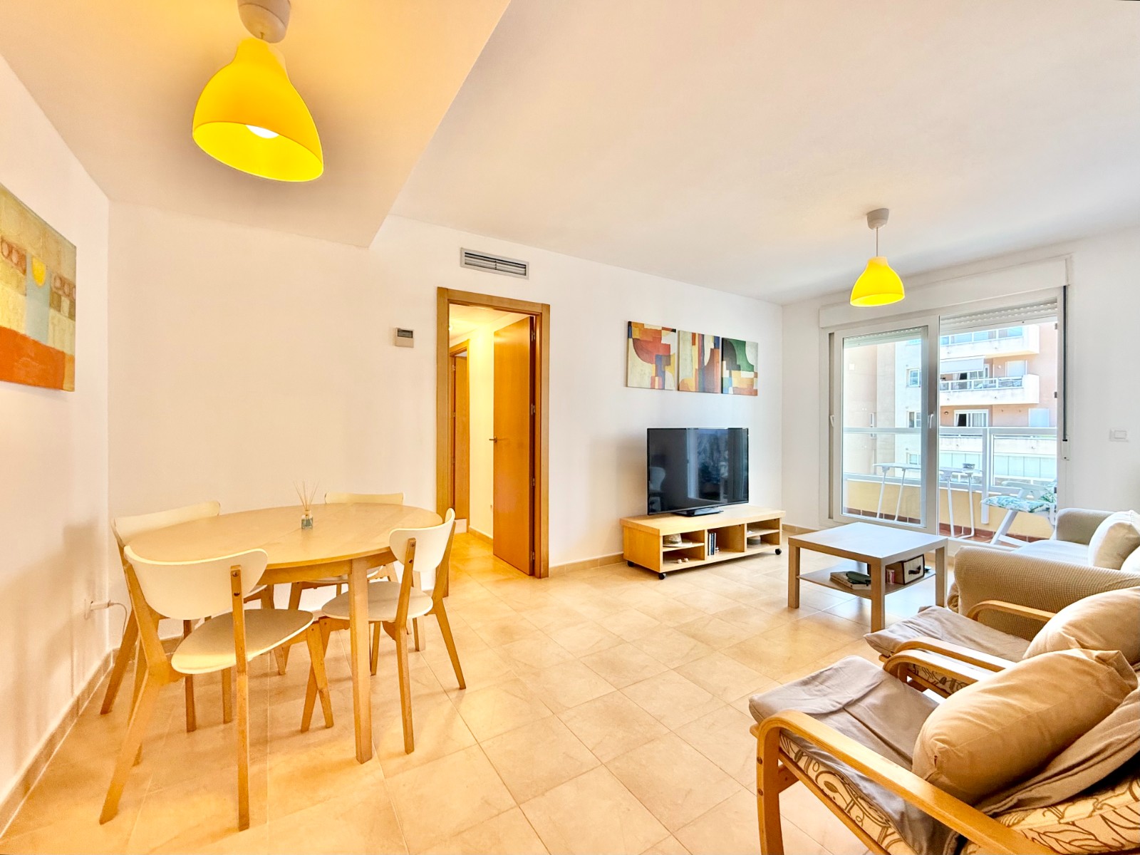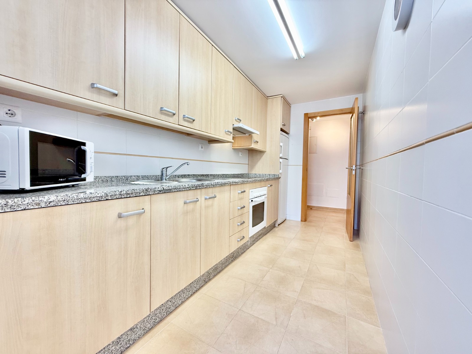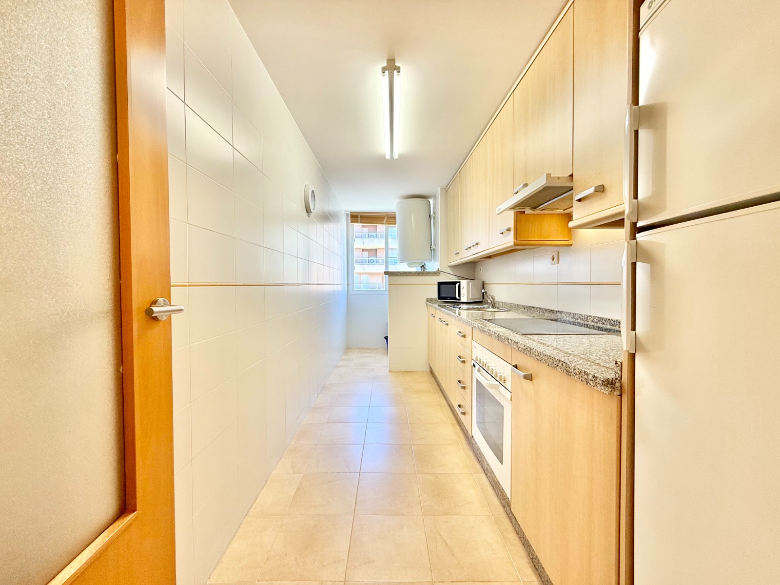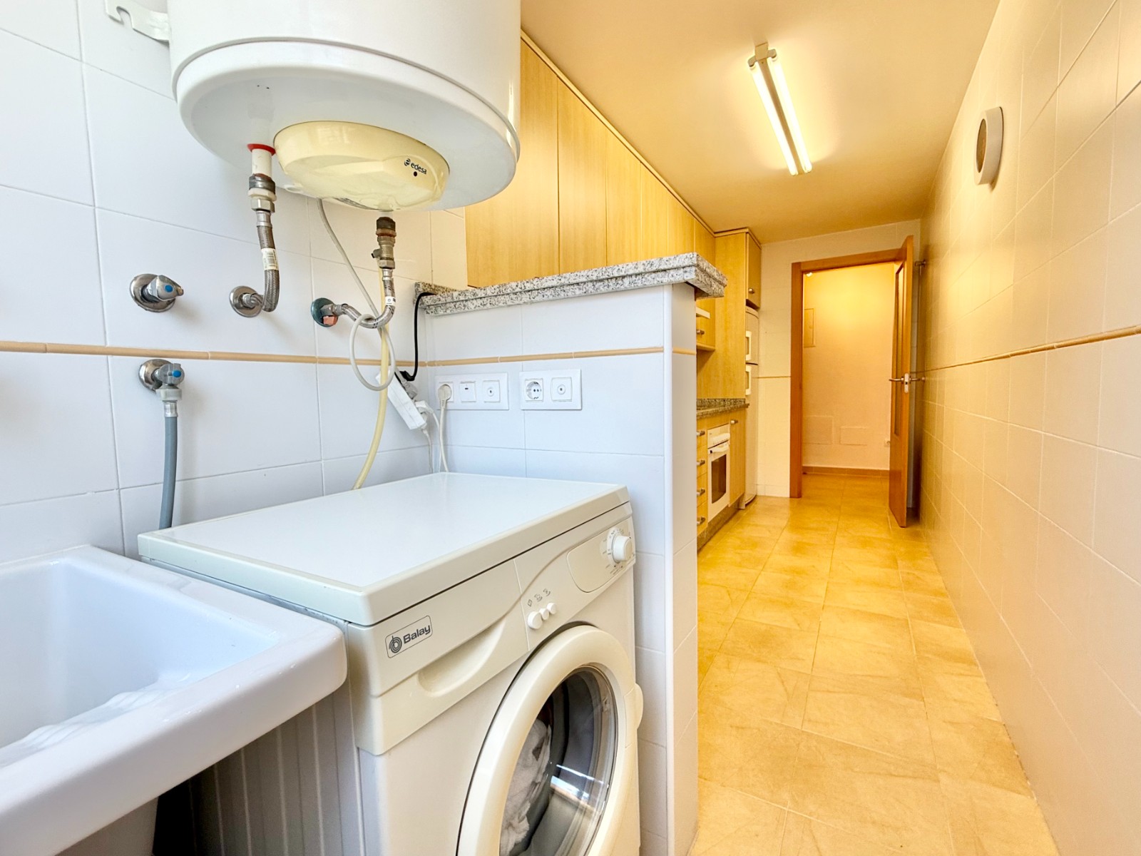El apartamento, de construcción reciente y en excelente estado, está listo para entrar a vivir. Dispone de dos habitaciones y dos baños, además de aire acondicionado con bomba de frío y calor. La cocina es independiente, aunque existe la posibilidad de abrirla al salón para darle un estilo más moderno. Al fondo, encontrarás un lavadero, ideal para lavar la ropa de playa y enjuagar los bañadores tras un día de sol.