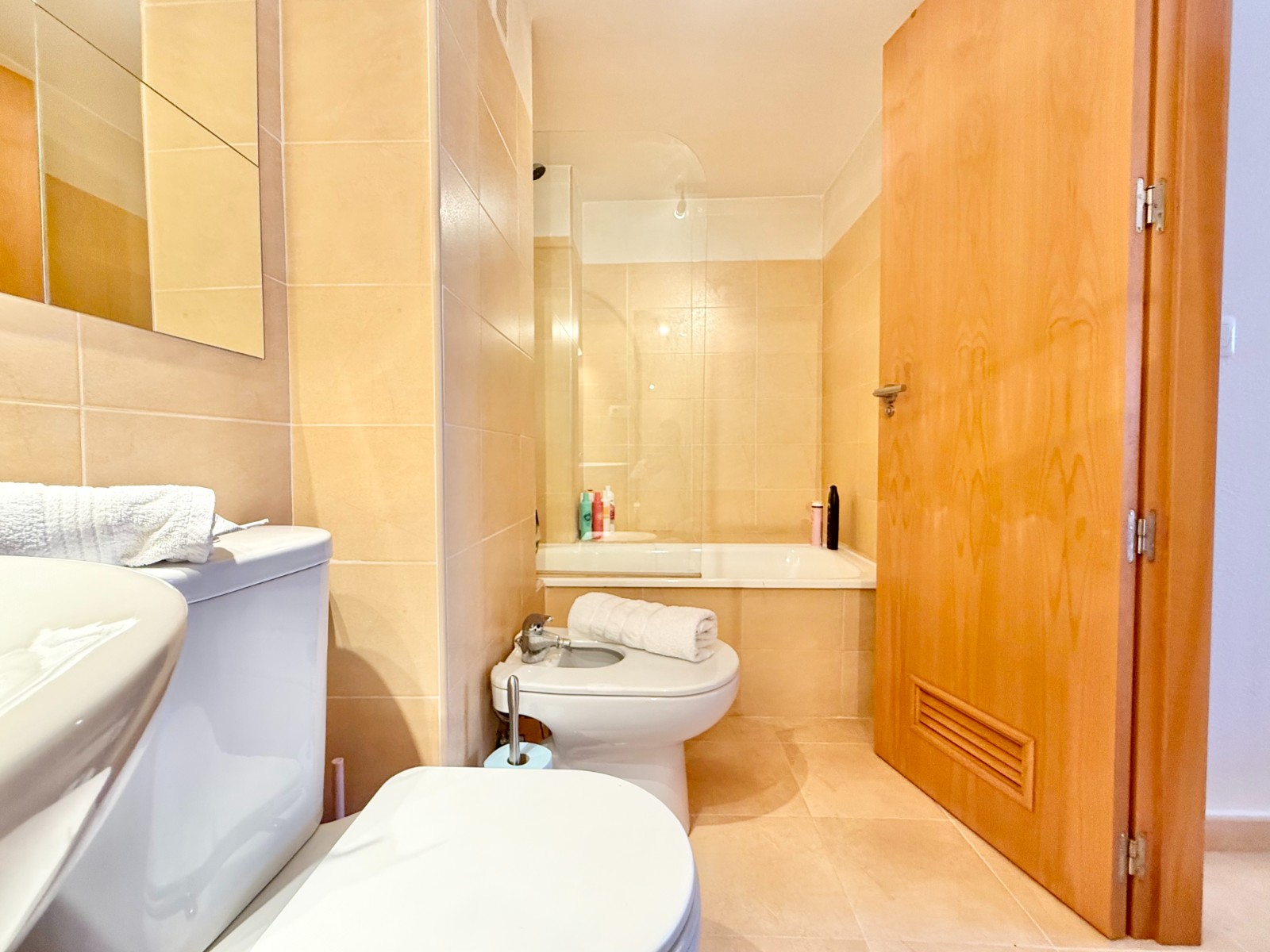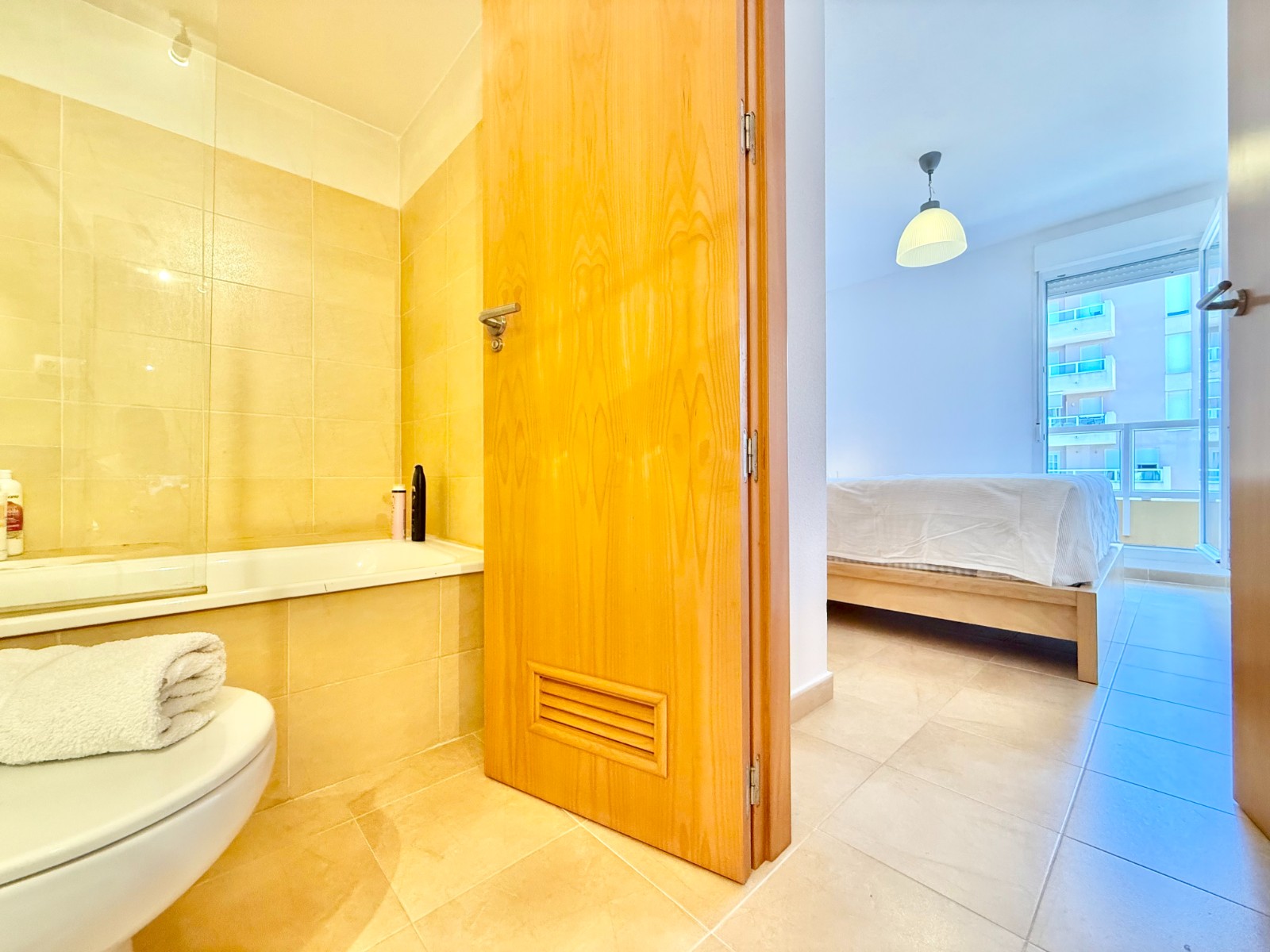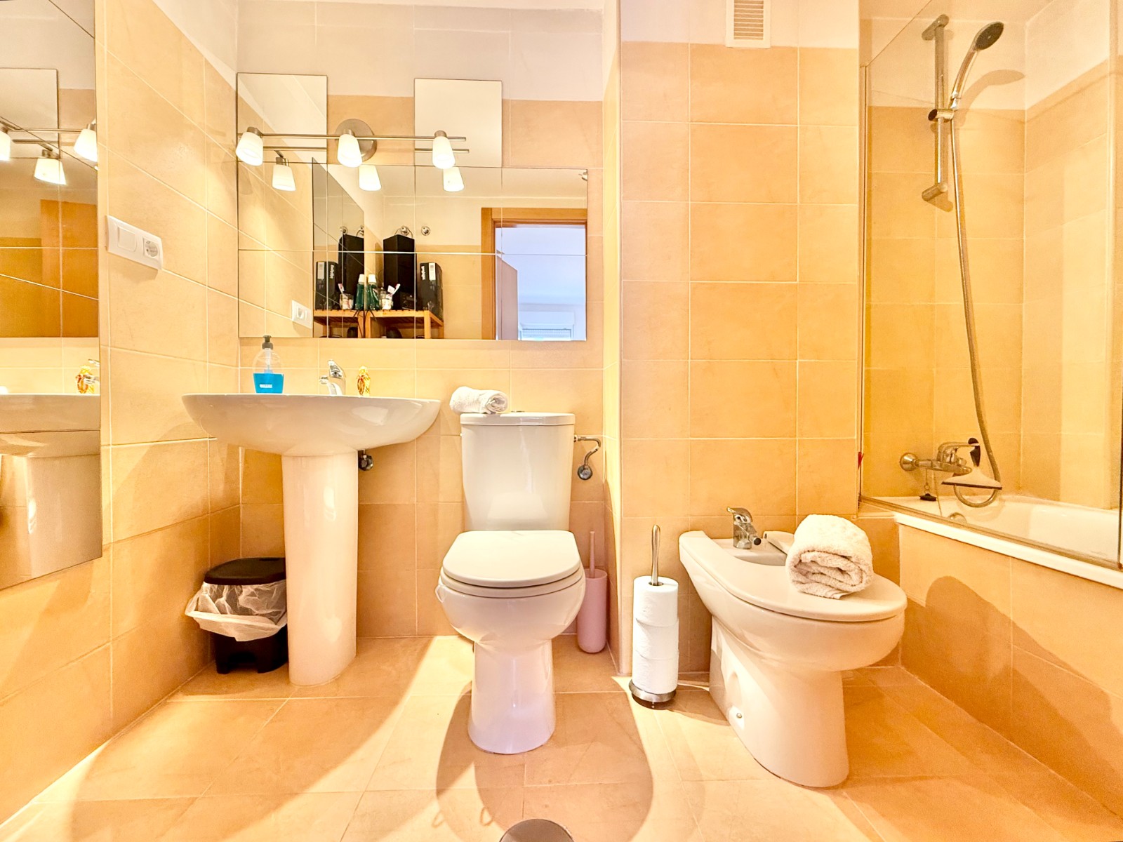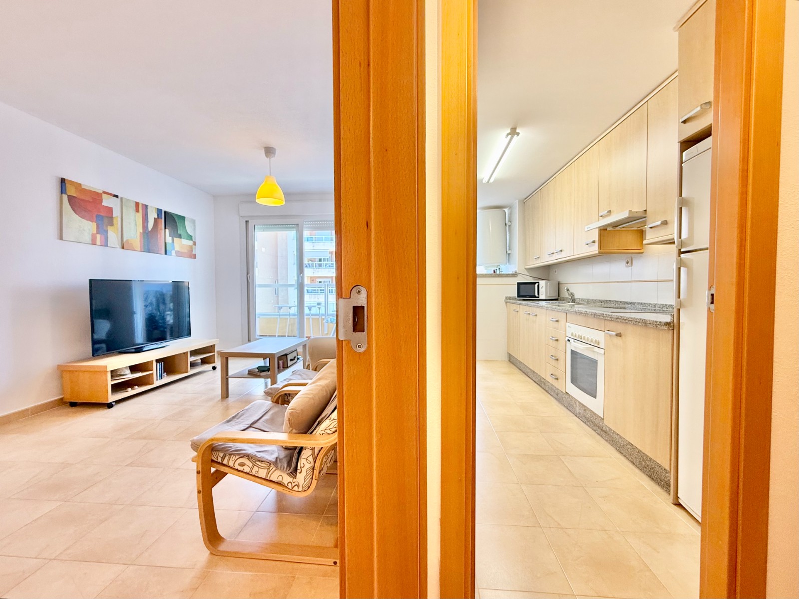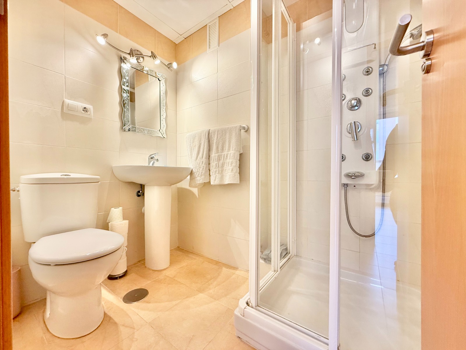El apartamento, de construcción reciente y en excelente estado, está listo para entrar a vivir. Dispone de dos habitaciones y dos baños, además de aire acondicionado con bomba de frío y calor. La cocina es independiente, aunque existe la posibilidad de abrirla al salón para darle un estilo más moderno. Al fondo, encontrarás un lavadero, ideal para lavar la ropa de playa y enjuagar los bañadores tras un día de sol.