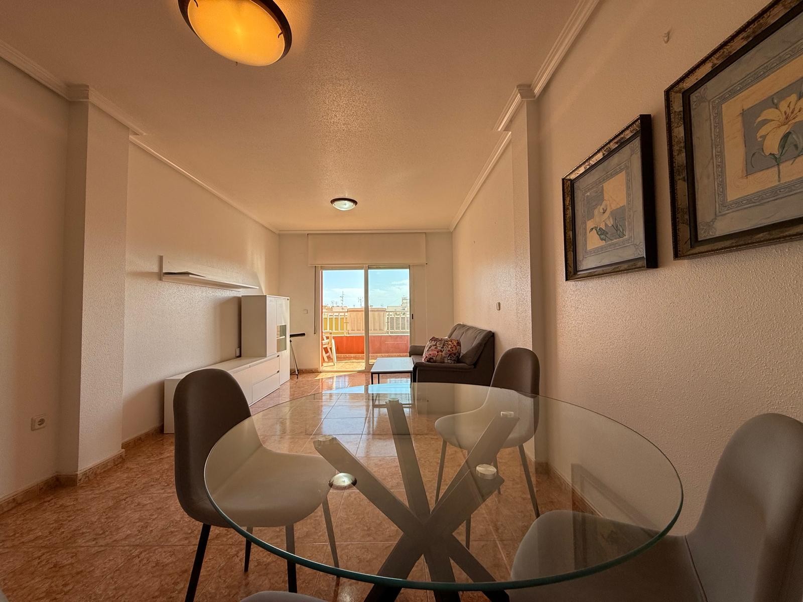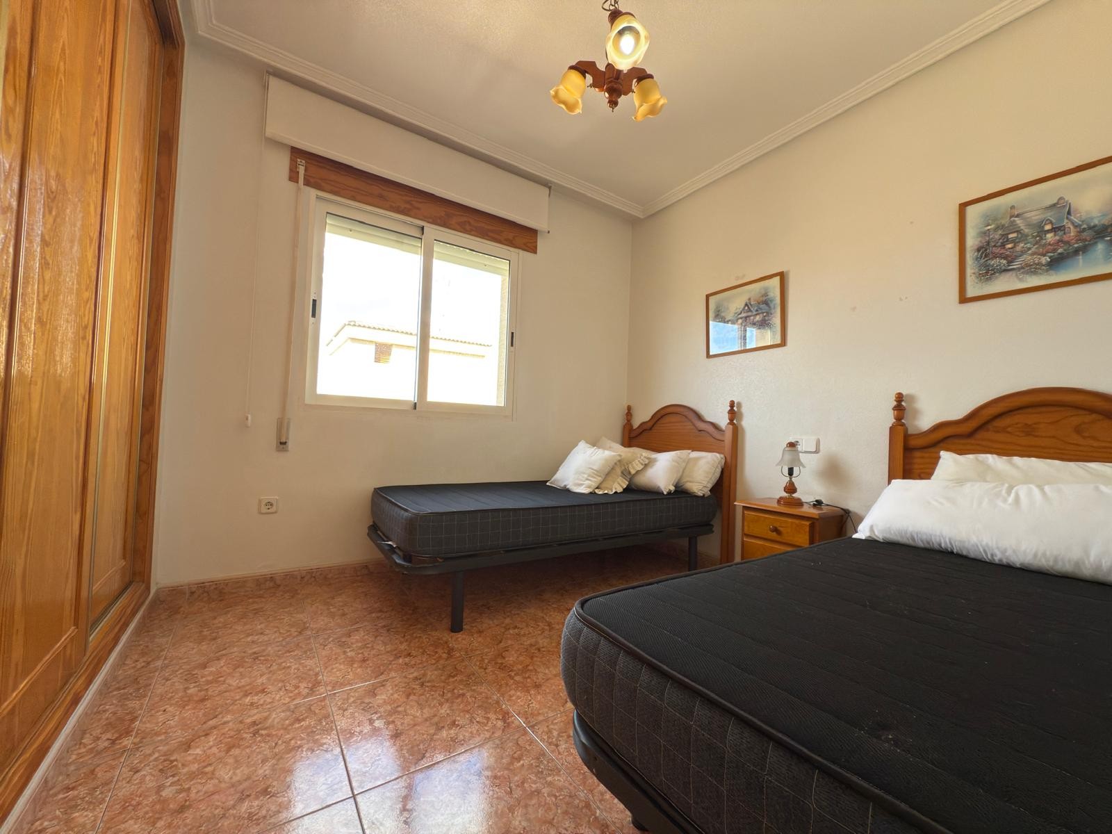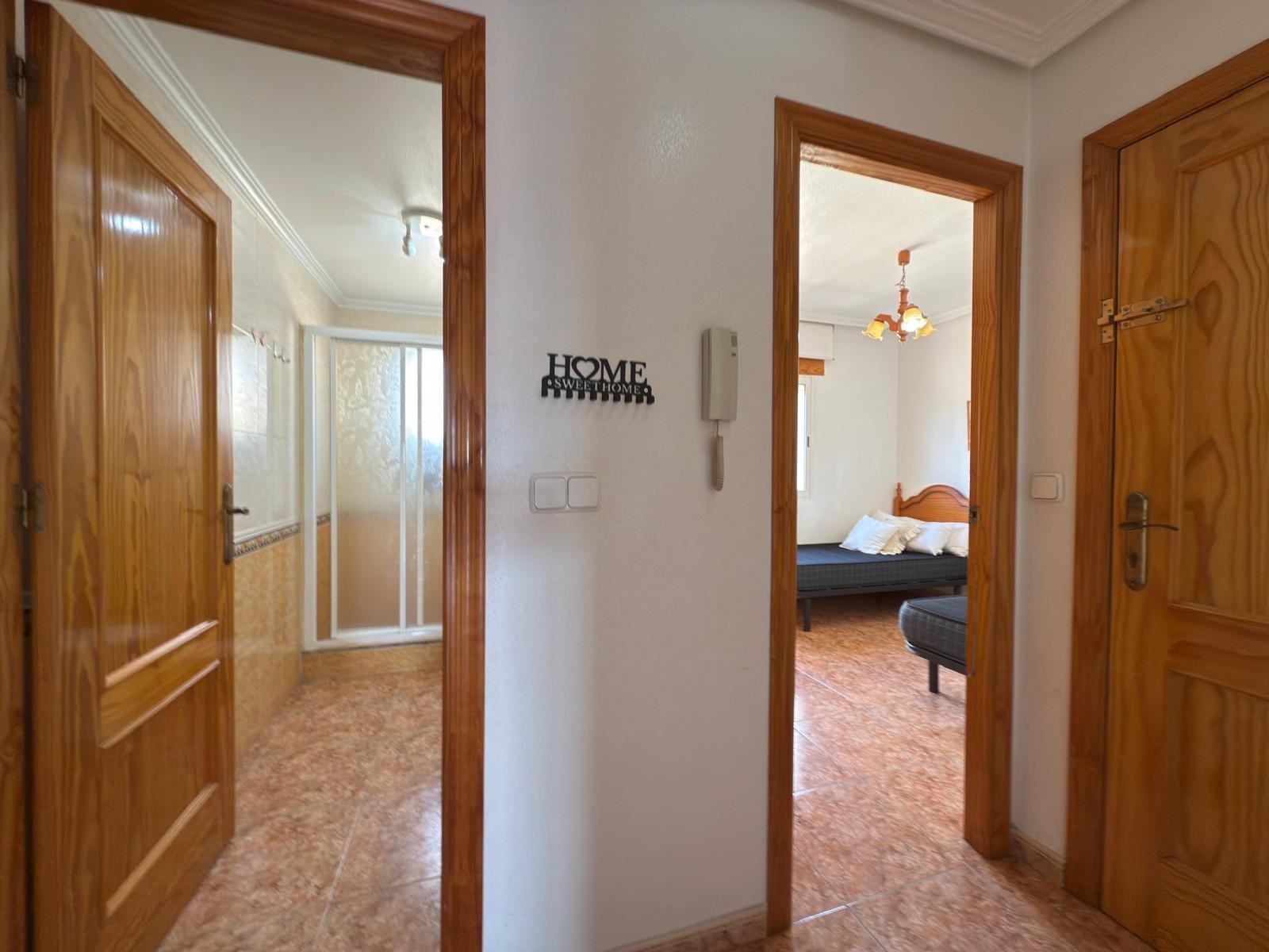 Cuenta con dos amplios dormitorios con armarios empotrados, baño completo con ducha y mampara, cocina independiente totalmente equipada y un luminoso salón comedor con salida a una gran terraza exterior, ideal para relajarte o disfrutar de tus comidas al aire libre.