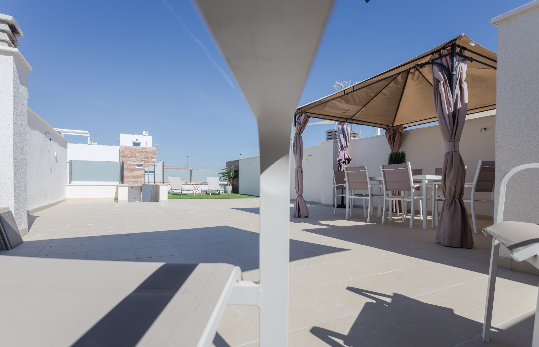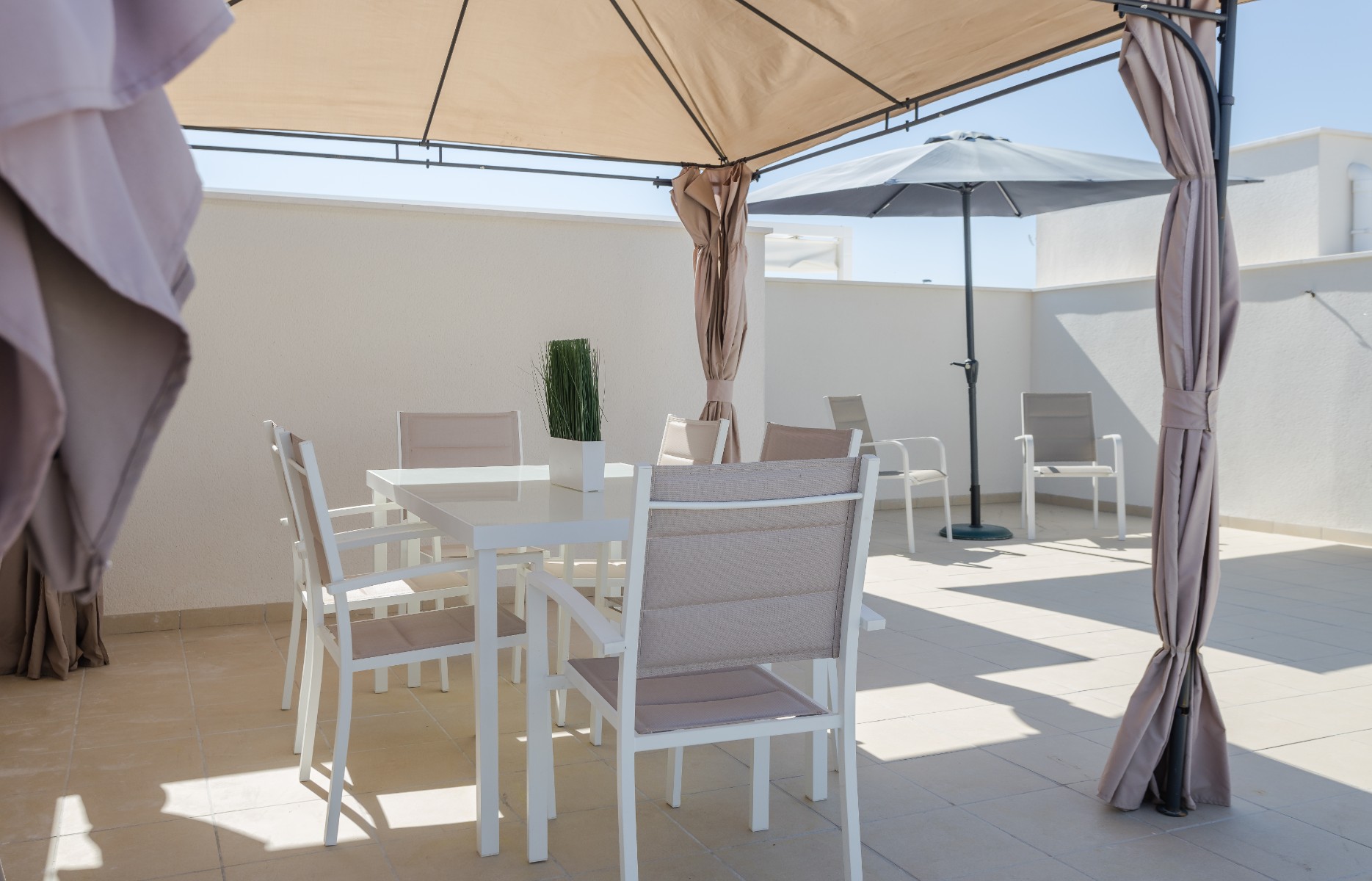 La vivienda dispone de un amplio y luminoso salón/comedor, 3 dormitorios, 2 baños completos y una moderna cocina abierta totalmente equipada. En el exterior encontrarás una agradable terraza con piscina privada y acceso a un gran solárium, perfecto para disfrutar del sol y de reuniones al aire libre.