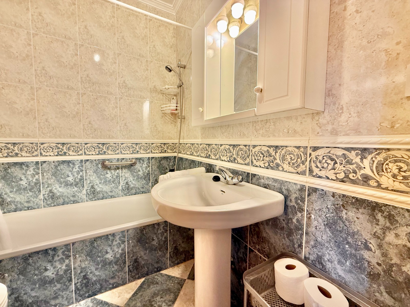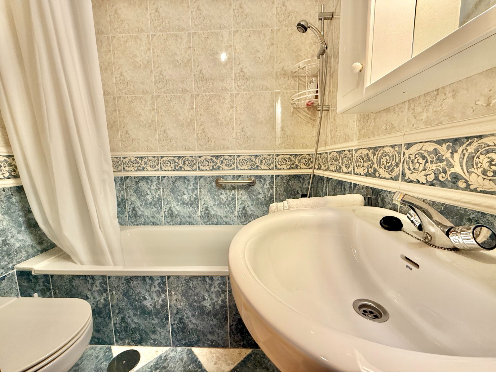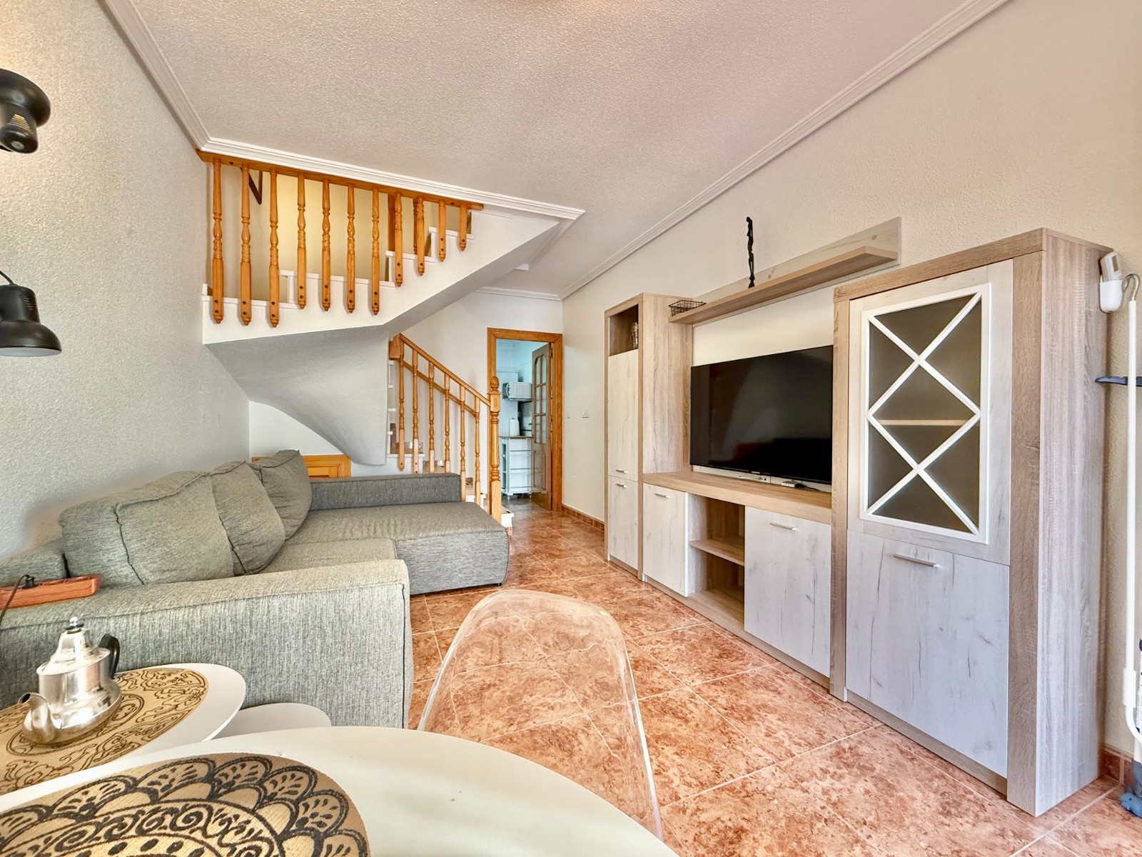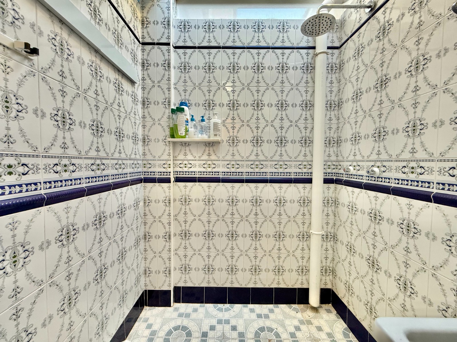 Por escalera desde el salón subimos a la planta superior con baño completo con bañera, dos dormitorios con armarios empotrados y balcón en el dormitorio principal desde el que se ve el mar.