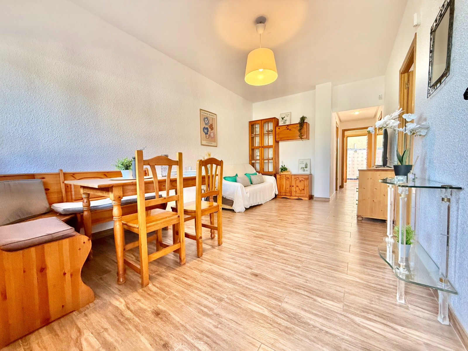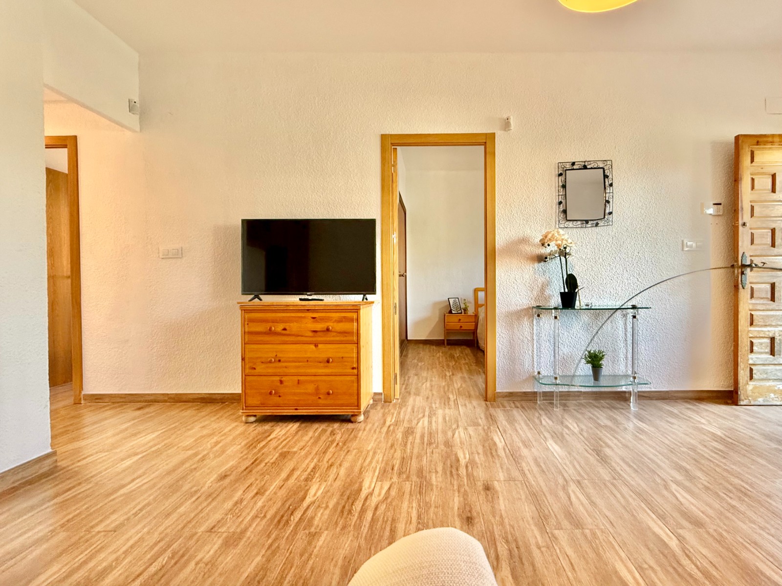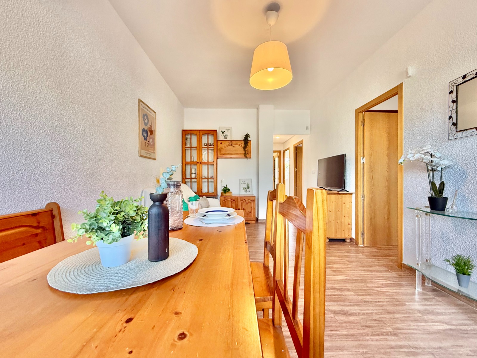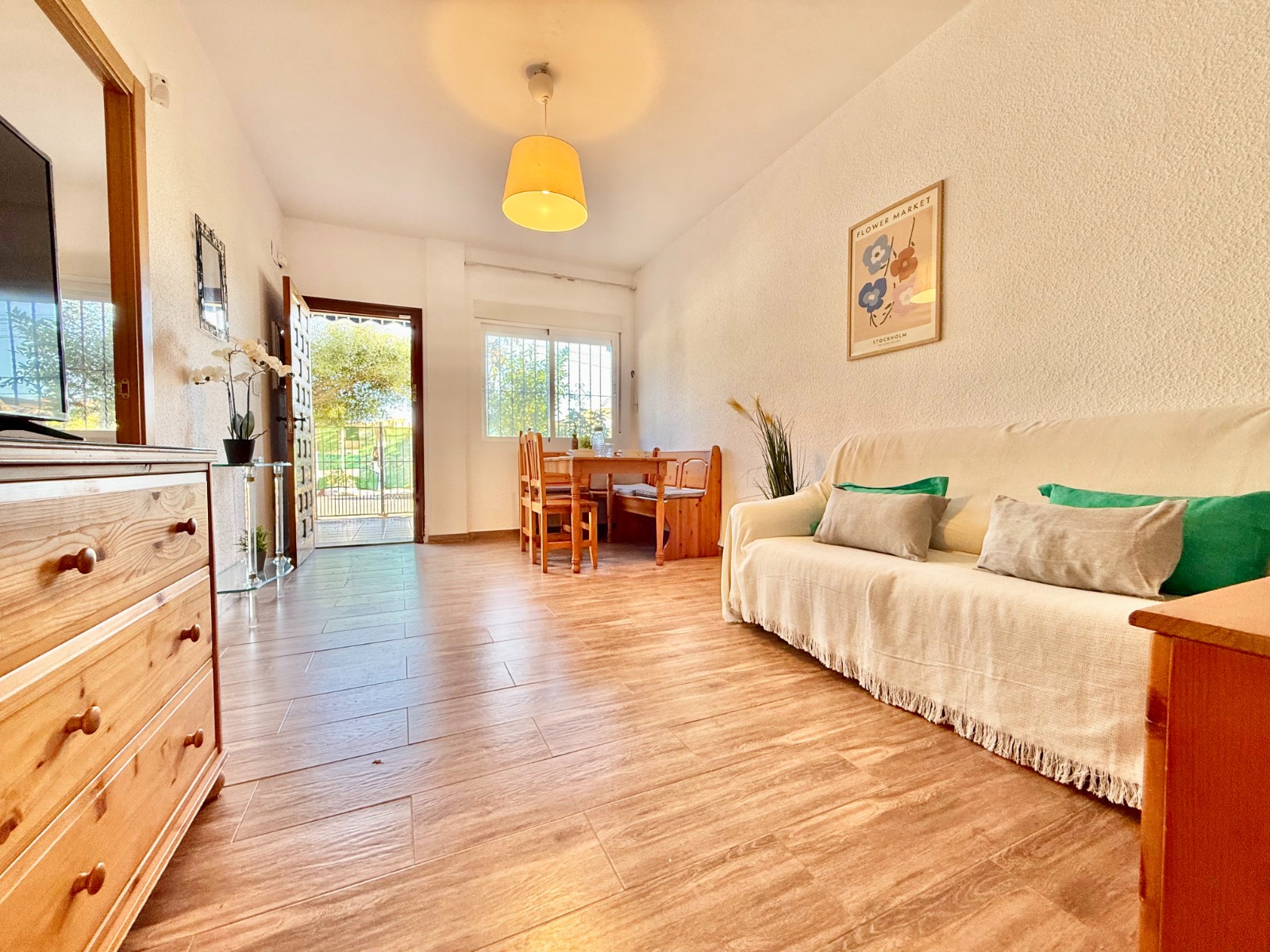 Distribuida en porche delantero con zona de jardín, acceso a la vivienda, salón/comedor, 3 dormitorios, baño completo con ducha, cocina independiente amueblada y equipada, patio trasero con zona de lavadero.