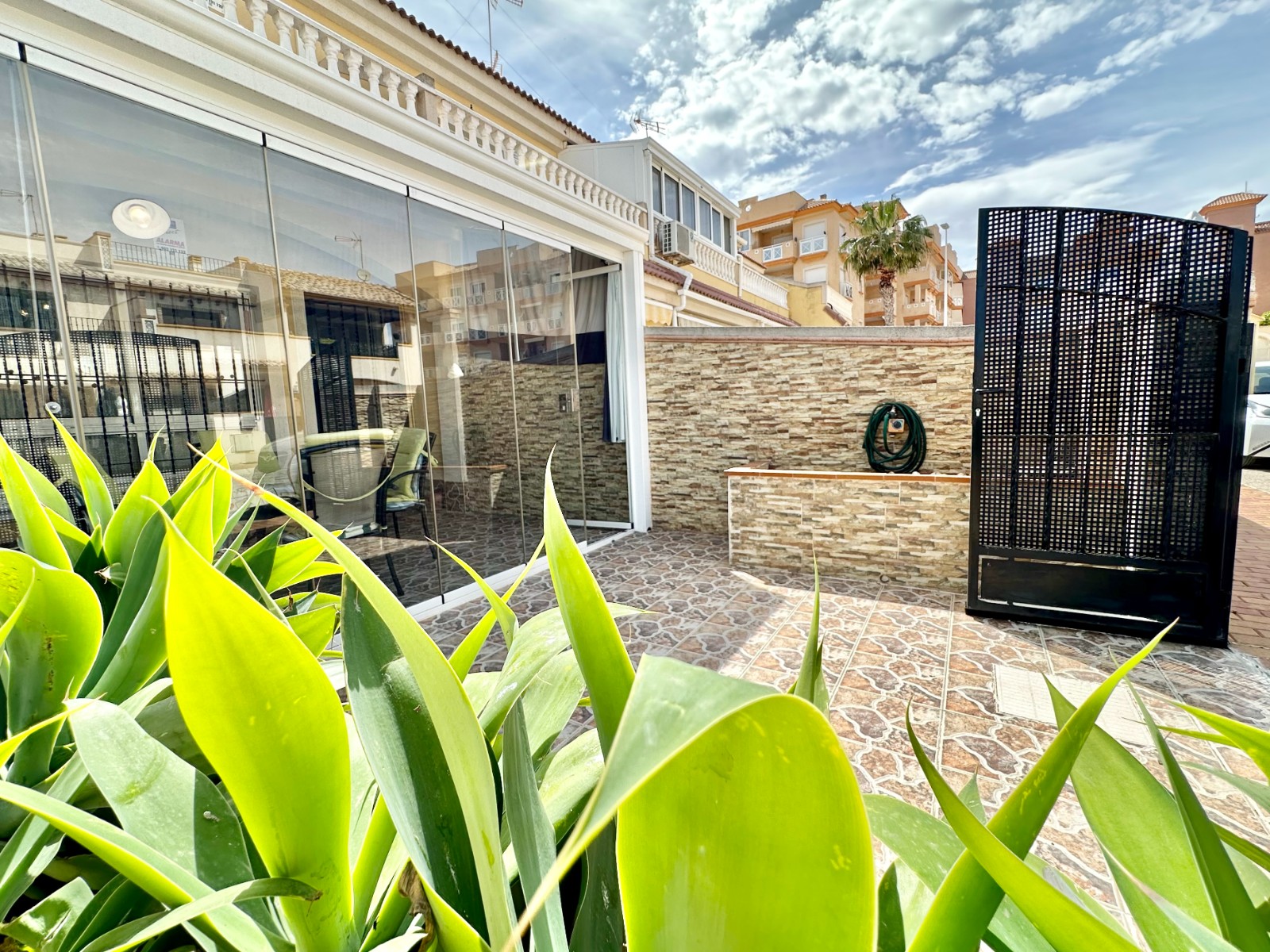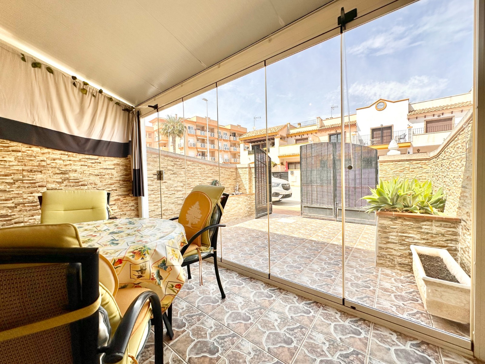 - Terraza delantera, donde puedes meter el coche.