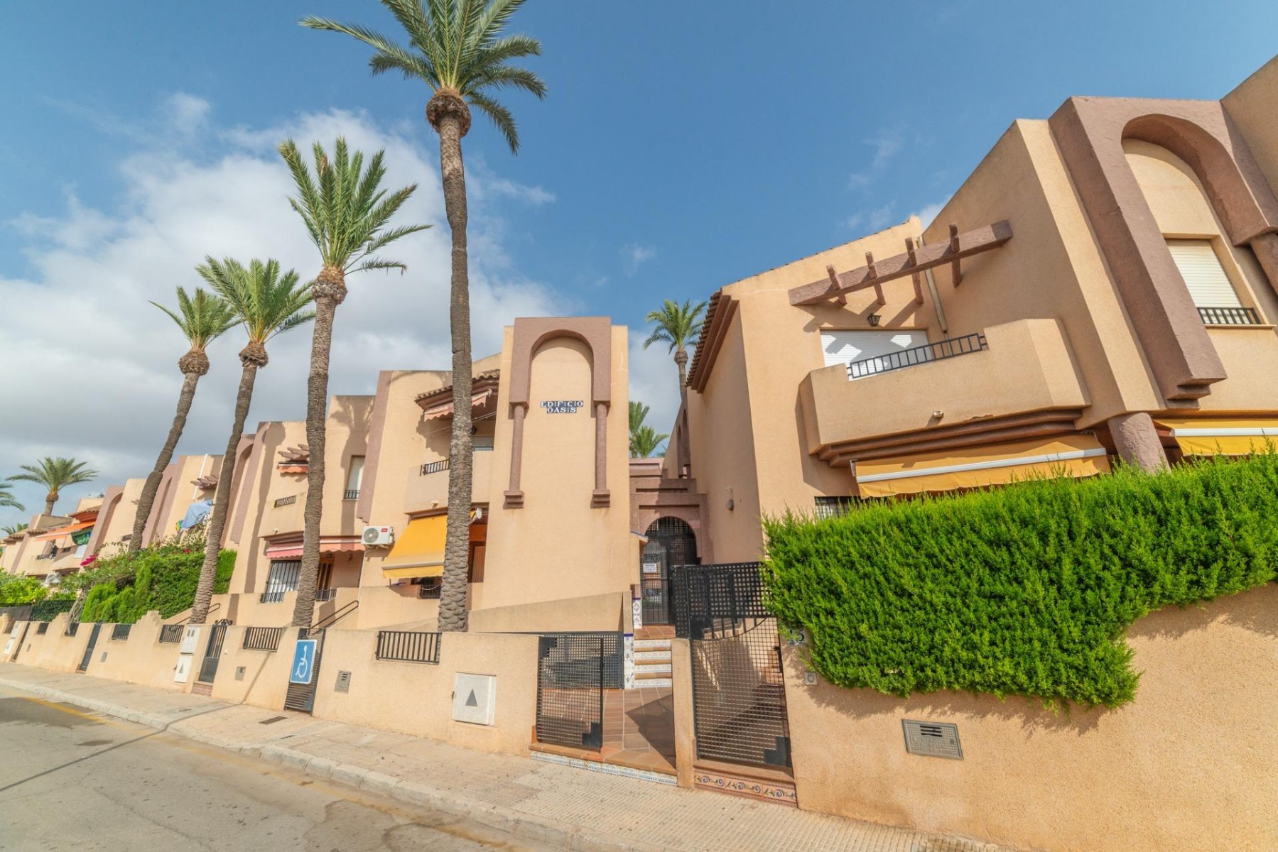 Este apartamento se encuentra en una tranquila urbanización cerrada con jardines y piscina comunitaria, la vivienda, que se encuentra en una primera planta, ofrece privacidad pero con la ventaja de la cercanía al mar. Cuenta con acceso privado y está distribuido en bloques independientes, lo que te asegura un entorno más íntimo y seguro.