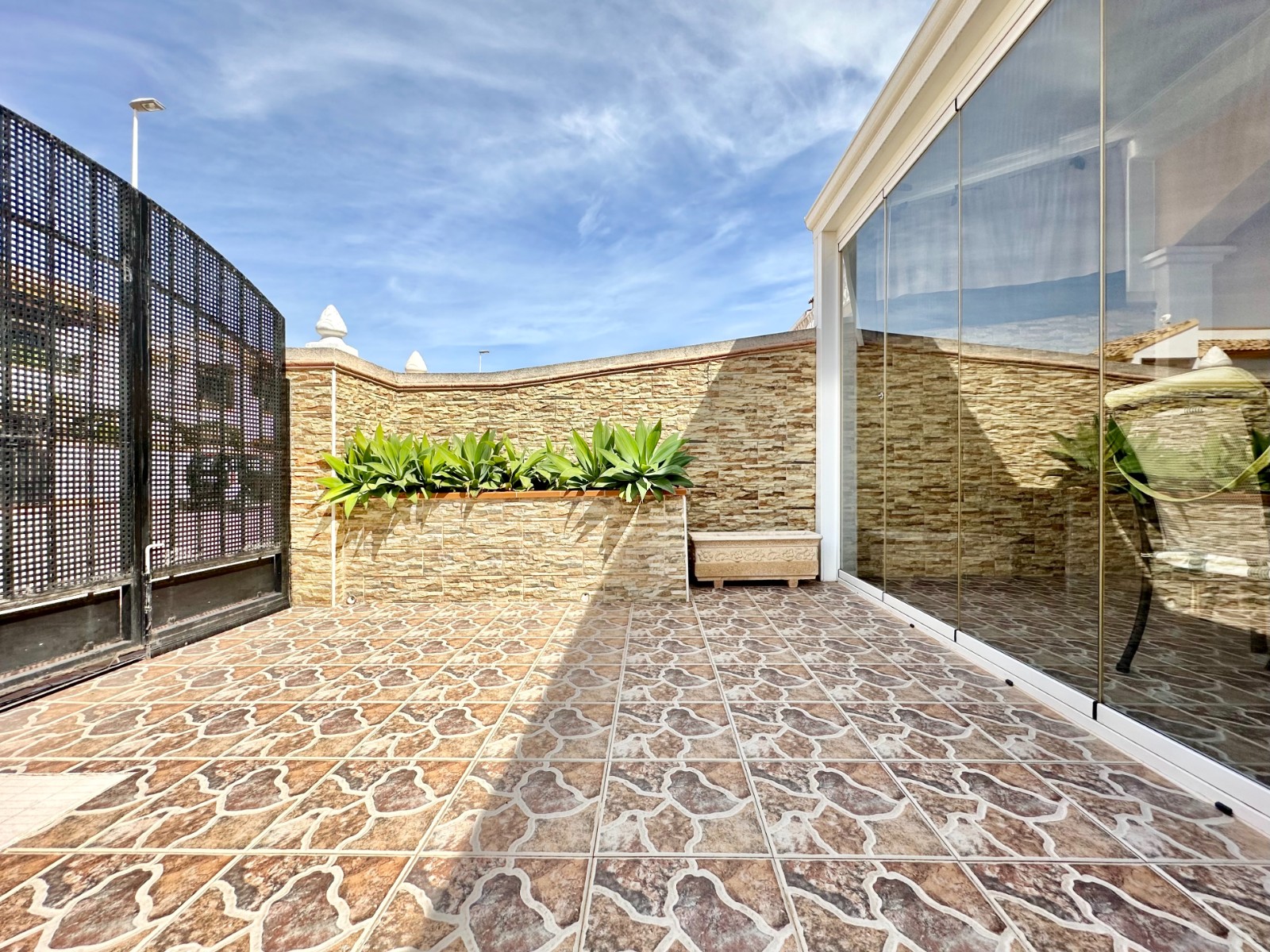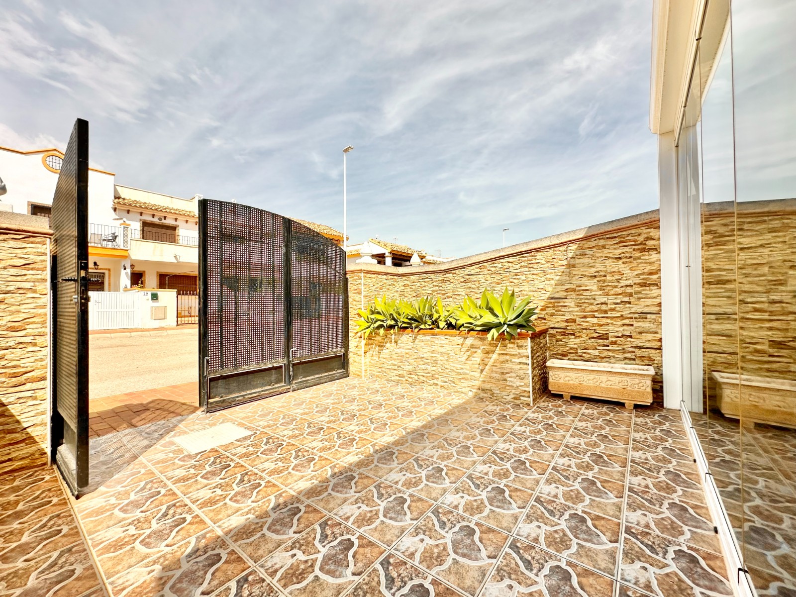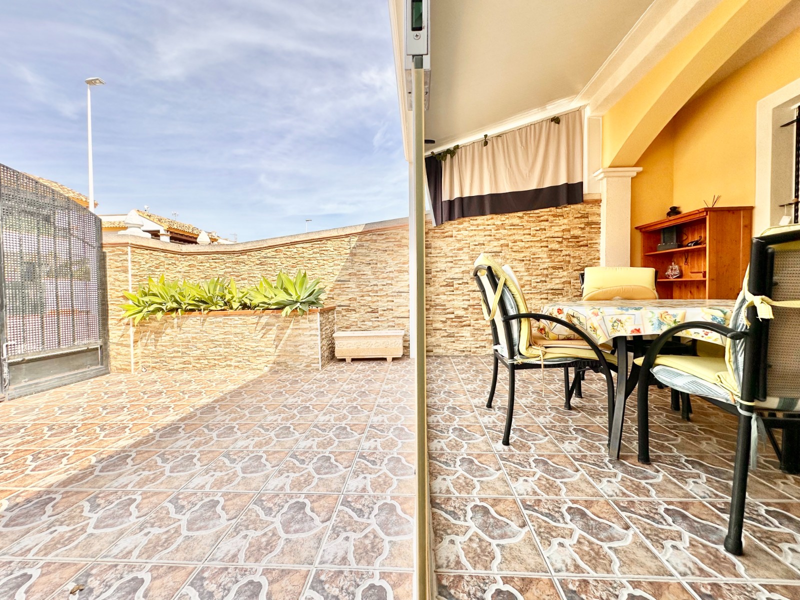 - Terraza delantera, donde puedes meter el coche.