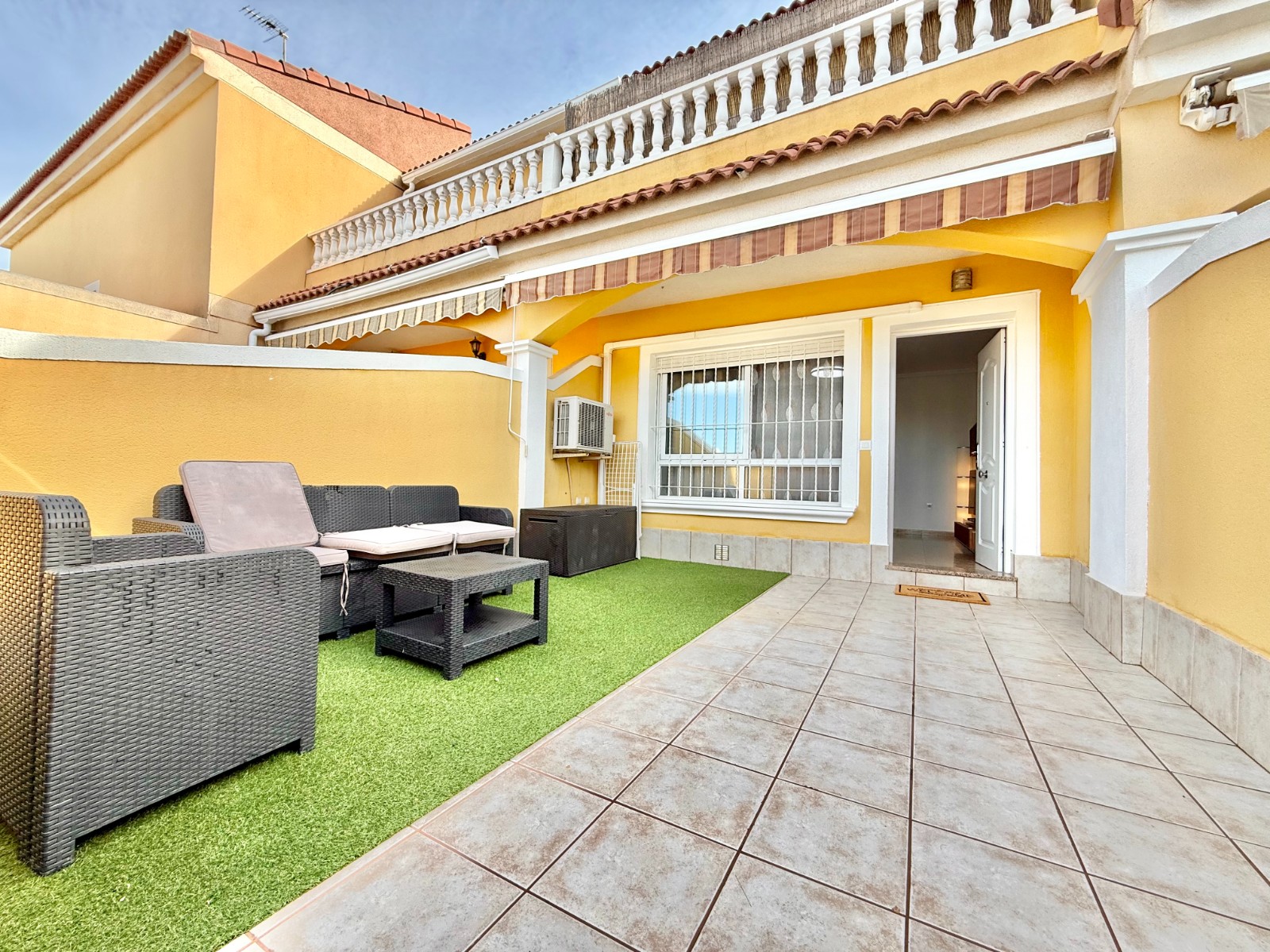 Cuenta con aire acondicionado, dos orientaciones y salón amplio. En planta baja encontramos habitación con armario empotrado y baño, además de cocina renovada con despensa y salida a patio-lavadero semiabierto con techo móvil corredero.