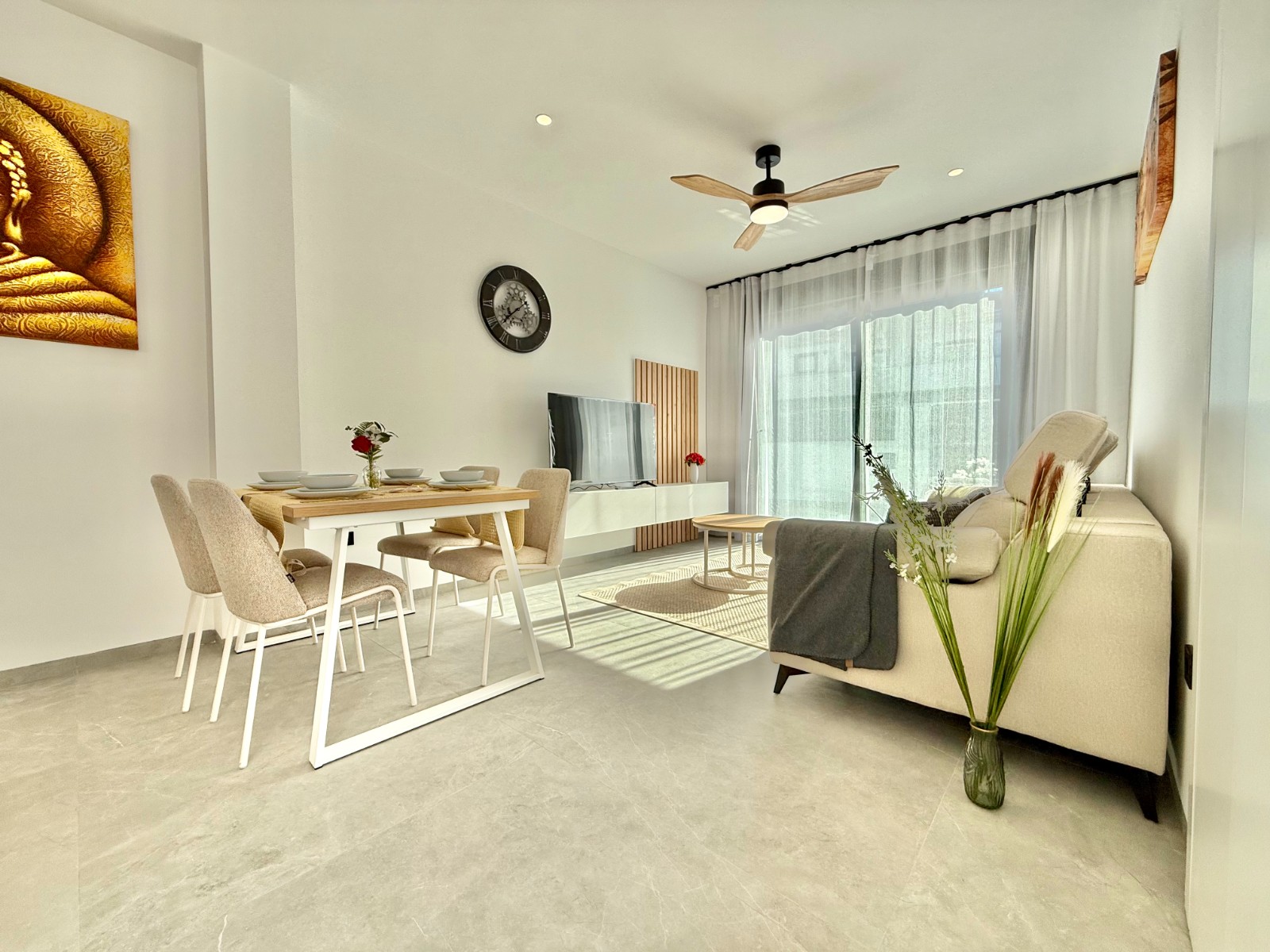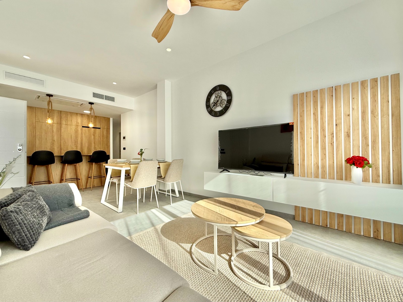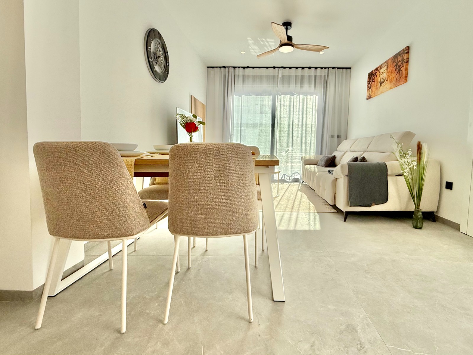 Diseñadas para vivir cómodo: tienen terrazas alrededor, mucha luz natural, salón amplio con cocina abierta totalmente equipada y 3 habitaciones con armarios empotrados.