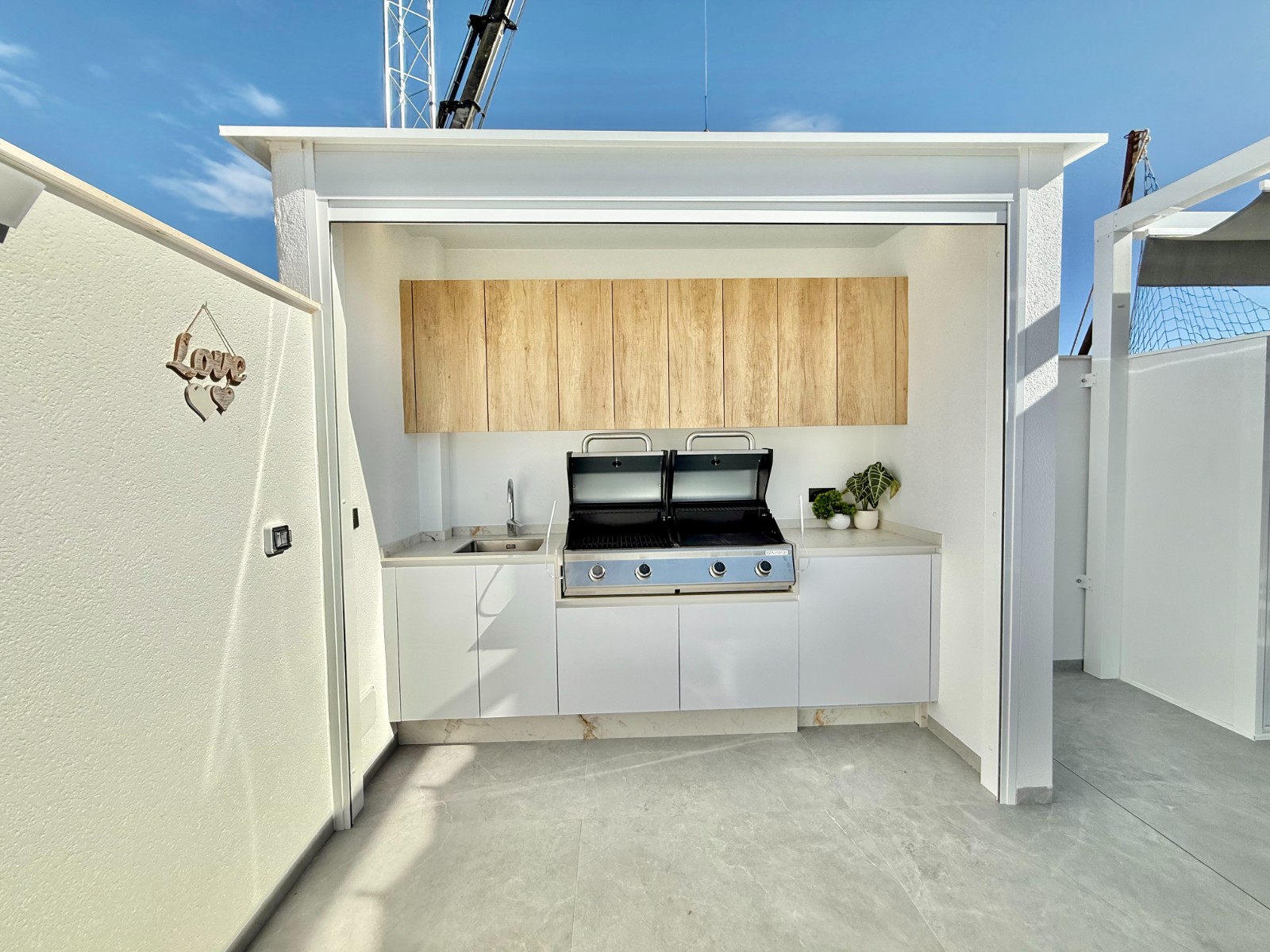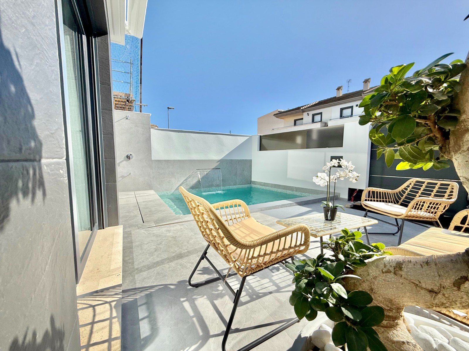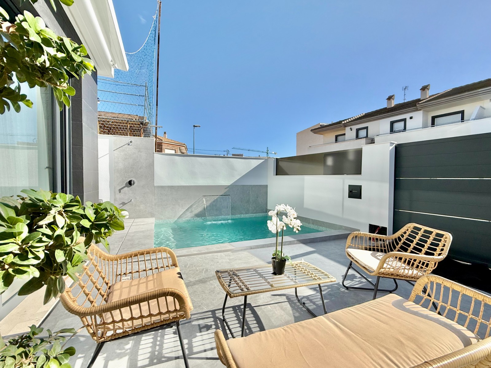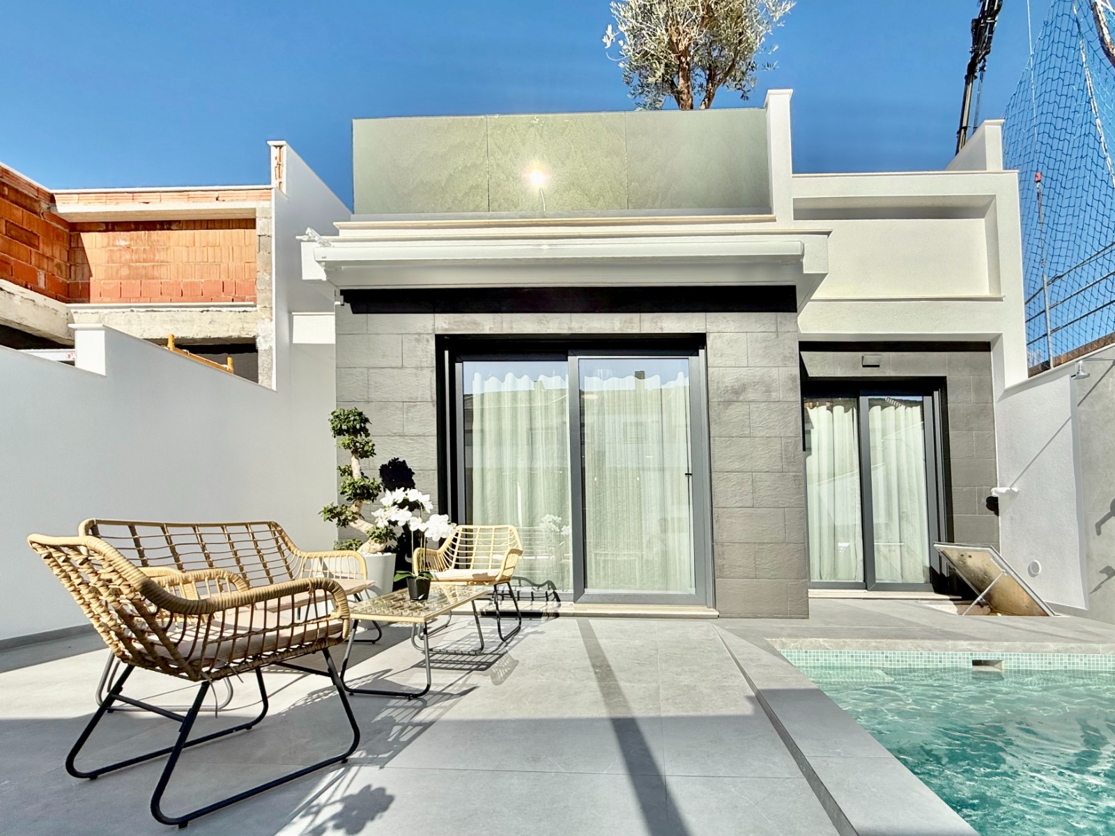 Tres villas independientes, modernas, con piscina privada y un gran solárium con cocina exterior para disfrutar del sol todo el año.