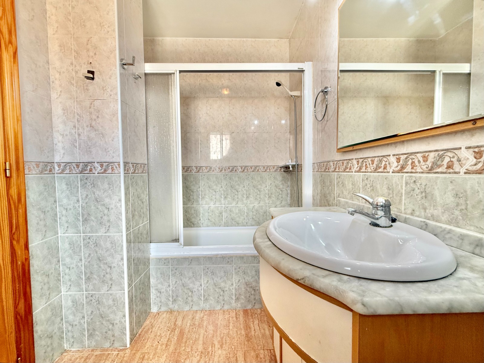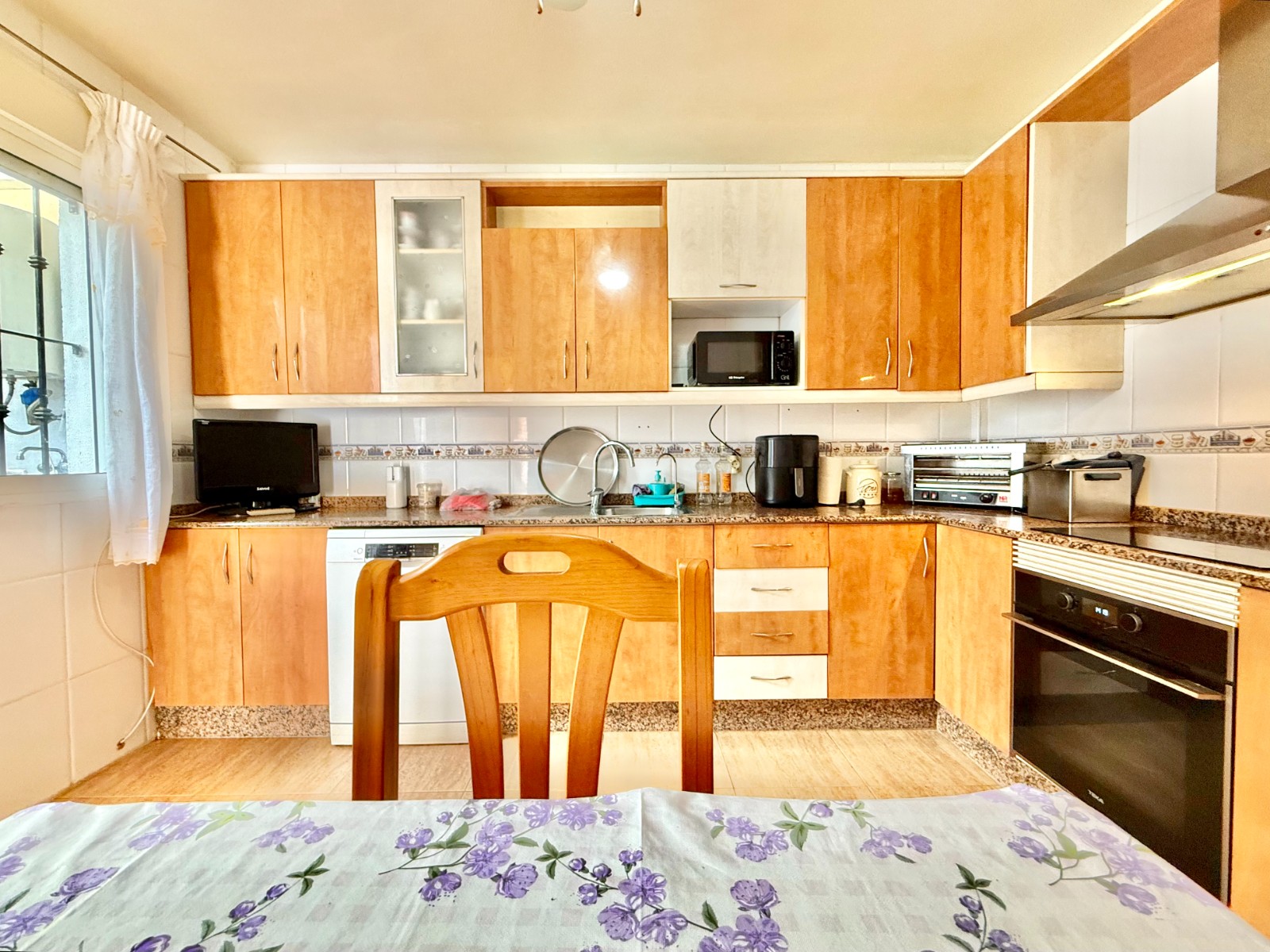 En la planta baja encontramos dos habitaciones, un baño completo, un acogedor salón-comedor, y una cocina amplia con acceso a un patio interior, perfecto como zona de lavandería o espacio auxiliar.