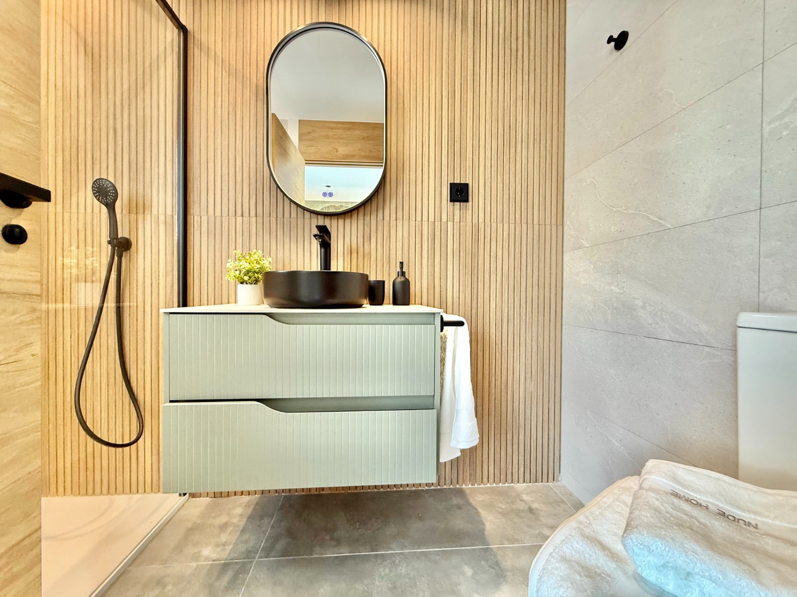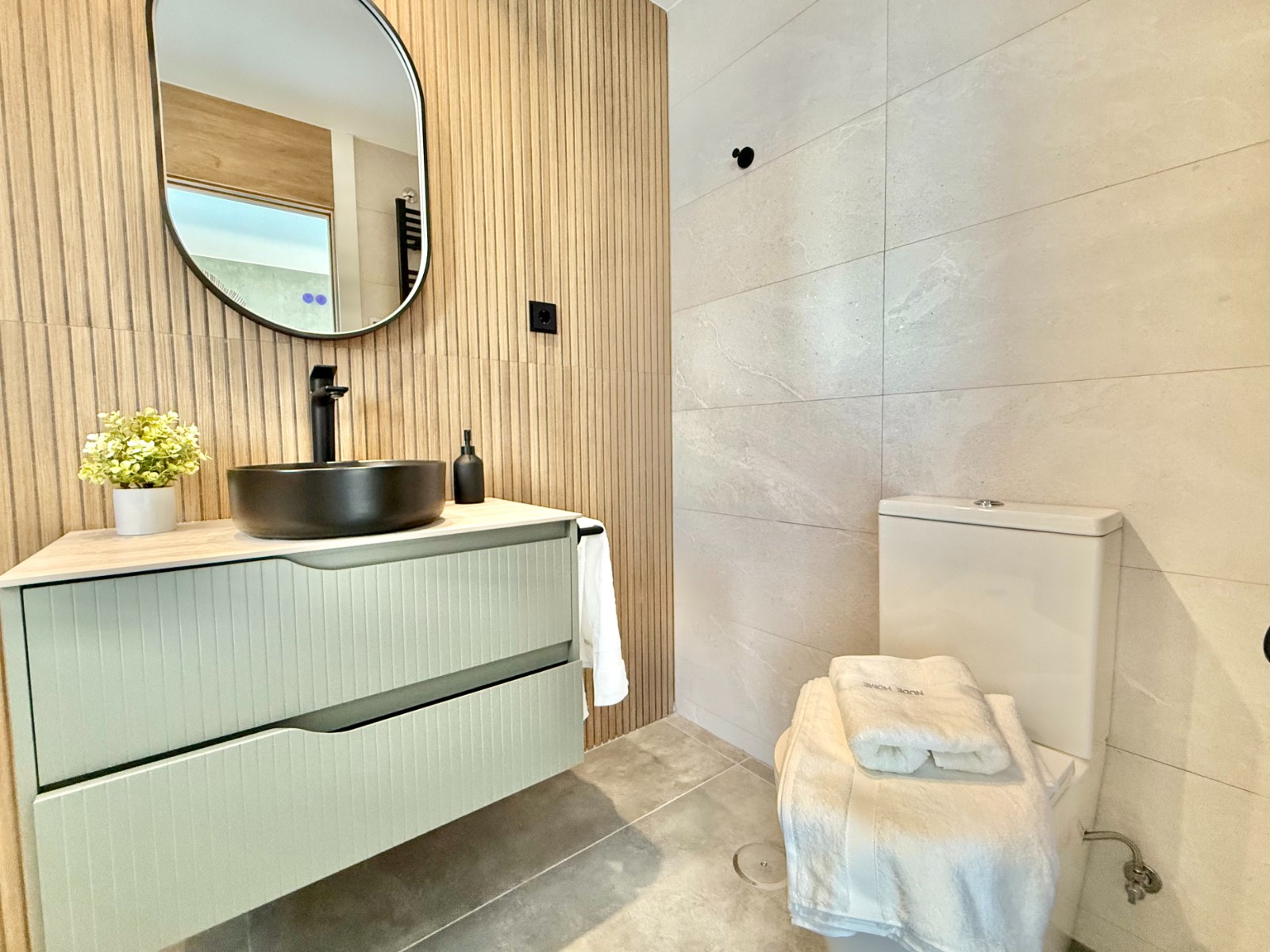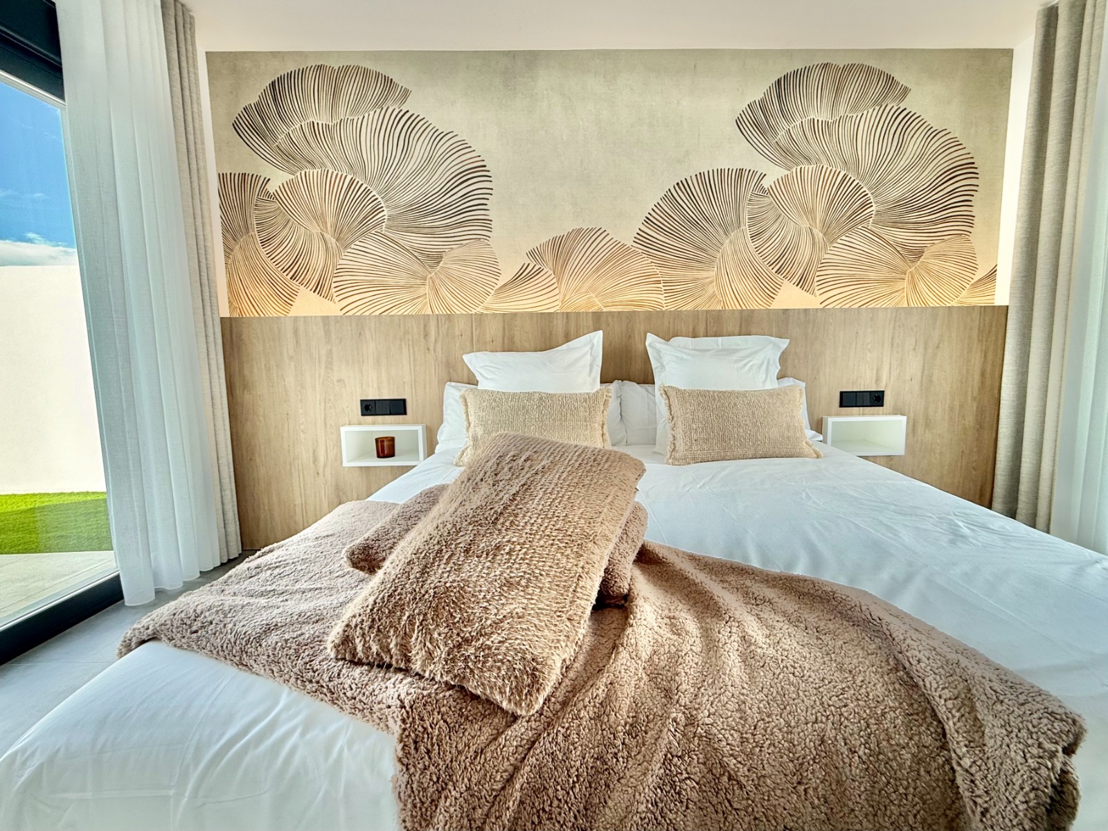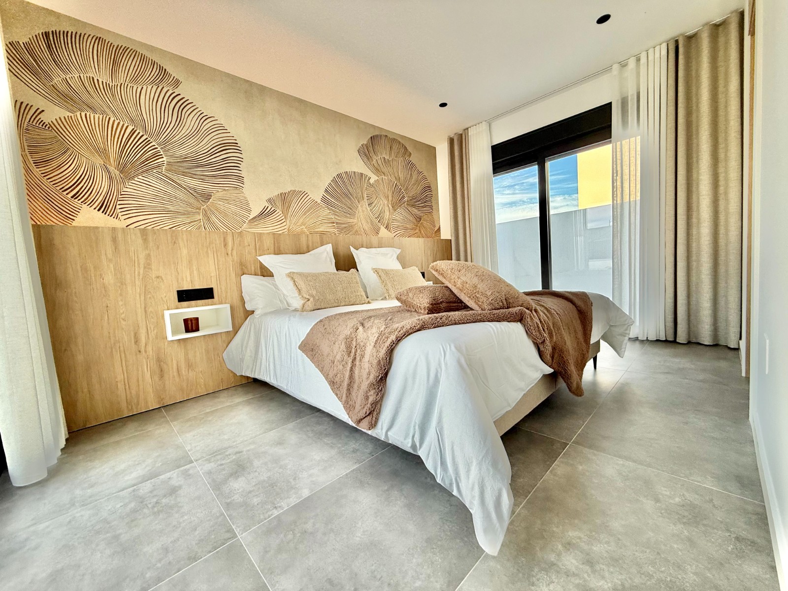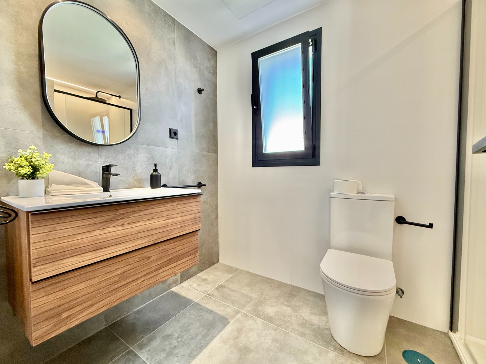 La propiedad cuenta con 140 m² en planta principal distribuidos en un gran salón con cocina integrada, recibidor independiente, tres dormitorios con armarios empotrados y dos baños completos, uno de ellos en suite con vestidor. Destaca la calidad de sus acabados y la elegante combinación de carpintería en blanco y roble.