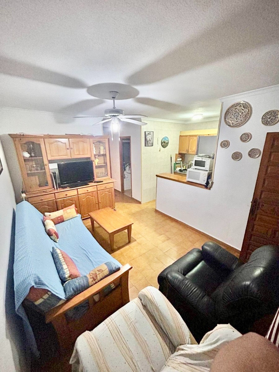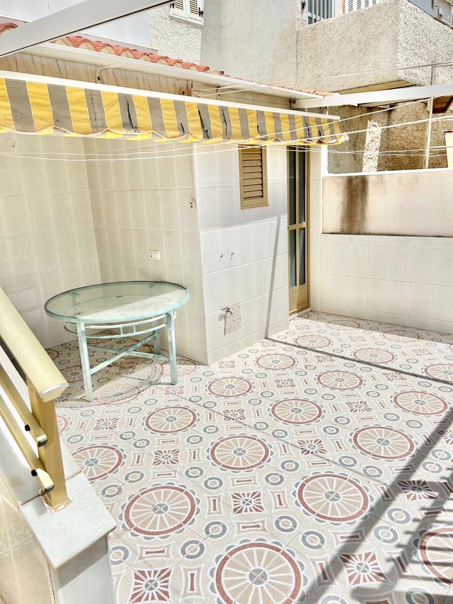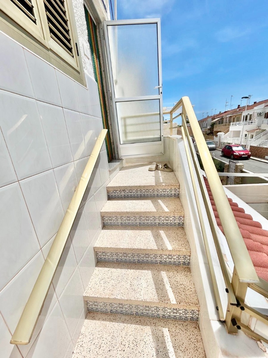 Bungalow en planta alta con terraza de acceso, solarium, salón comedor con cocina, 2 habitaciones dobles y 1 baño con ducha.