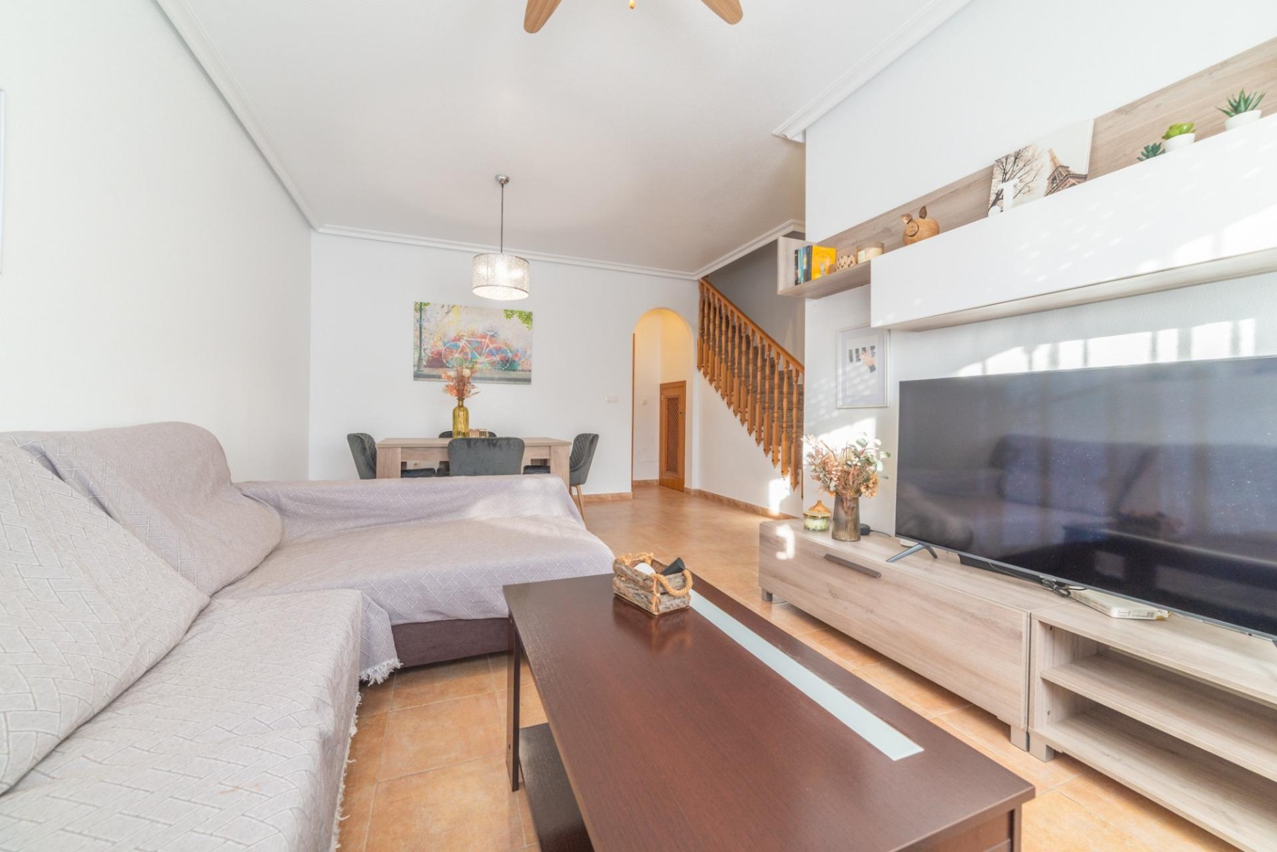 La vivienda es muy luminosa, con 3 dormitorios dobles (en origén habia otro en planta baja que se le dio a la cocina para hacerla mas grande), buhardilla diafana con mucho almacenamiento, 3 baños, salón y cocina-comedor.