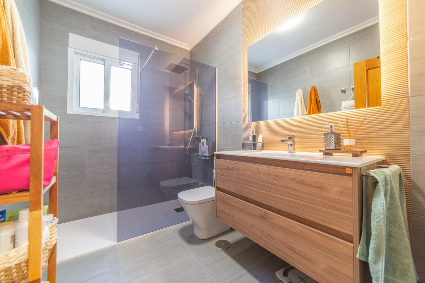 En la planta superior encontramos un baño completo con ducha (3 baños en total) y 3 dormitorios (tres + buhardilla en total), el dormitorio principal cuenta con baño en suite.