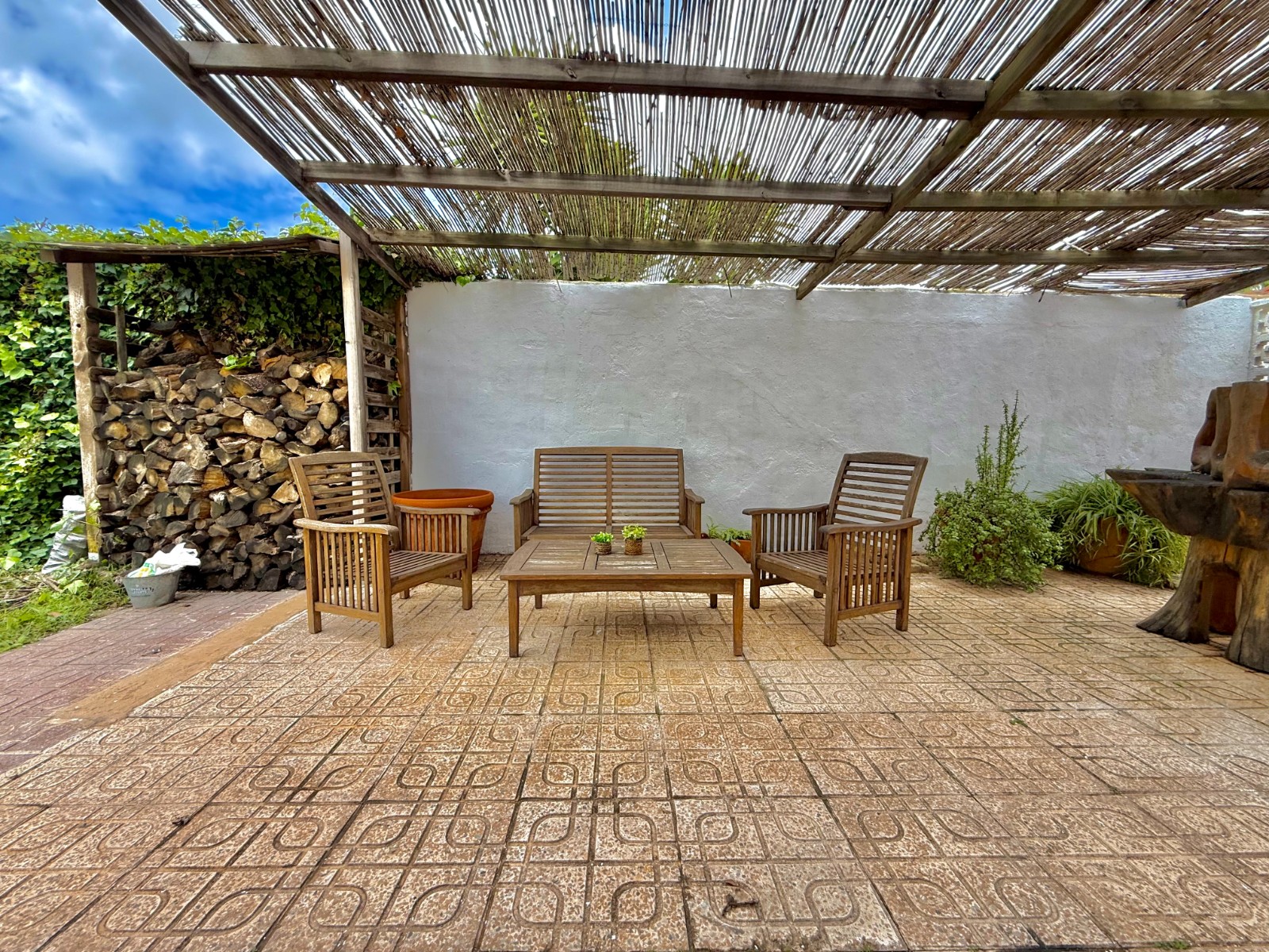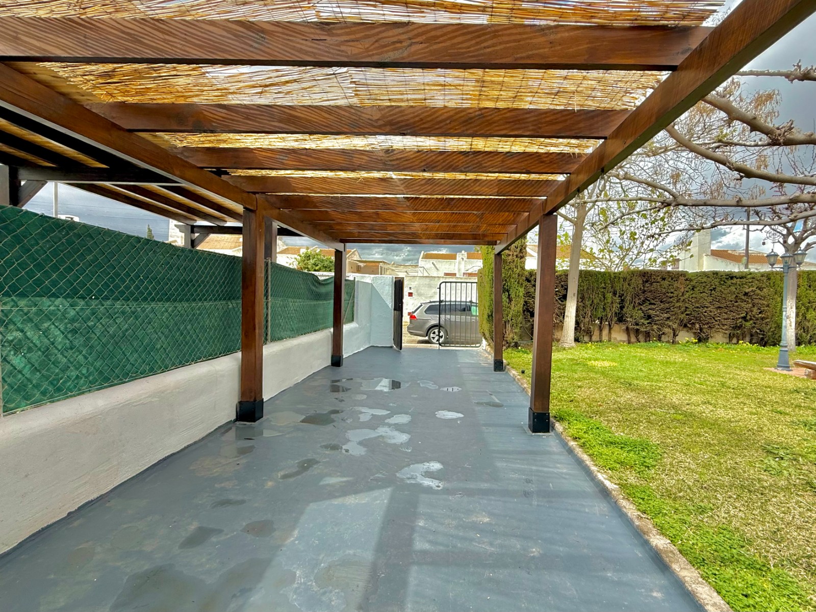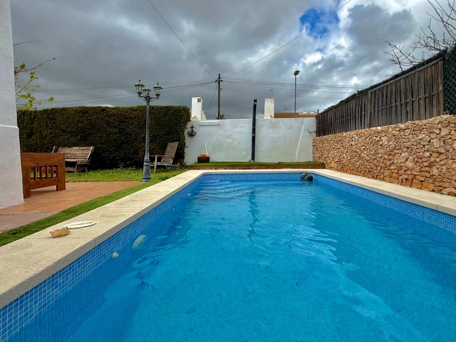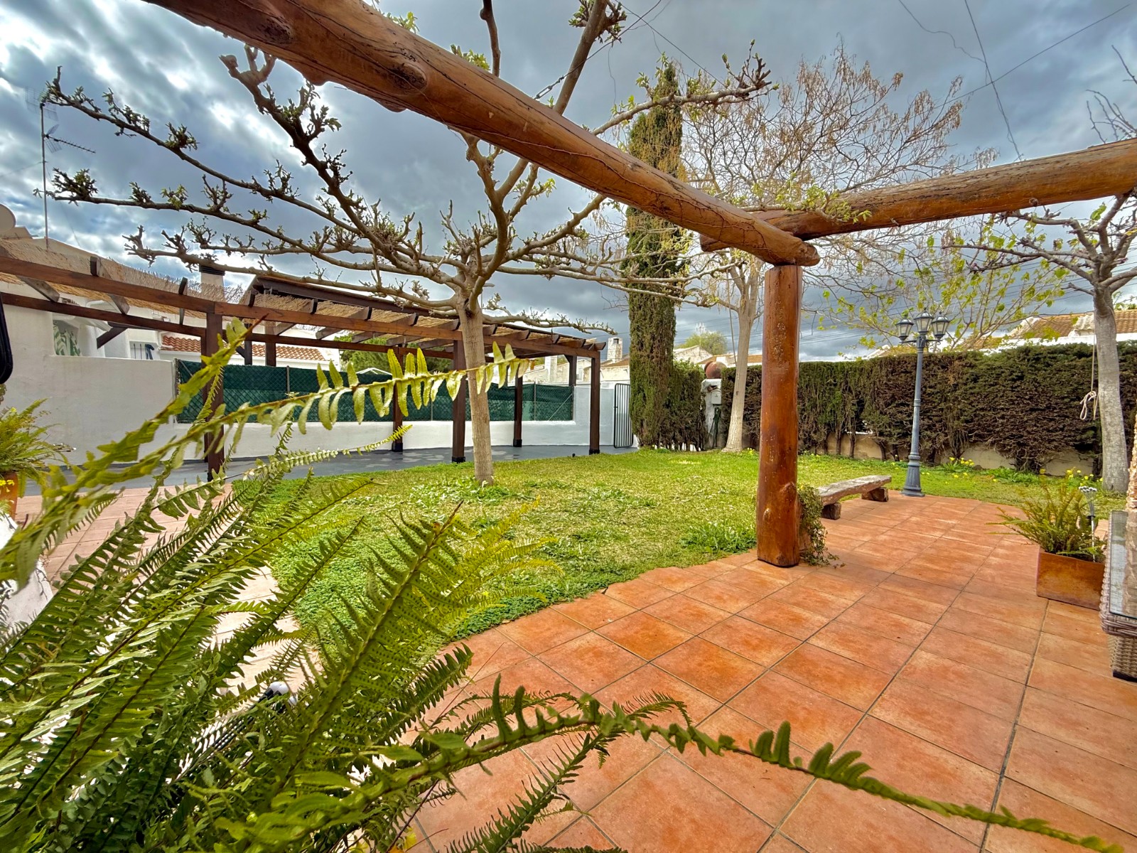 El patio incluye un trastero/lavadero con acceso desde el garaje, que tiene capacidad para un coche con espacio para ampliar. La vivienda dispone de piscina privada, jardín y orientación oeste, además de aire acondicionado, calefacción individual y fontanería y electricidad renovadas hace 8 años. Existe la posibilidad de construir una segunda planta.