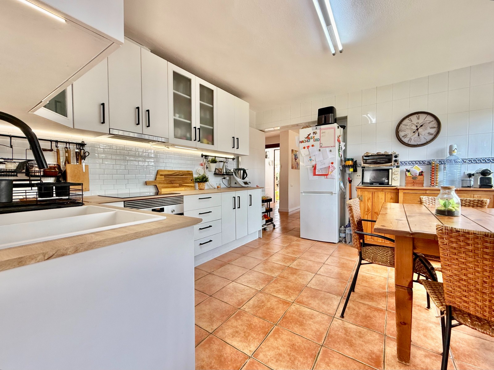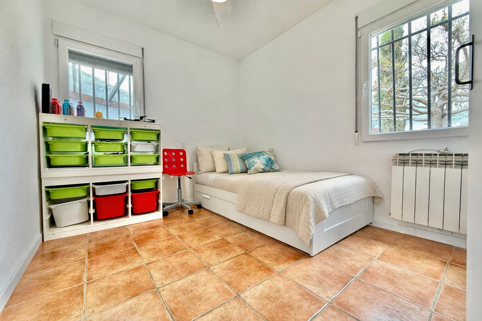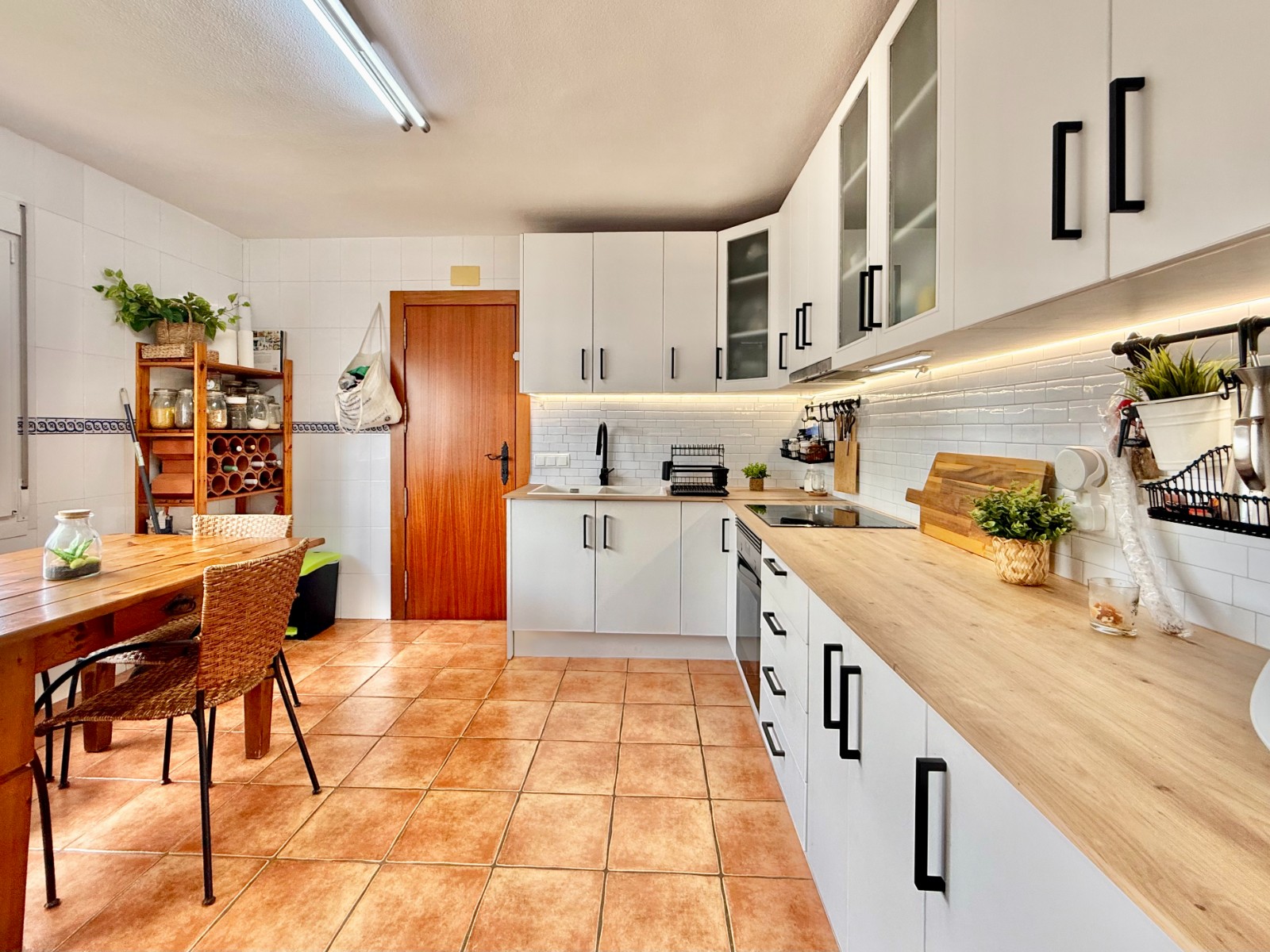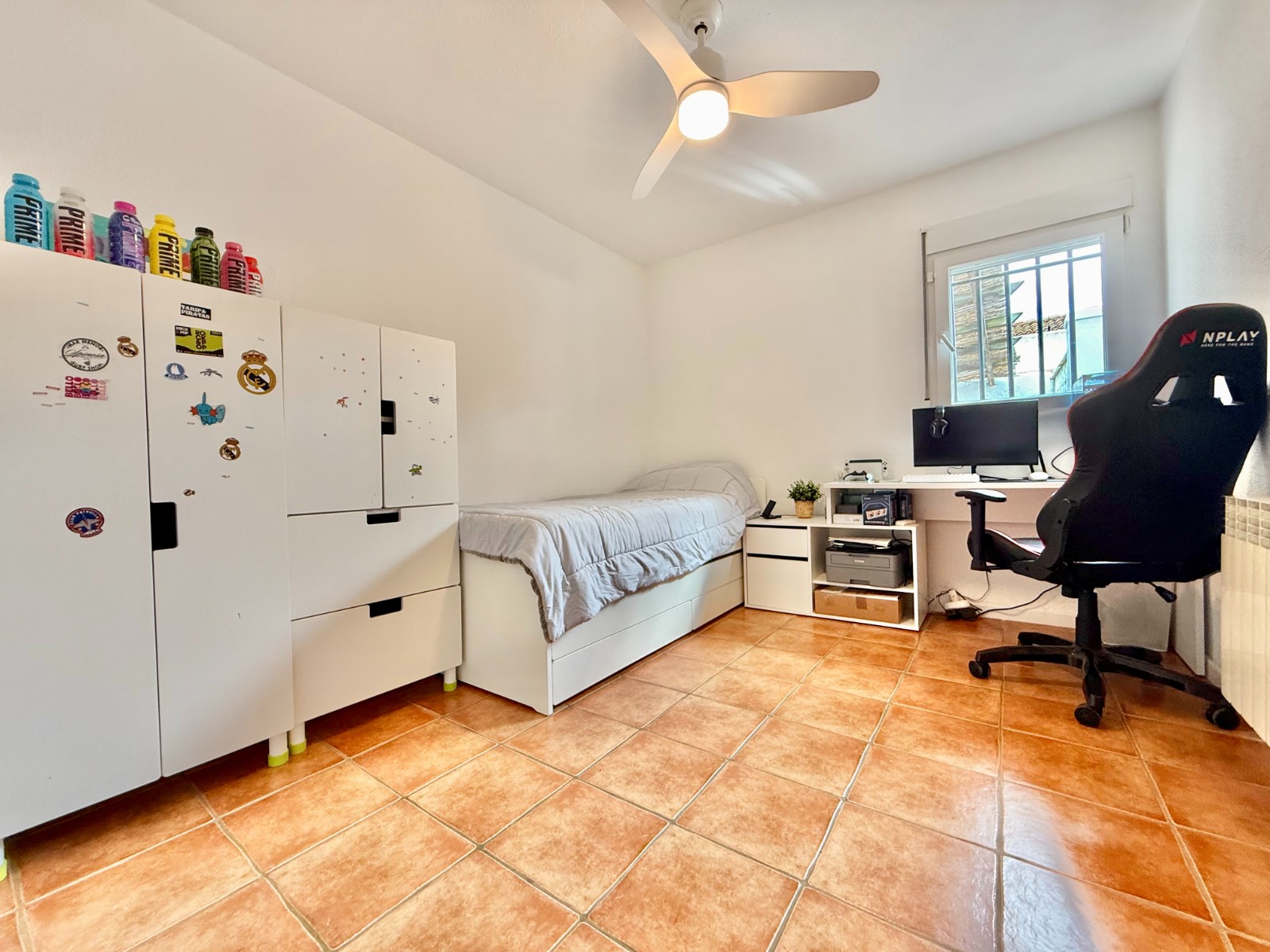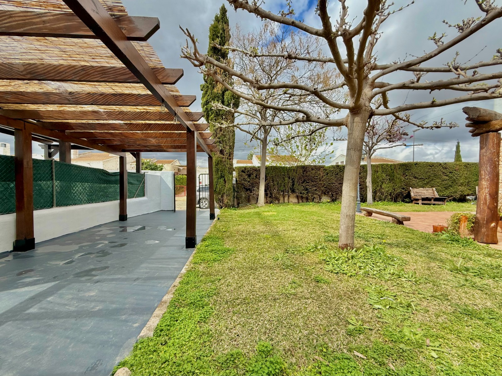 El patio incluye un trastero/lavadero con acceso desde el garaje, que tiene capacidad para un coche con espacio para ampliar. La vivienda dispone de piscina privada, jardín y orientación oeste, además de aire acondicionado, calefacción individual y fontanería y electricidad renovadas hace 8 años. Existe la posibilidad de construir una segunda planta.