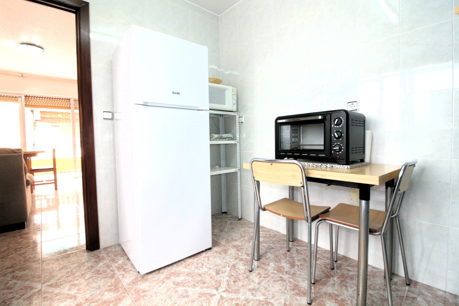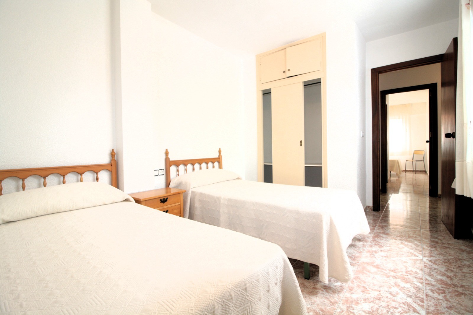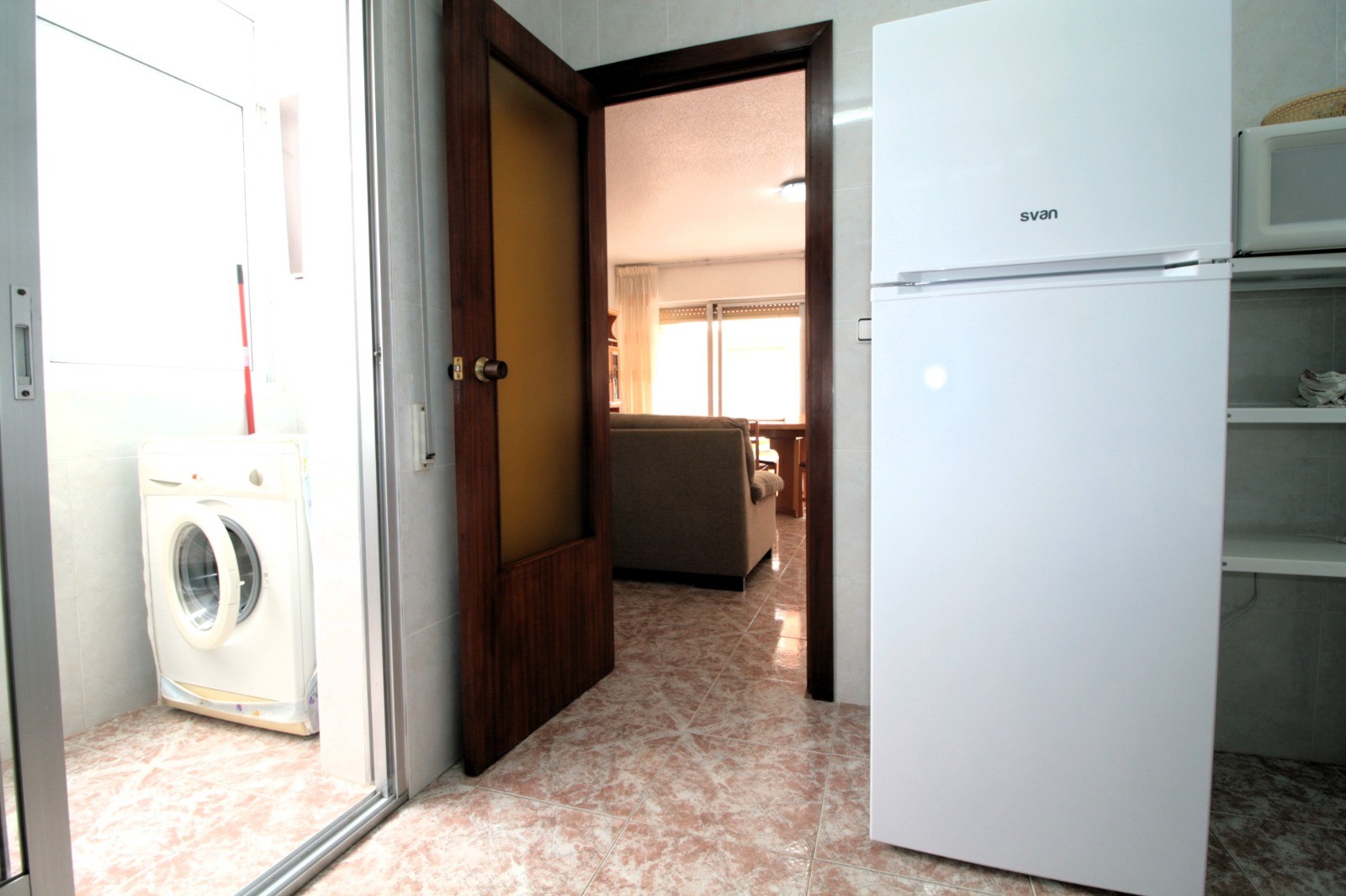 Piso super luminoso en segunda planta, en venta a unos 300 metros de la playa. Consta de tres dormitorios con armarios empotrados, un baño completo y un aseo. Tiene cocina individual reformada con acceso a un lavadero, y plaza de garaje y piscina comunitaria.