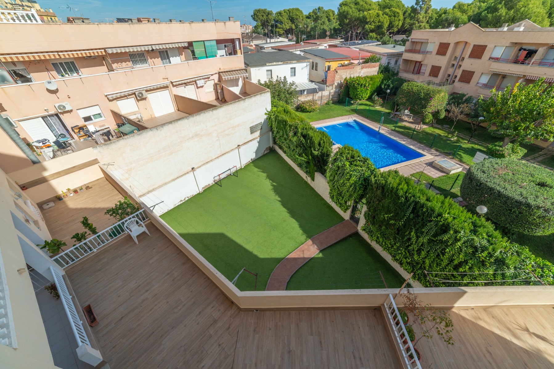 Y ojo a las zonas comunes: jardín con rincones verdes, piscina amplia, varias terrazas comunitarias y, por si fuera poco, plaza de garaje incluida en el precio. Todo esto a un paso del mar… ¡un lujo en esta zona!
