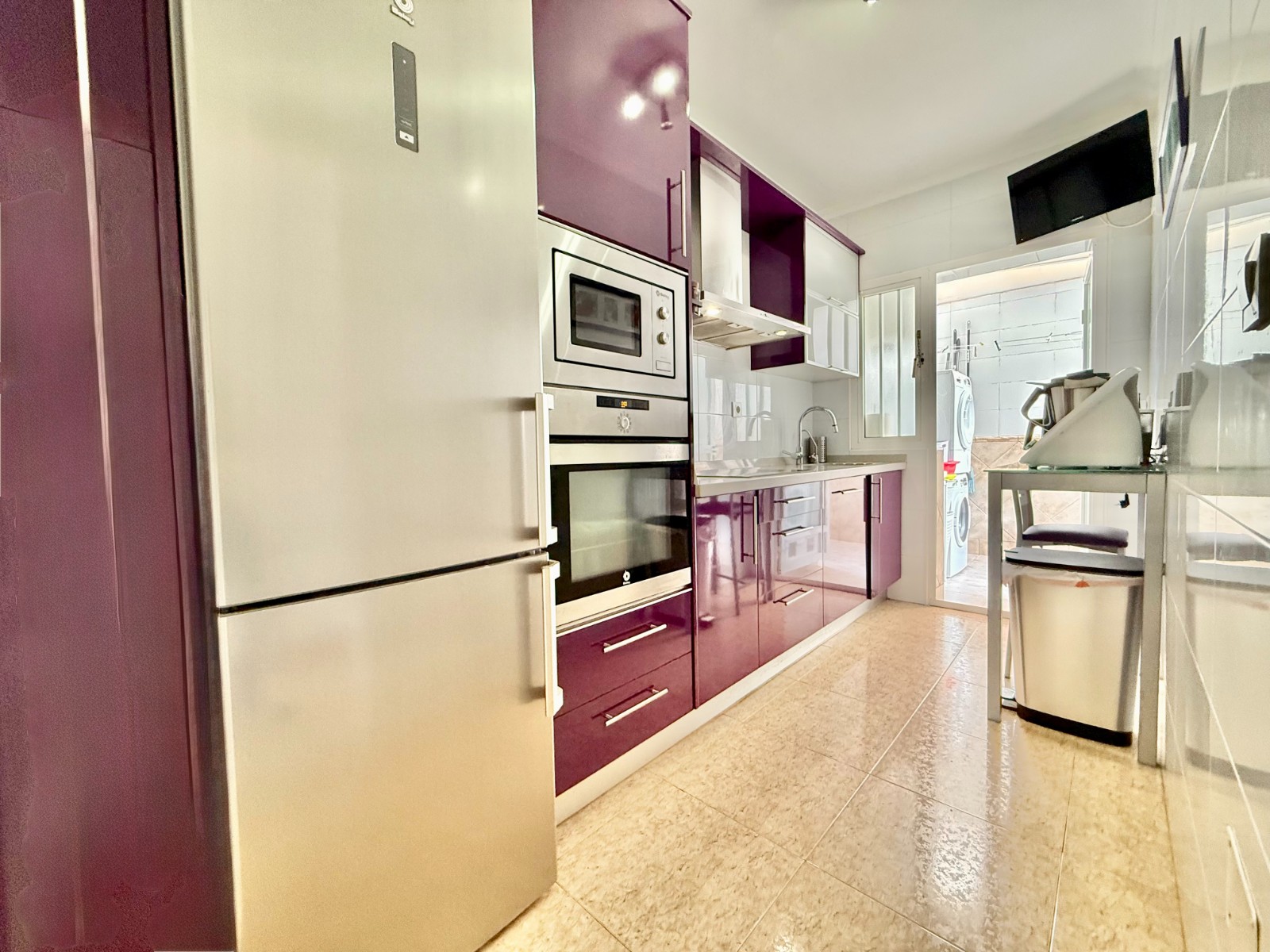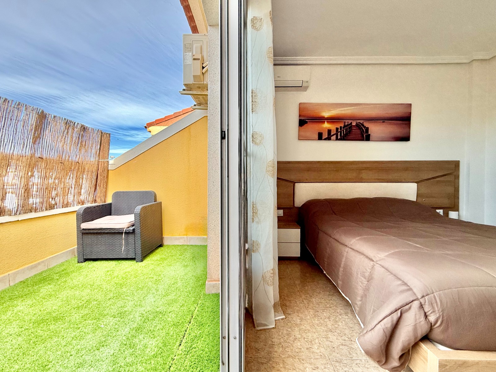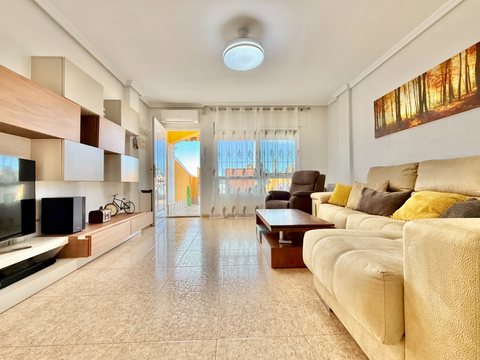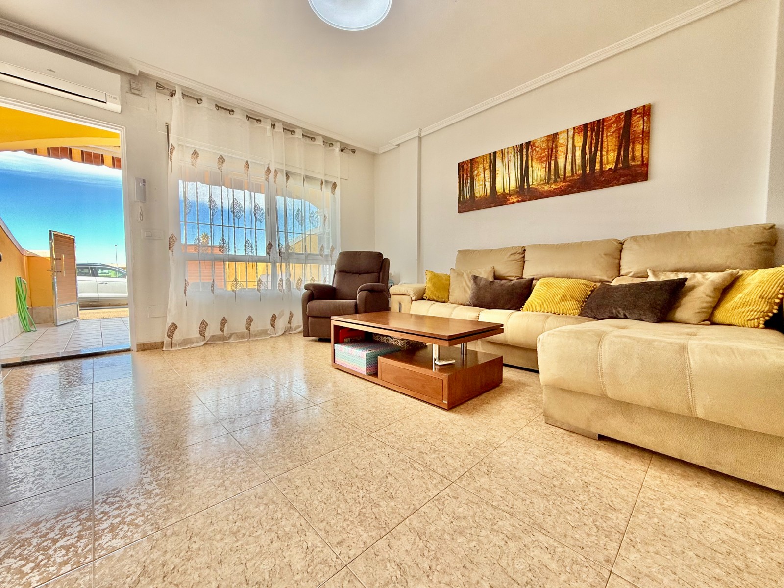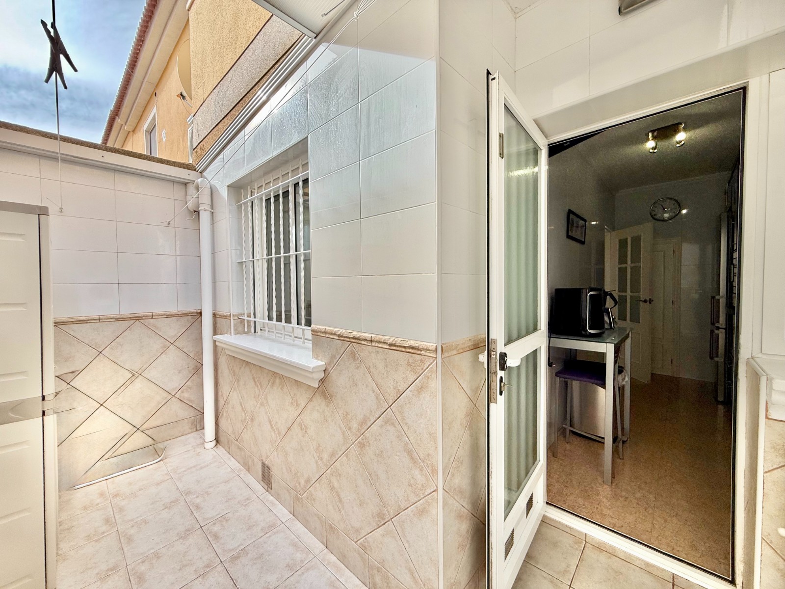 Cuenta con aire acondicionado, dos orientaciones y salón amplio. En planta baja encontramos habitación con armario empotrado y baño, además de cocina renovada con despensa y salida a patio-lavadero semiabierto con techo móvil corredero.