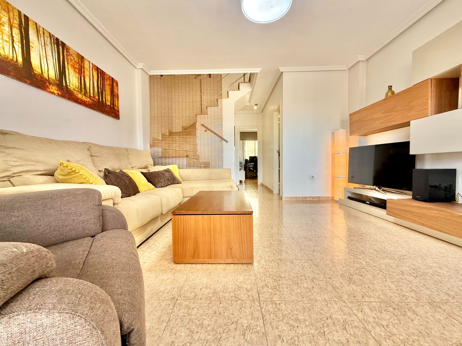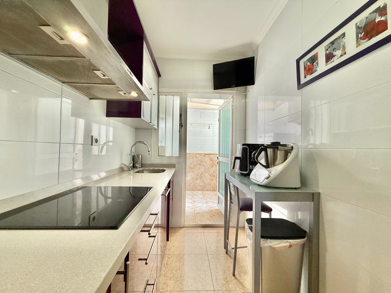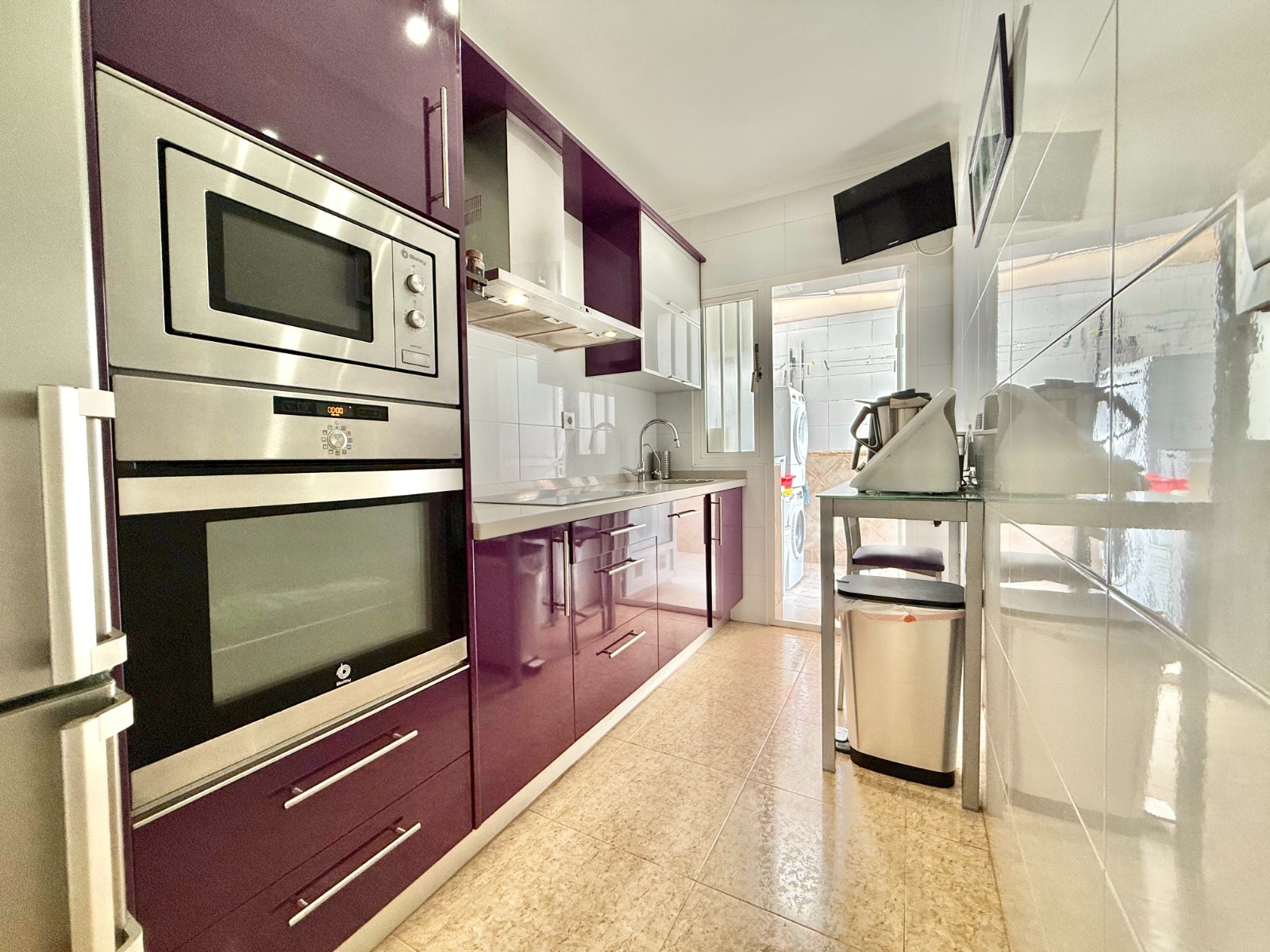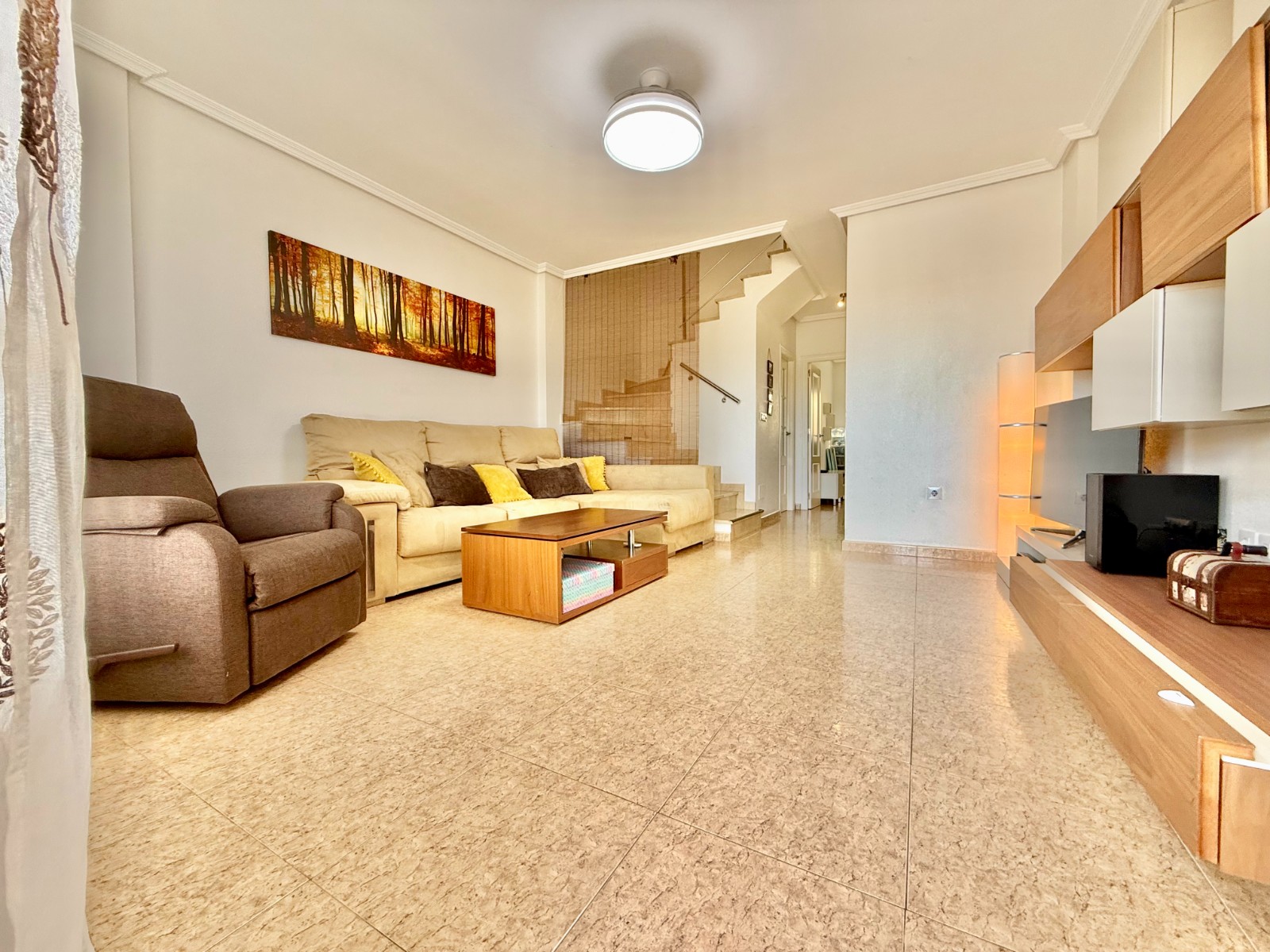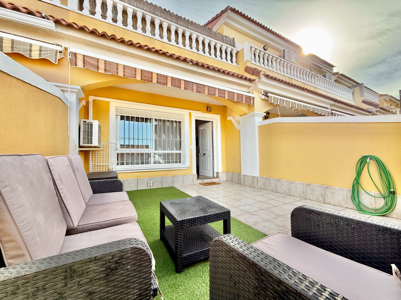 Cuenta con aire acondicionado, dos orientaciones y salón amplio. En planta baja encontramos habitación con armario empotrado y baño, además de cocina renovada con despensa y salida a patio-lavadero semiabierto con techo móvil corredero.