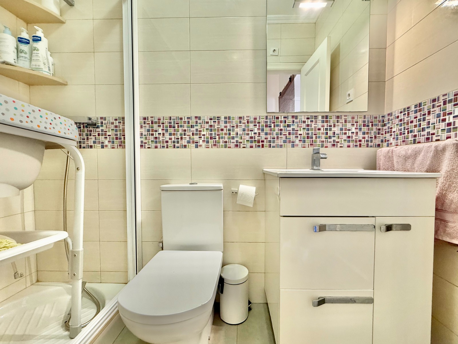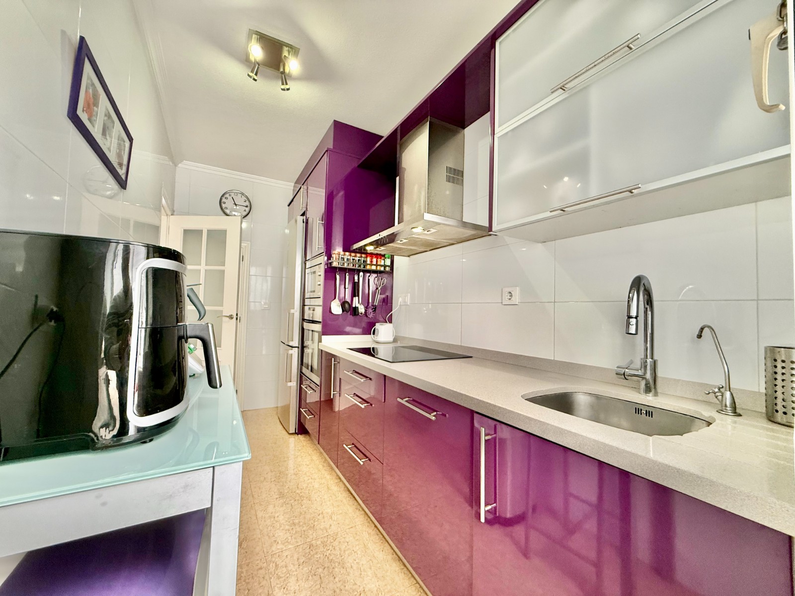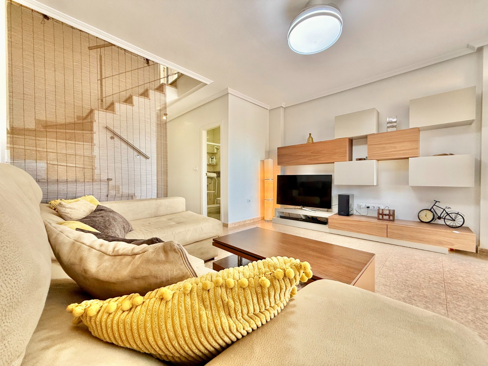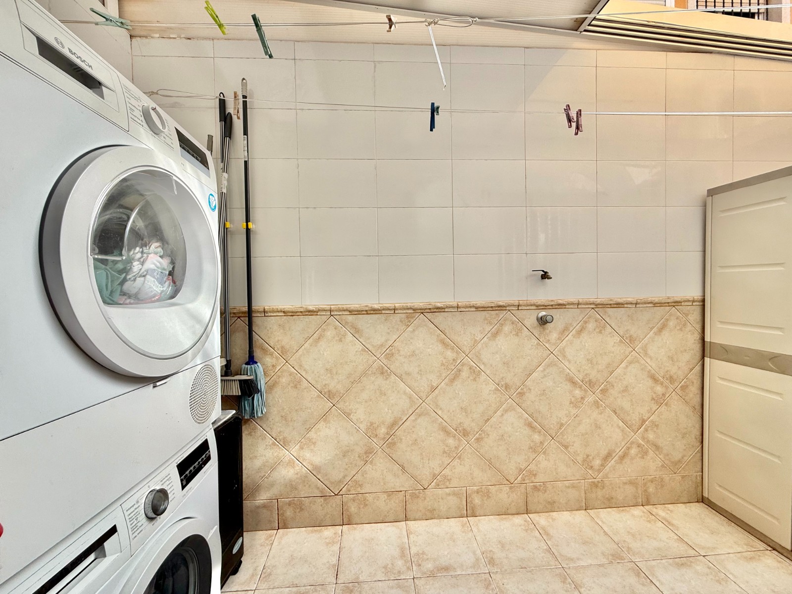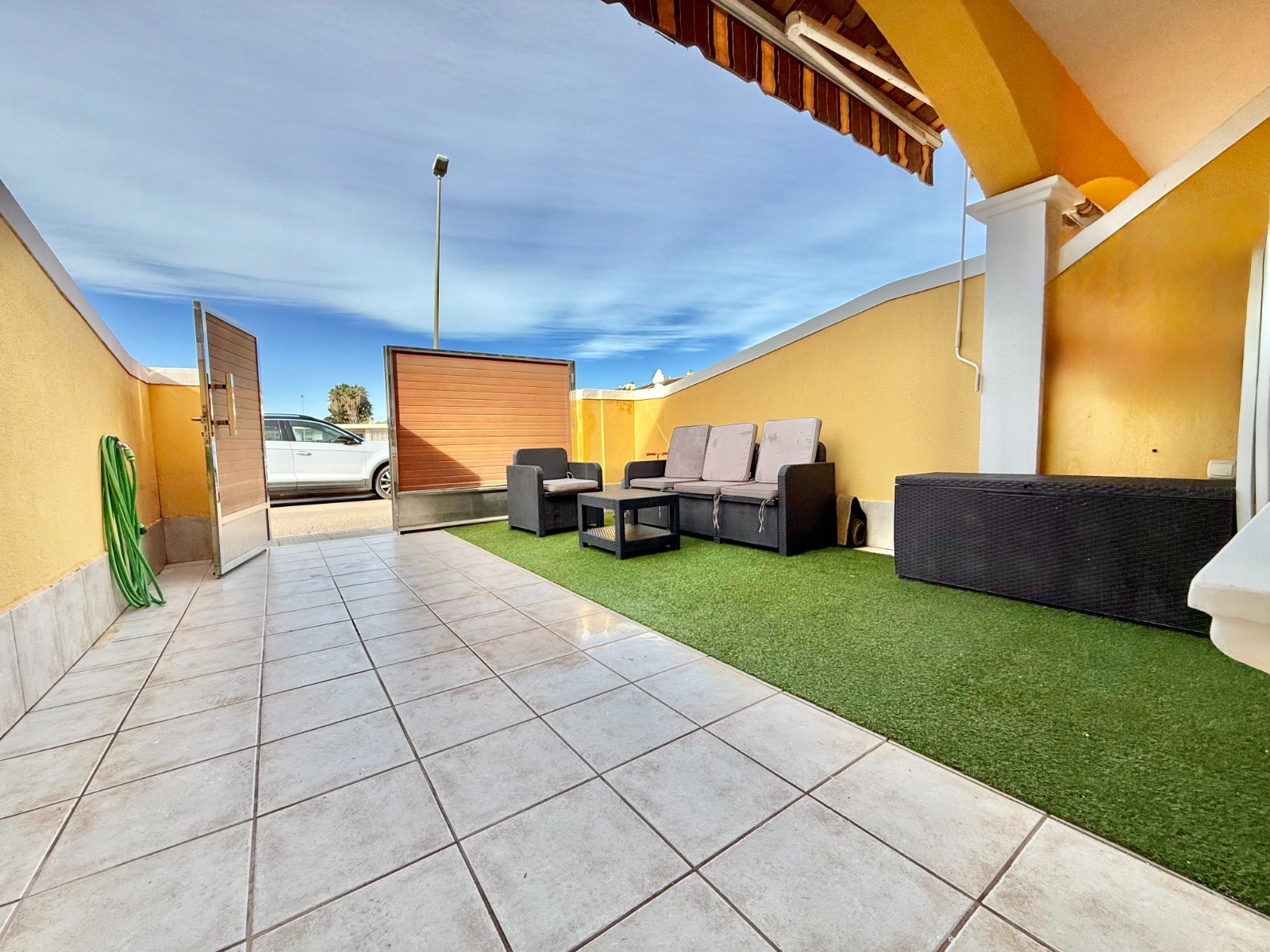 Cuenta con aire acondicionado, dos orientaciones y salón amplio. En planta baja encontramos habitación con armario empotrado y baño, además de cocina renovada con despensa y salida a patio-lavadero semiabierto con techo móvil corredero.