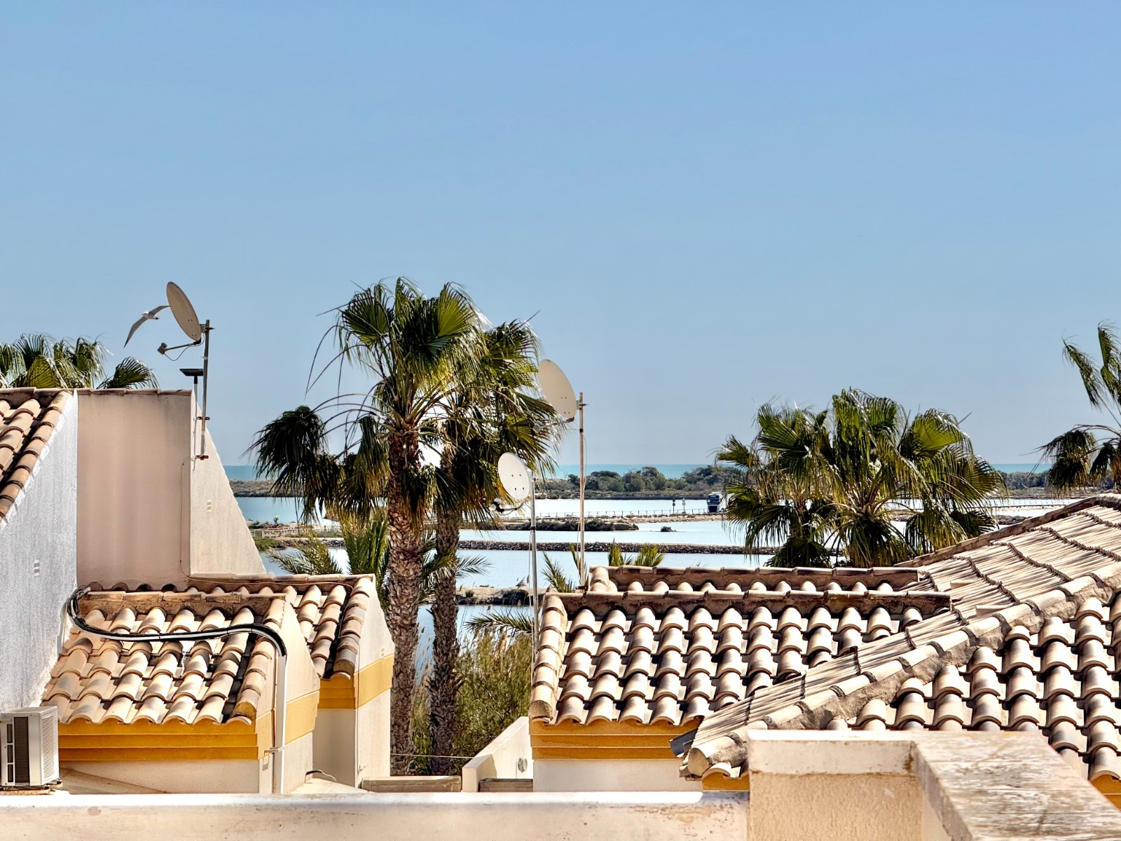 Una casa para vivir todo el año como de vacaciones. Con piscina y junto a la playa. Con terraza a pie de calle y solarium.