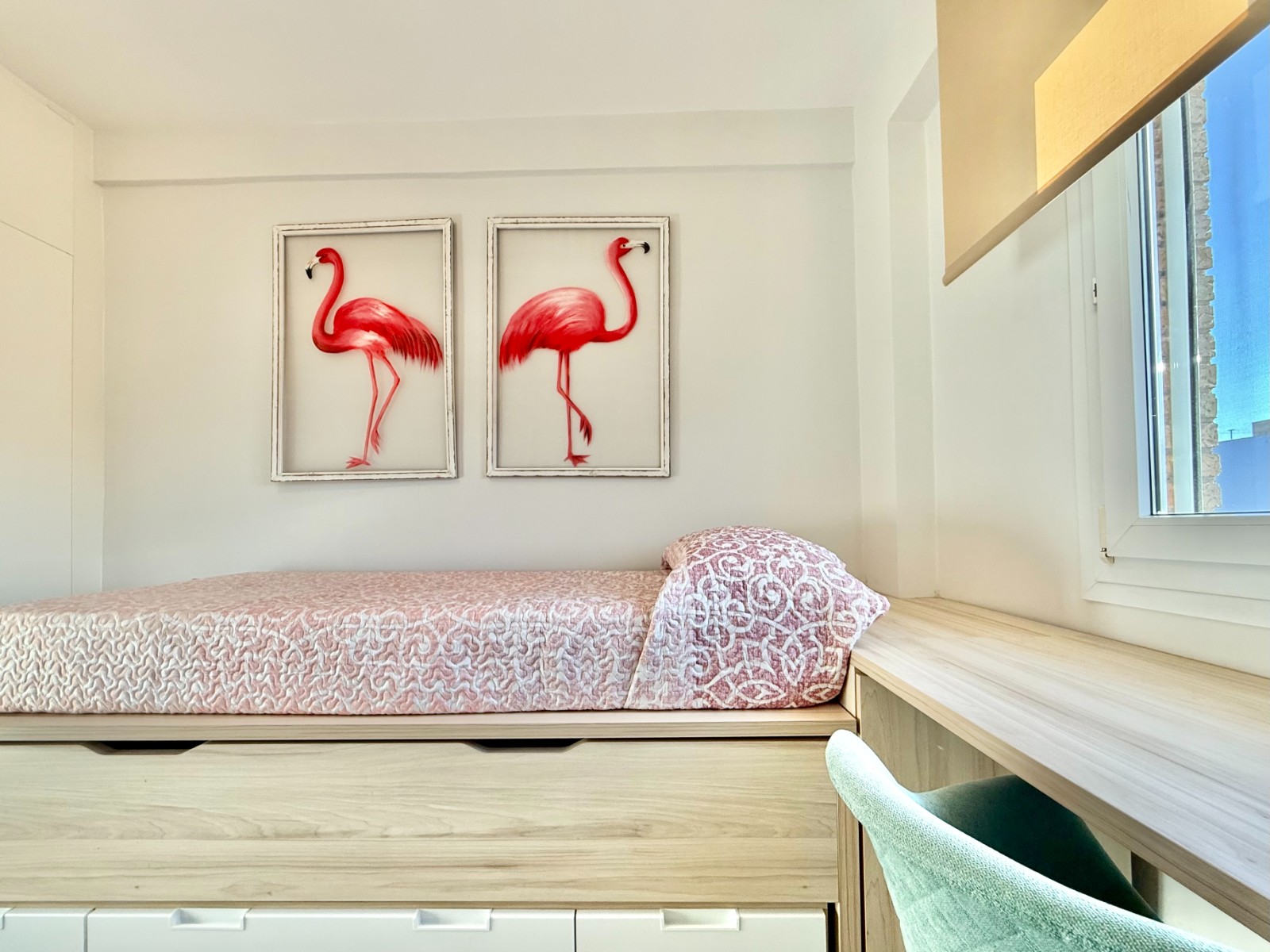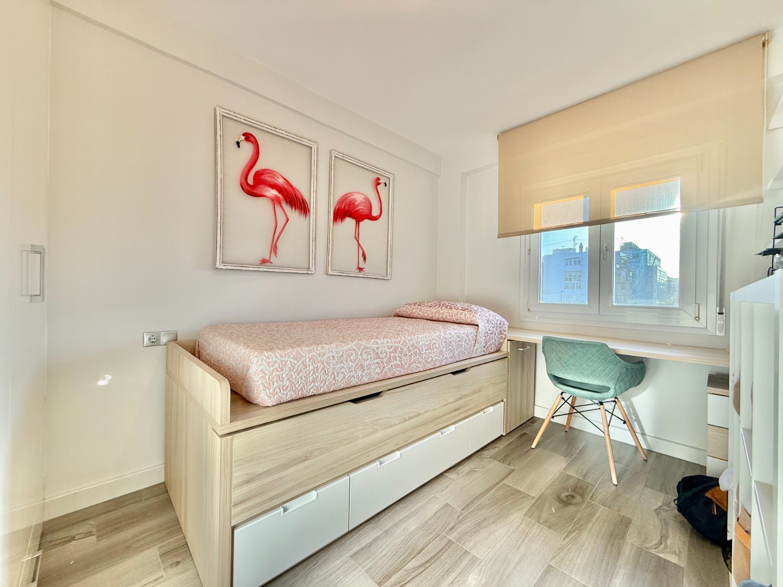 Descubre este espectacular piso listo para entrar a vivir, ideal para quienes buscan luminosidad, confort y un diseño moderno. Reformado hace solo 5 años, incluye mejoras en aluminio, electricidad, aire acondicionado, armarios empotrados, suelos y paredes lisas, ofreciendo un ambiente acogedor y actual. La cocina, integrada al salón mediante una elegante barra americana, crea un espacio perfecto para disfrutar en familia o con amigos, mientras que sus amplias ventanas aportan una luz natural constante durante todo el día. La vivienda cuenta con 3 dormitorios y un baño, todos con armarios empotrados completamente equipados. Su orientación sur, este y oeste garantiza una temperatura agradable durante todo el año, además de un importante ahorro energético. Ubicado en una zona tranquila, cerca de colegios, supermercados y con facilidad de aparcamiento, este piso destaca también porque nunca perderá su excelente luminosidad al no haber futuras construcciones en sus alrededores. Una oportunidad única para disfrutar de un hogar moderno, eficiente y lleno de luz.