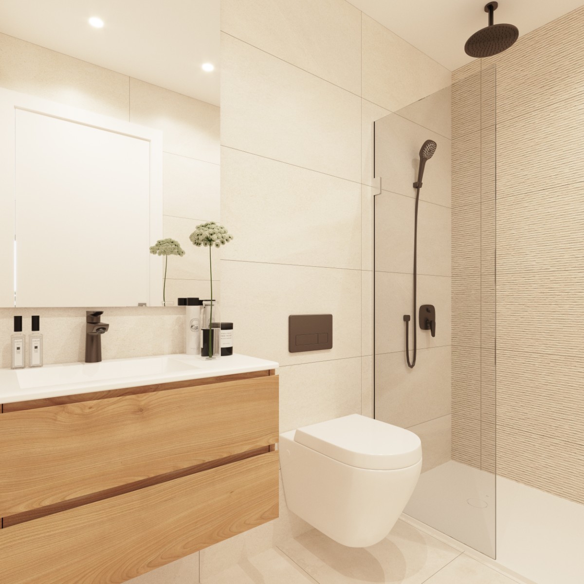Puedes elegir entre plantas bajas con generosas terrazas y patio privado, perfectas para disfrutar al aire libre, o áticos con un espectacular solárium privado ideal para relajarse, tomar el sol o compartir momentos únicos. Las viviendas cuentan con cocina completamente equipada, acabados de alta calidad y climatización incluida. Además, el residencial ofrece piscina comunitaria rodeada de zonas ajardinadas y aparcamiento privado, aportando un entorno tranquilo y exclusivo.
