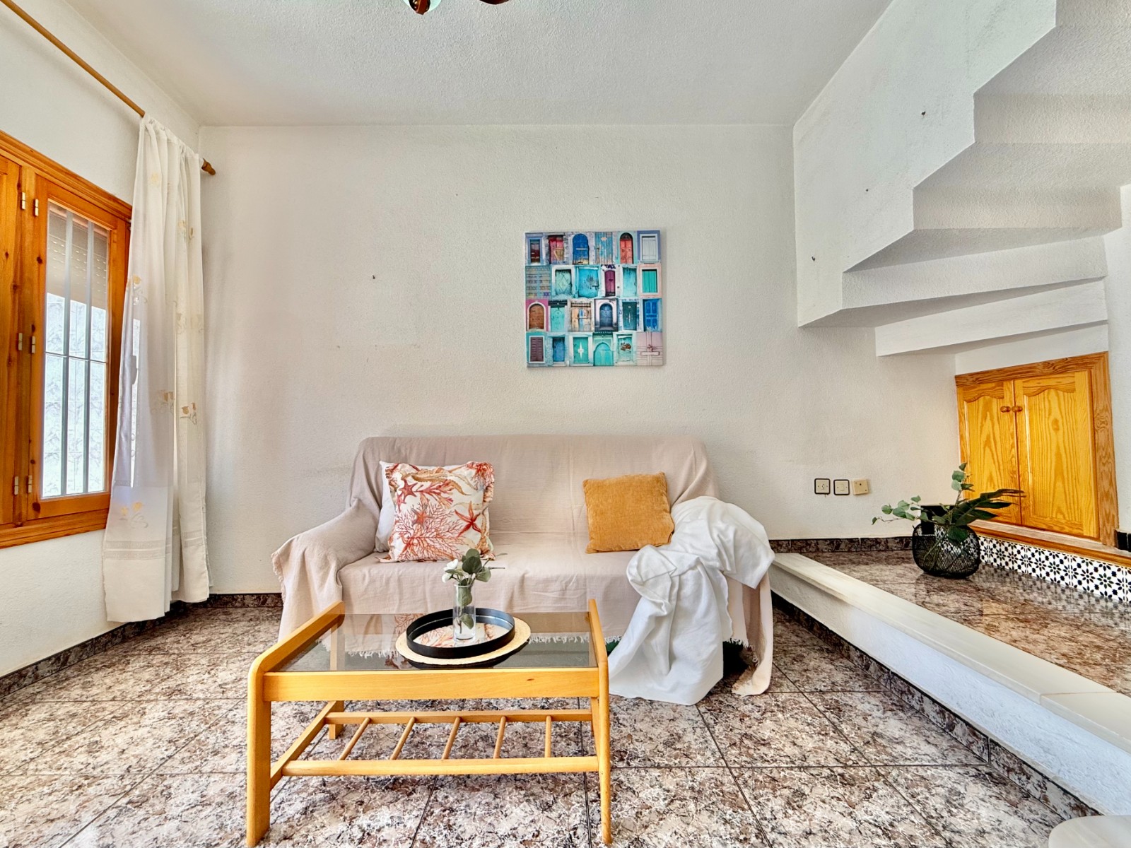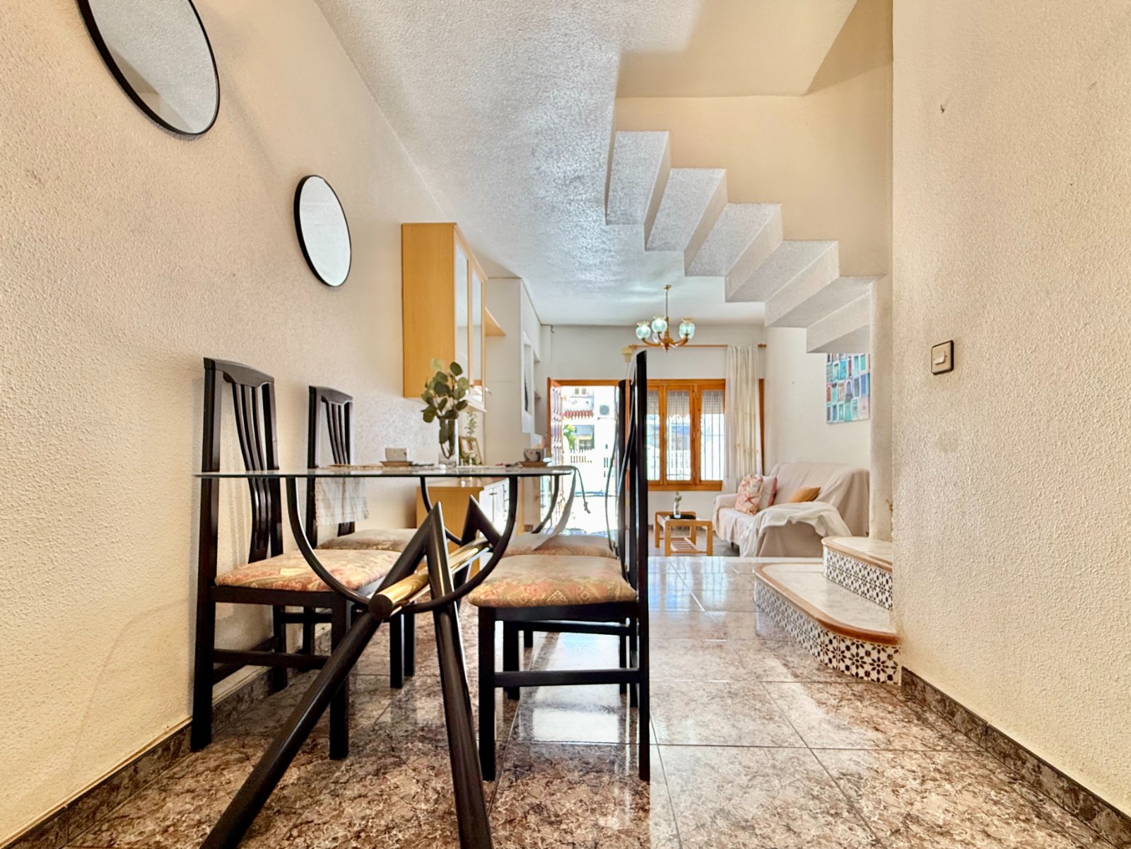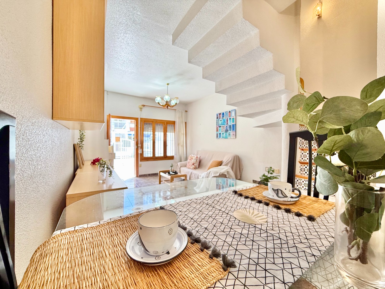 Distribuida en varias plantas, la vivienda ofrece tres dormitorios con posibilidad de un cuarto, incluyendo una buhardilla versátil que puede adaptarse como despacho, zona de ocio o dormitorio adicional. Dispone además de espacios exteriores como patio con barbacoa, terraza y balcón con vistas despejadas. Su cercanía a la playa, la ventilación cruzada y el buen estado general la convierten en una opción única en relación calidad-precio para quienes buscan una casa luminosa, cómoda y lista para disfrutar del estilo de vida mediterráneo.