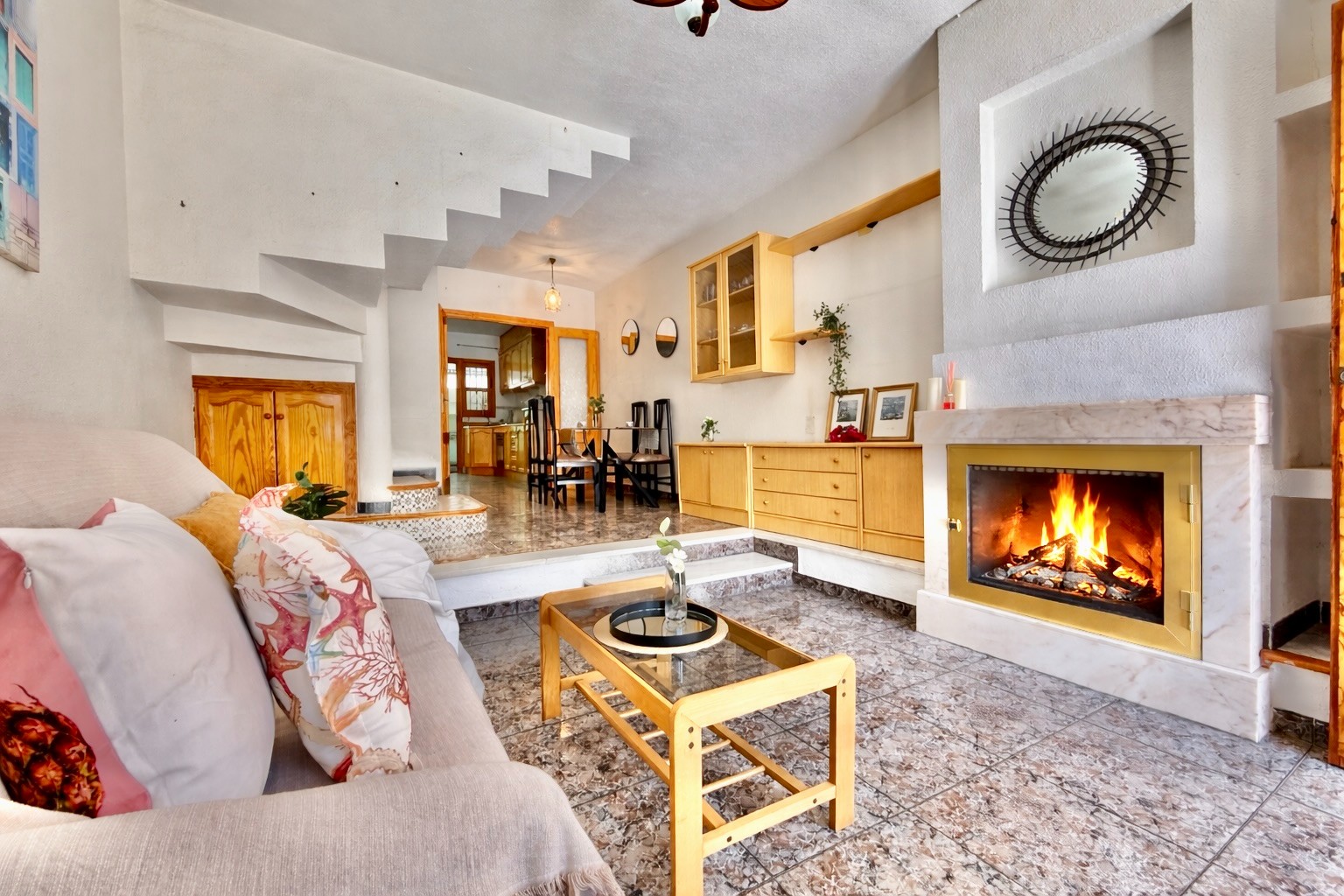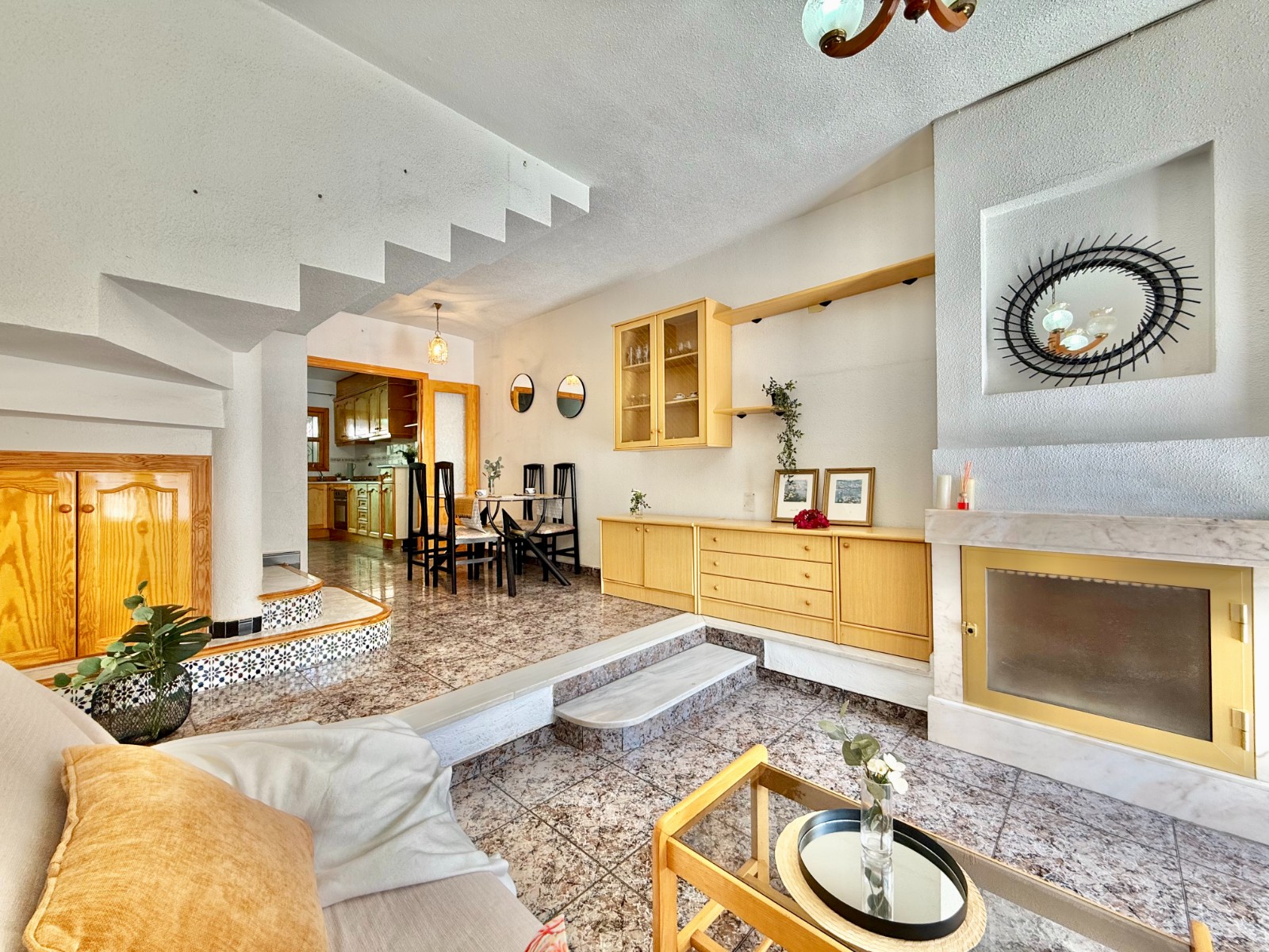 Descubre esta acogedora vivienda situada en una tranquila calle junto al Mar Menor, con privilegiadas vistas a las salinas y al mar Mediterráneo. La propiedad destaca por su excelente orientación sur, que aporta una luminosidad natural excepcional durante todo el día, y por su entorno residencial consolidado, ideal tanto para vivir todo el año como para disfrutar de vacaciones. La casa cuenta con un amplio salón-comedor a doble altura con chimenea, conectado a una gran cocina reformada y funcional, creando un espacio moderno y abierto perfecto para la vida en familia.