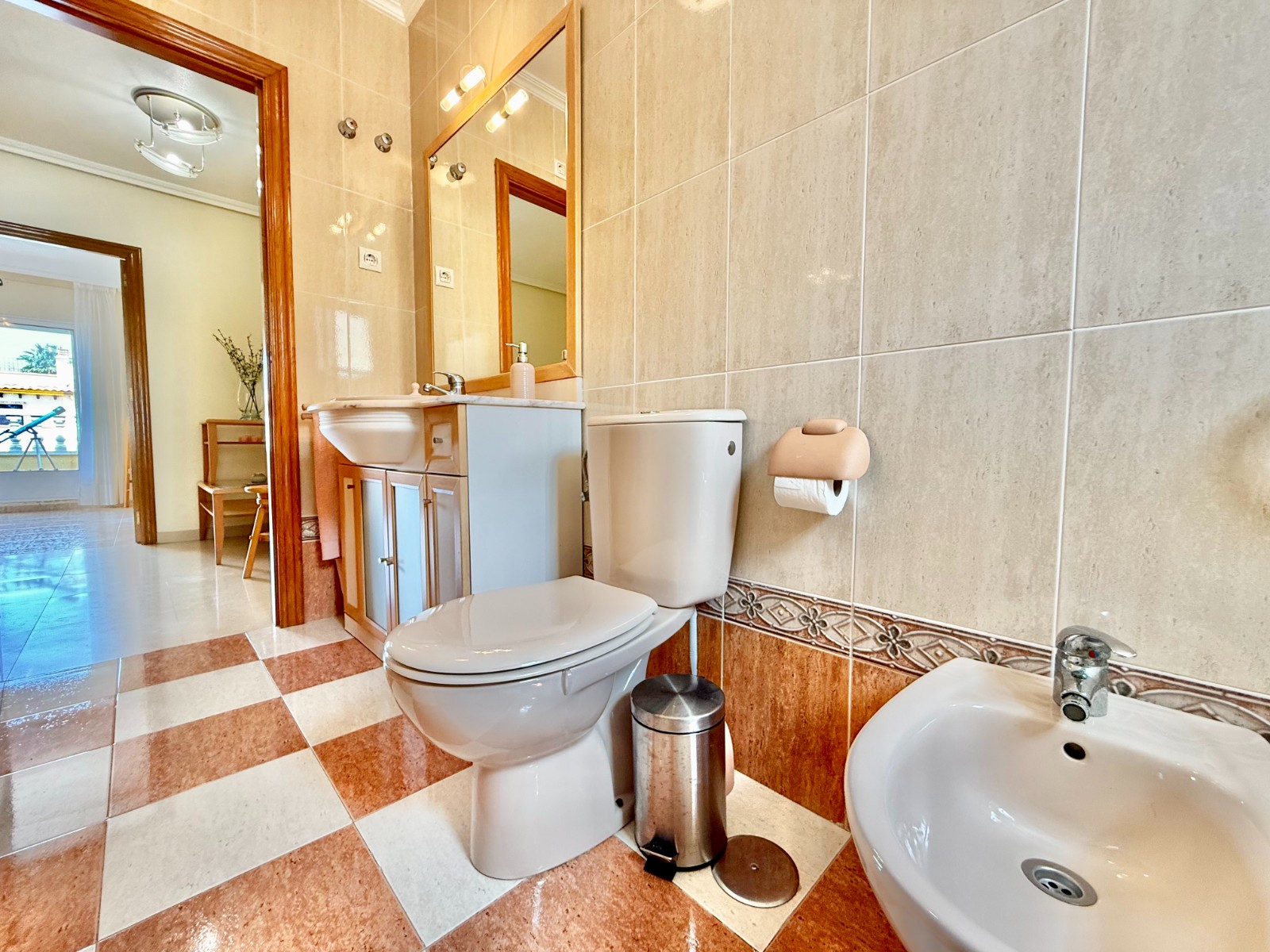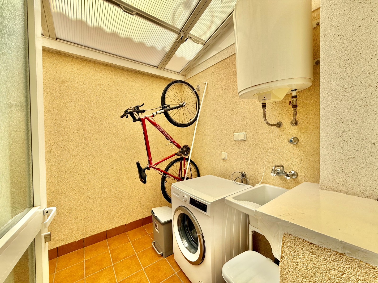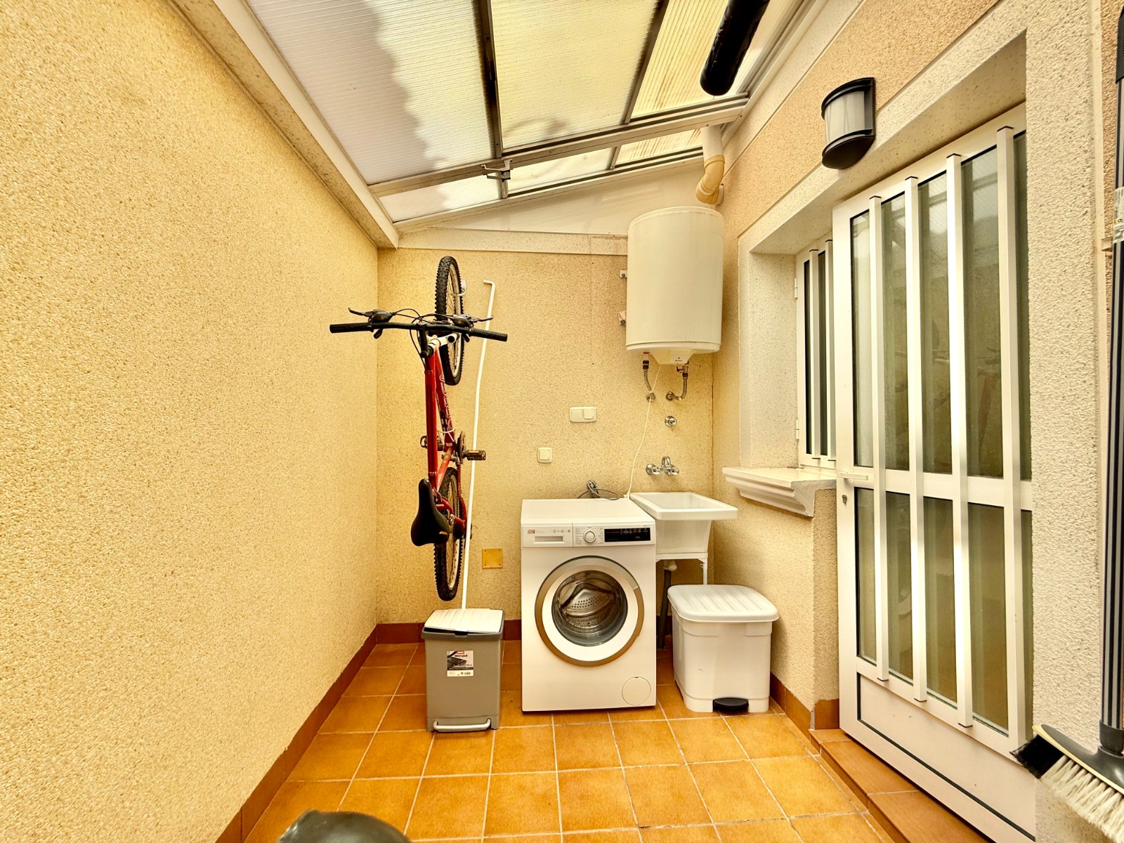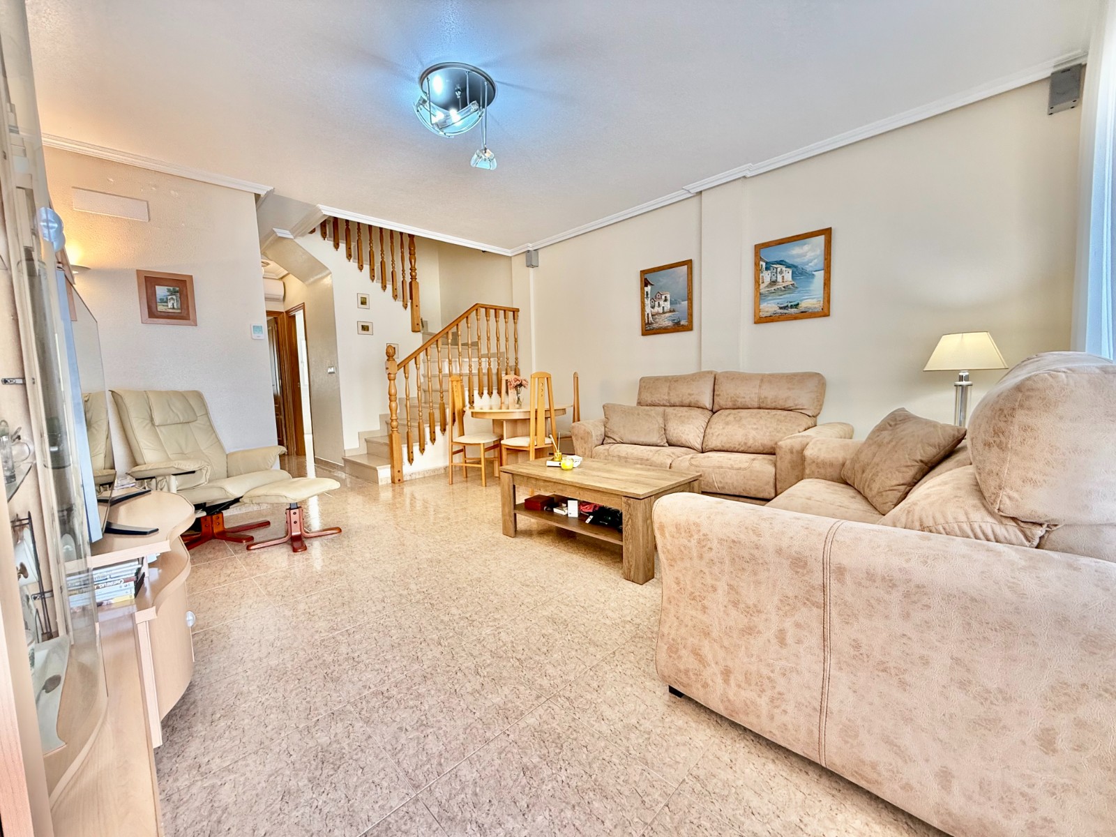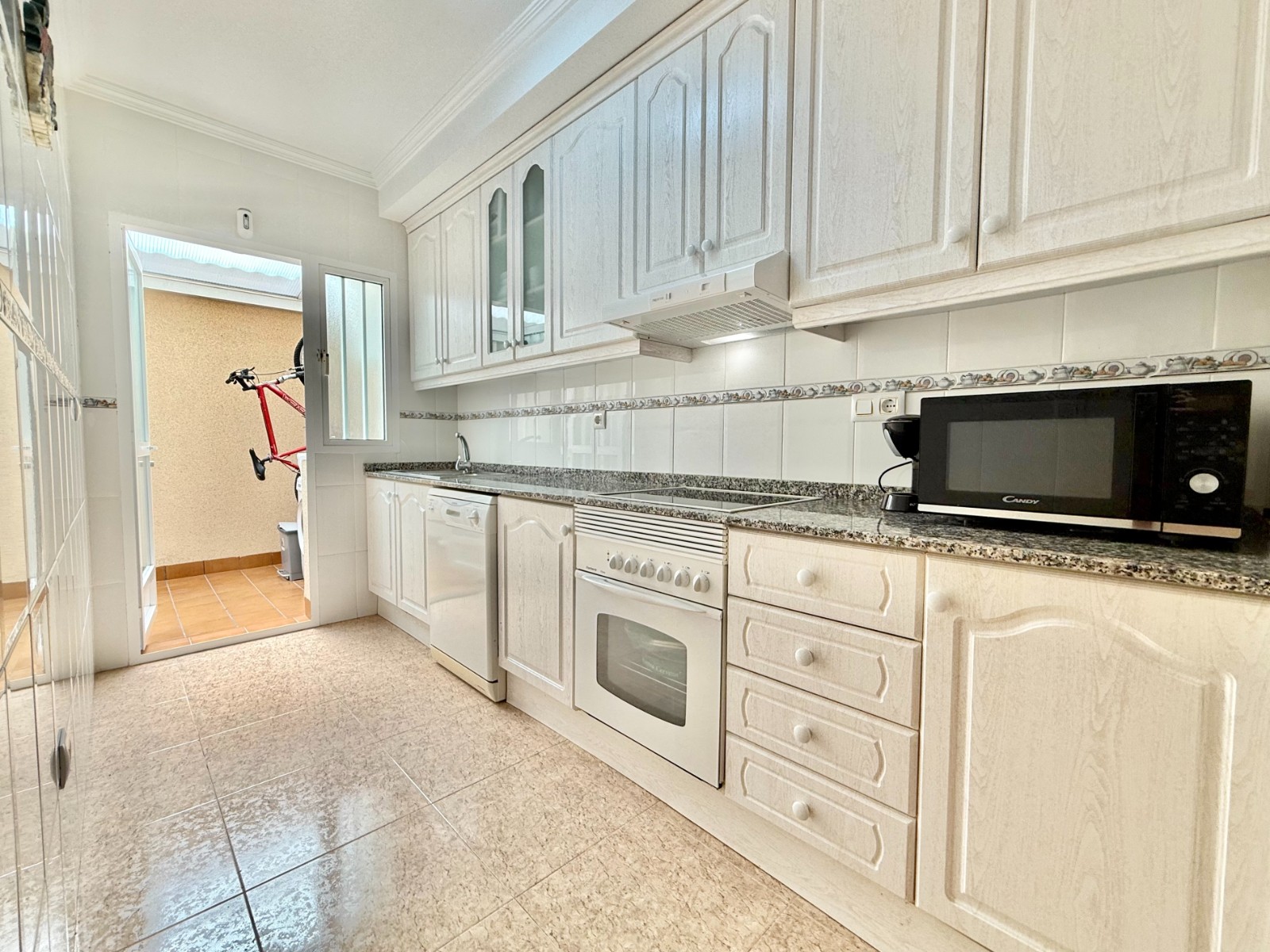 Cuenta con aire acondicionado, dos orientaciones y salón amplio. En planta baja encontramos habitación con armario empotrado y baño, además de cocina renovada con despensa y salida a patio-lavadero semiabierto con techo móvil corredero.