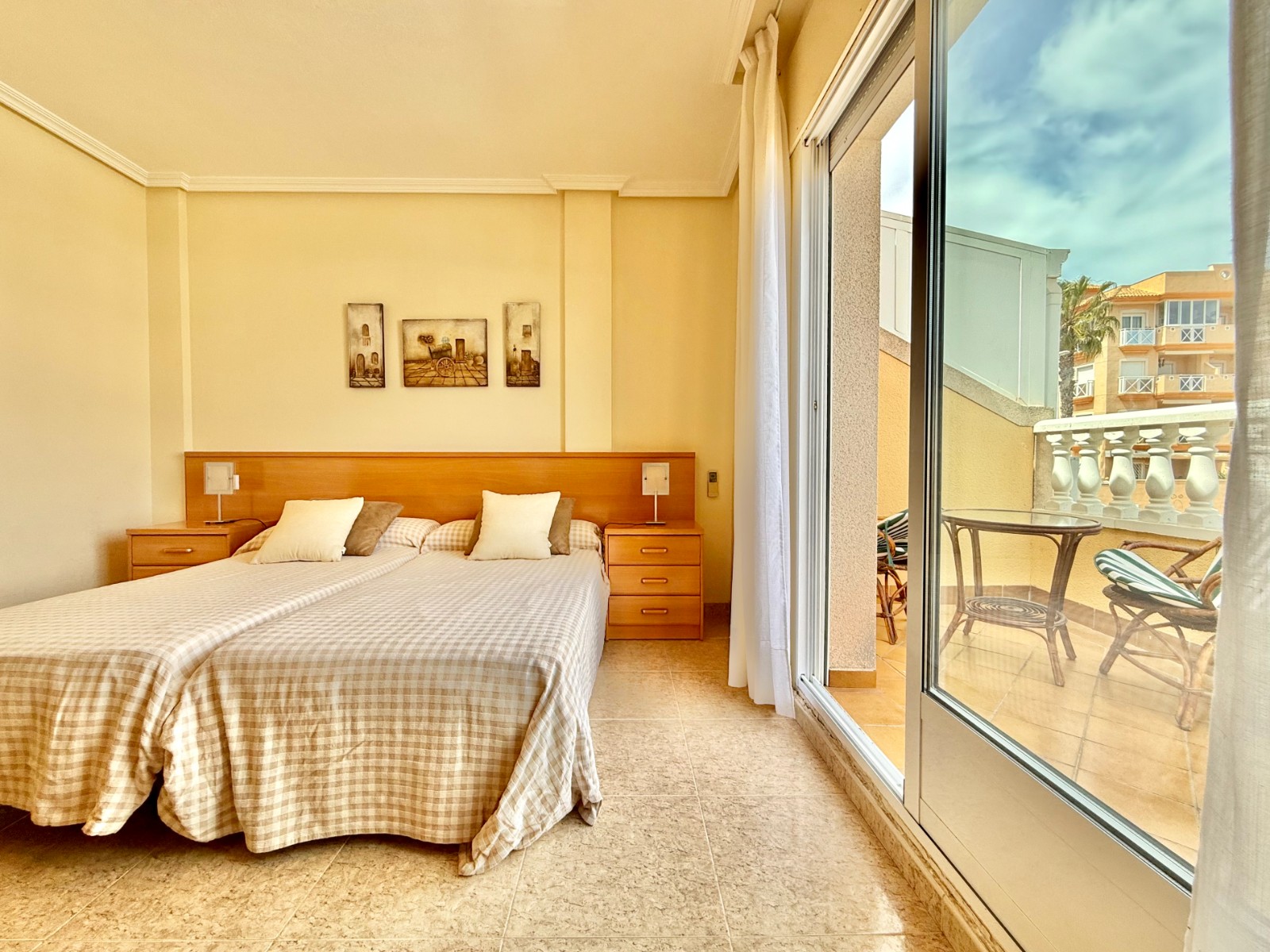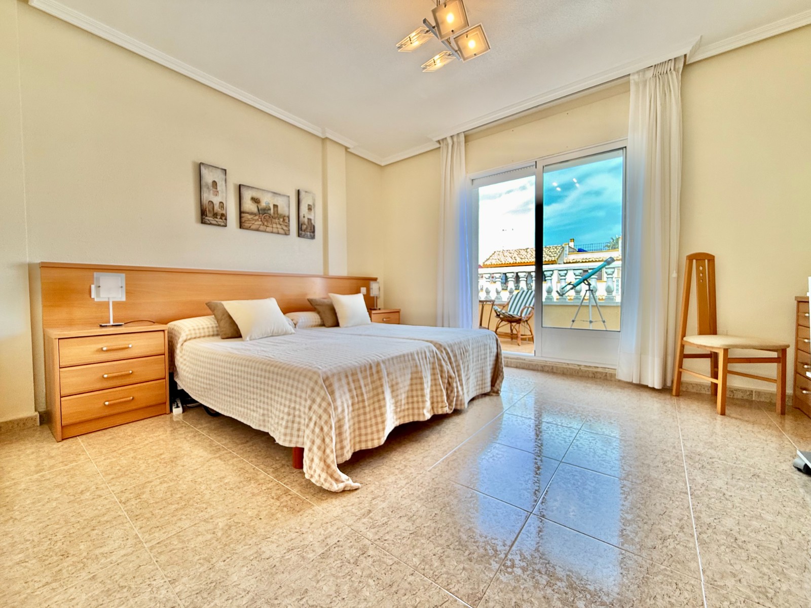 Vivienda en zona tranquila y de reciente construcción, con buen vecindario y vistas abiertas. Dispone de terraza de acceso con zona chill out, es familiar, espaciosa y muy cuidada, reformada y mejorada.