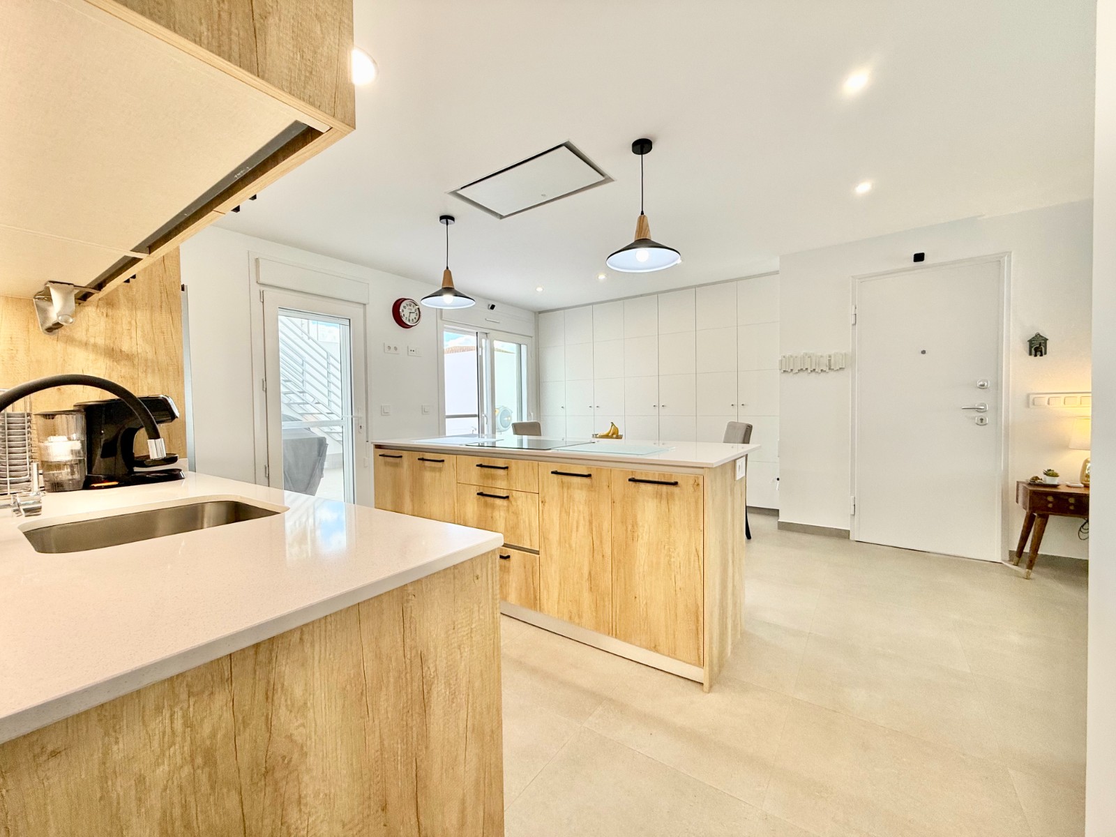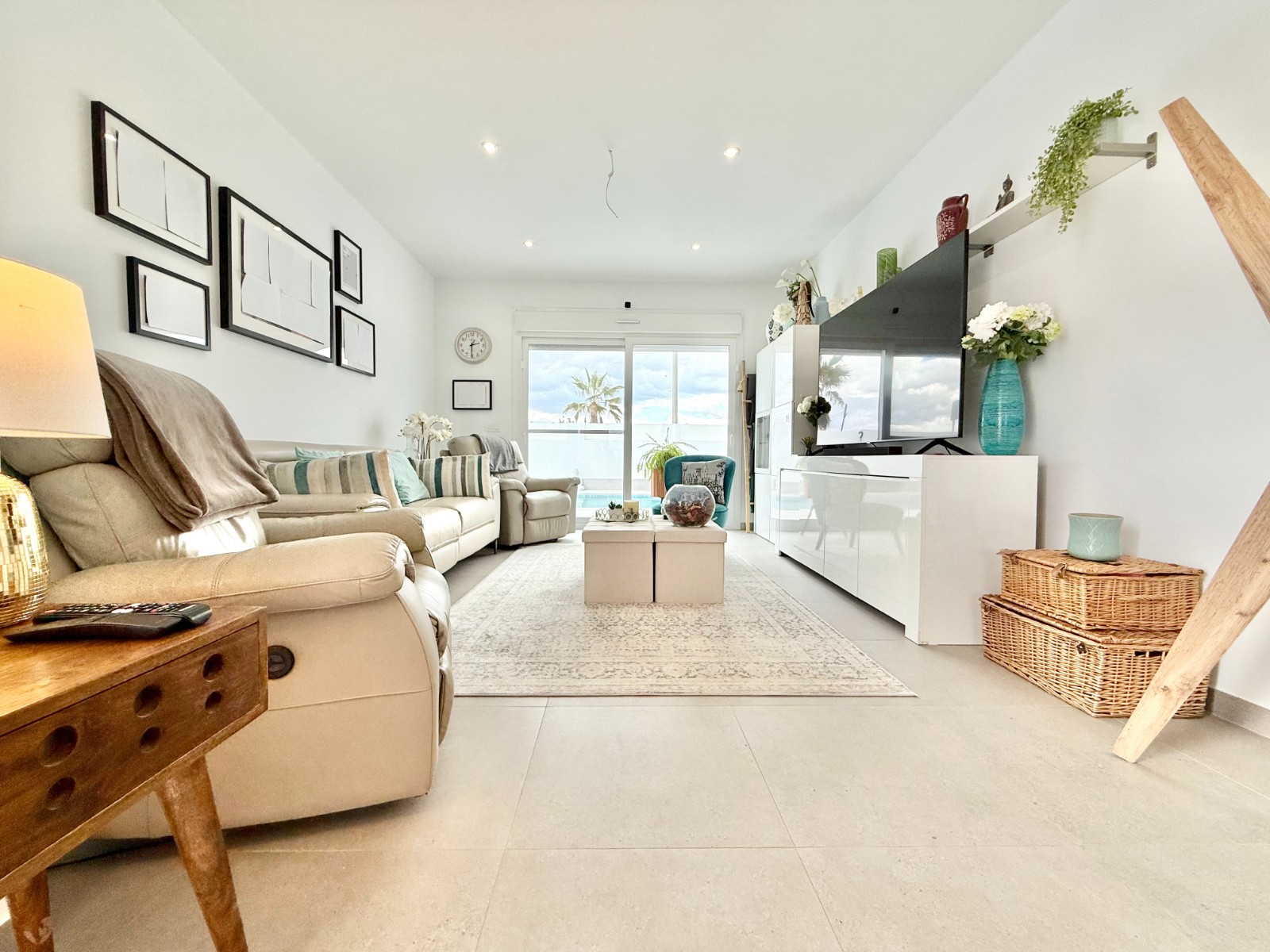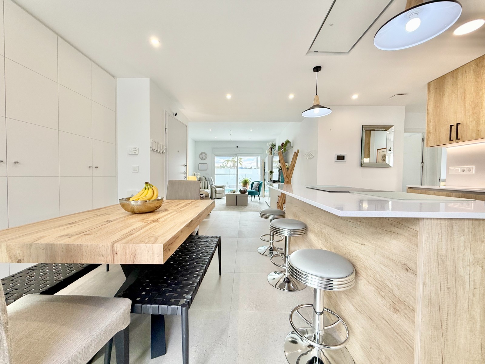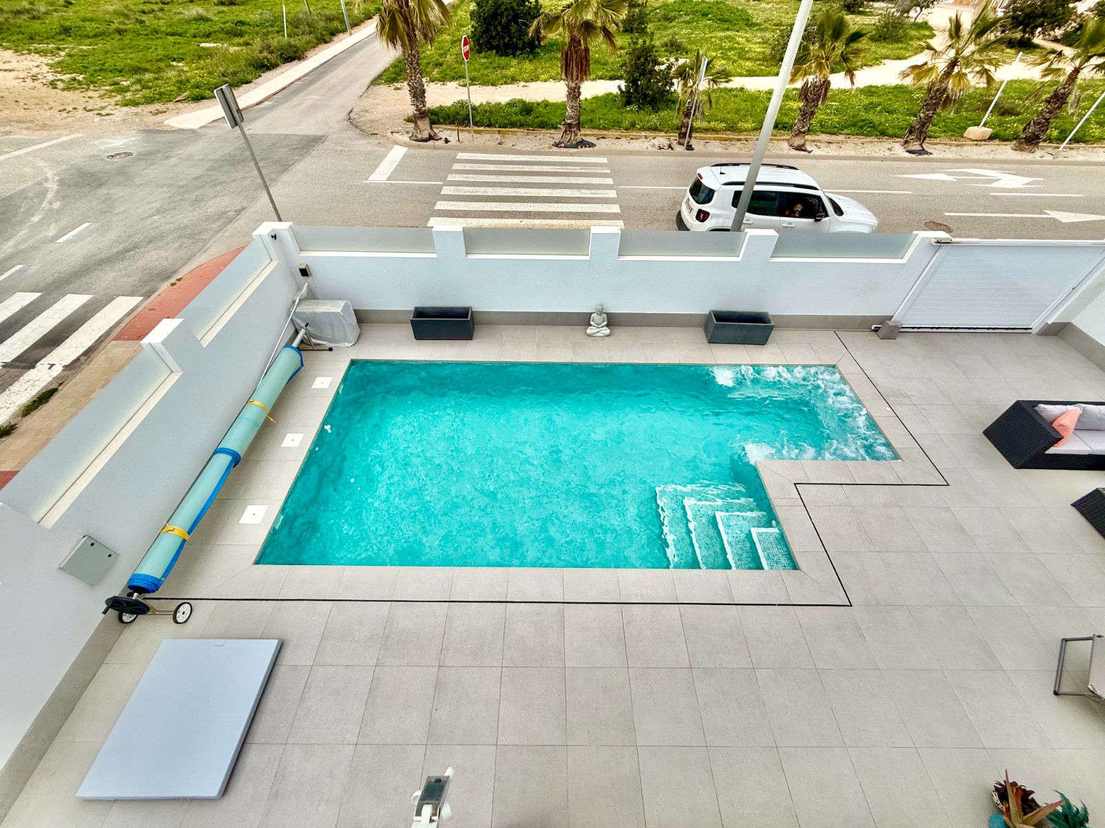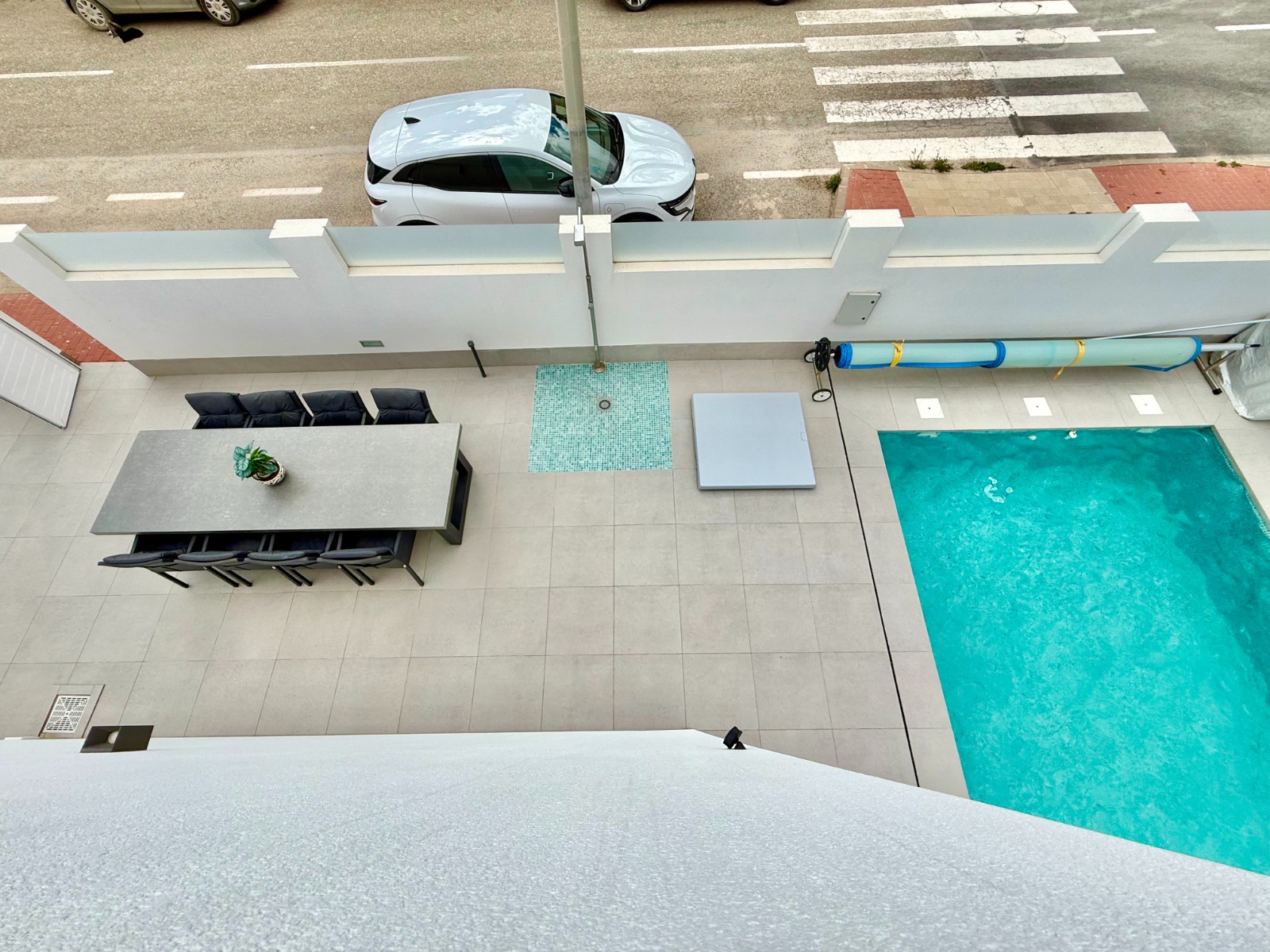 La vivienda es muy luminosa, amplia y ventilada, con 3 dormitorios dobles (uno de ellos con vestidor y baño en suite), baño con claraboya, amplio salón y cocina abierta espaciosa aunque lo mejor, además de la zona, es su terraza a pie de calle en forma de U con piscina y patio, su solarium y su entorno y vecinos.