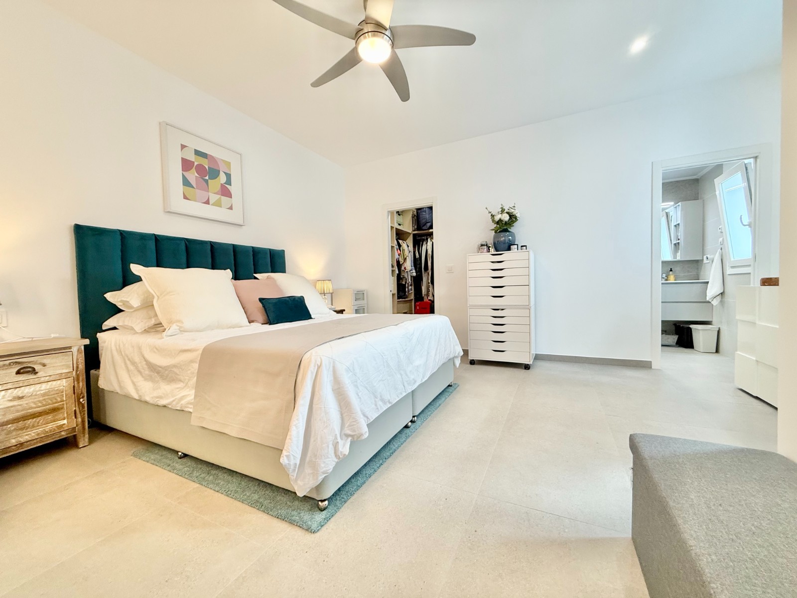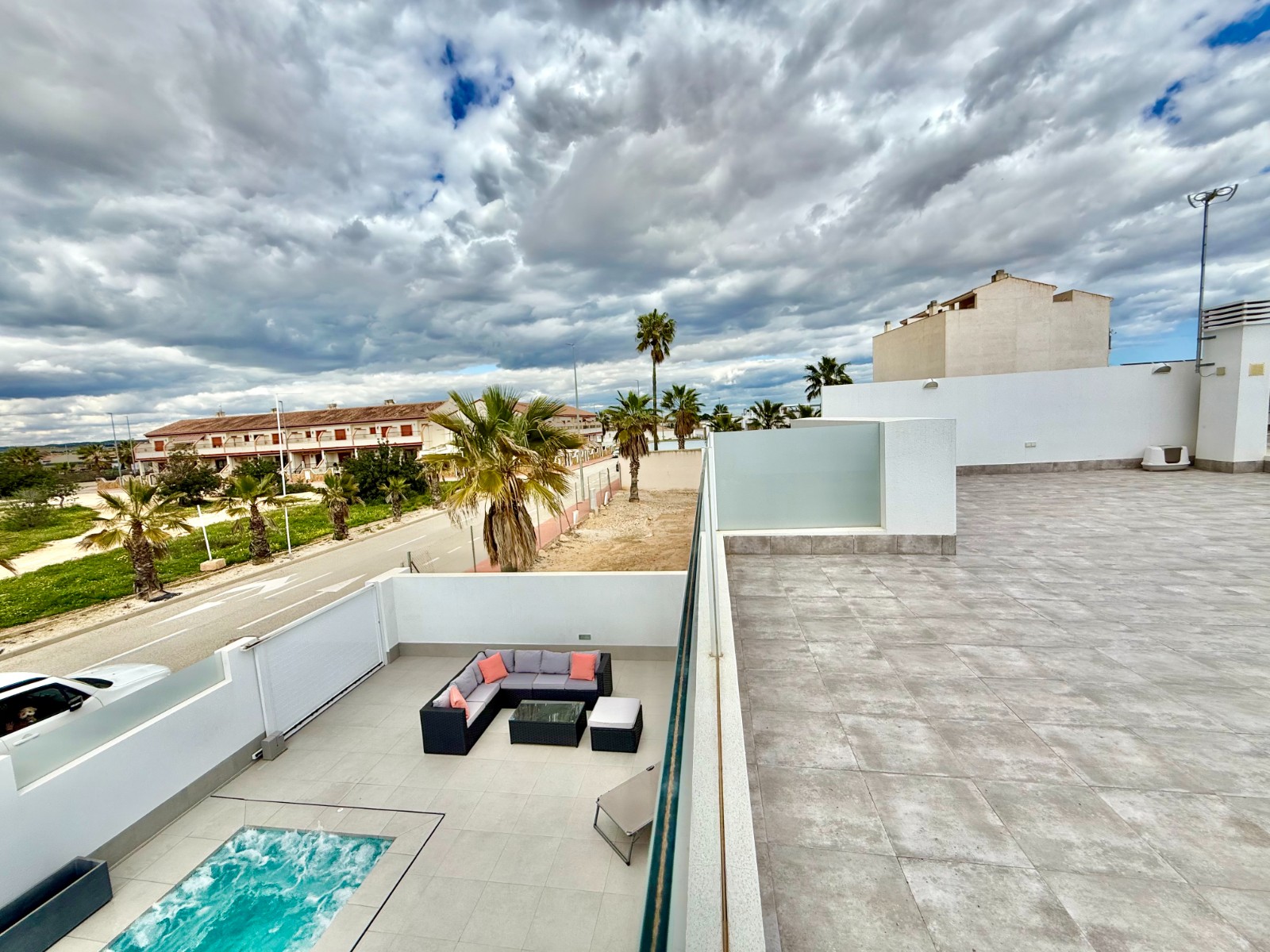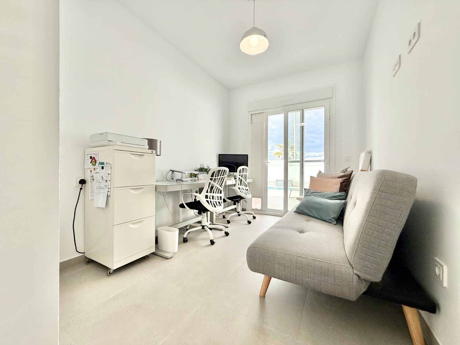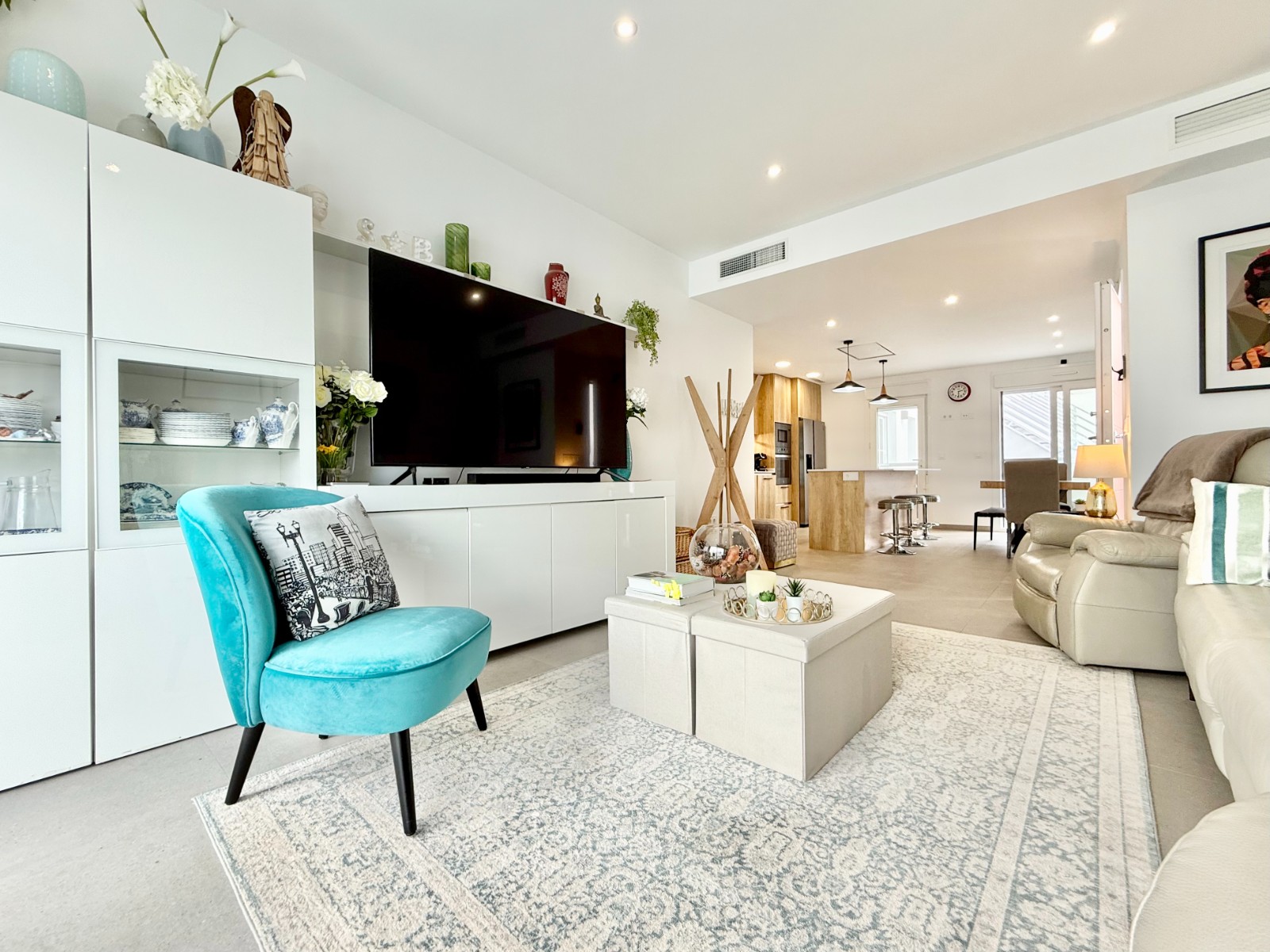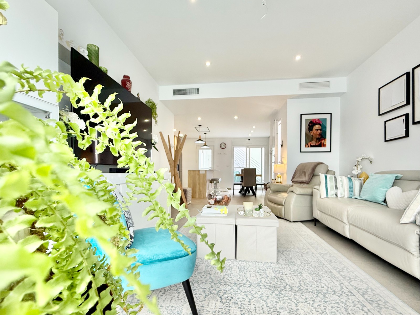 La vivienda es muy luminosa, amplia y ventilada, con 3 dormitorios dobles (uno de ellos con vestidor y baño en suite), baño con claraboya, amplio salón y cocina abierta espaciosa aunque lo mejor, además de la zona, es su terraza a pie de calle en forma de U con piscina y patio, su solarium y su entorno y vecinos.