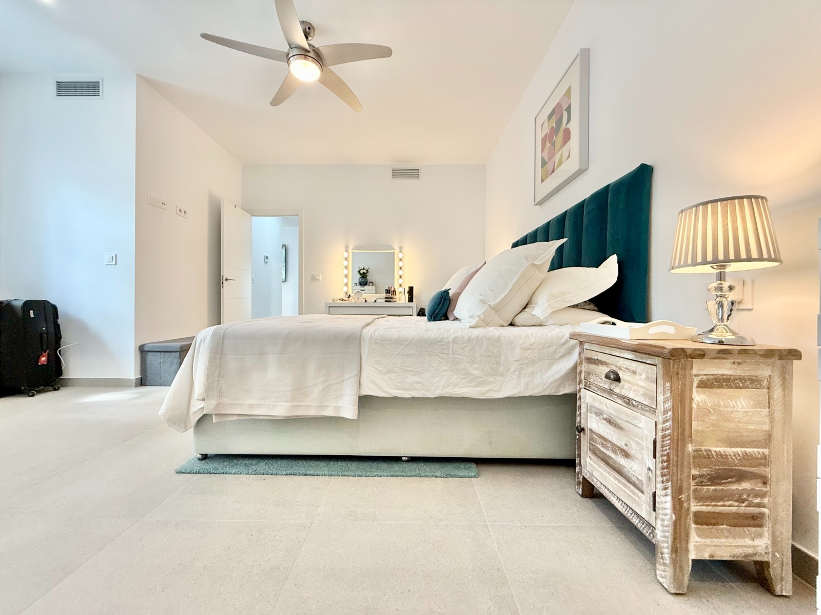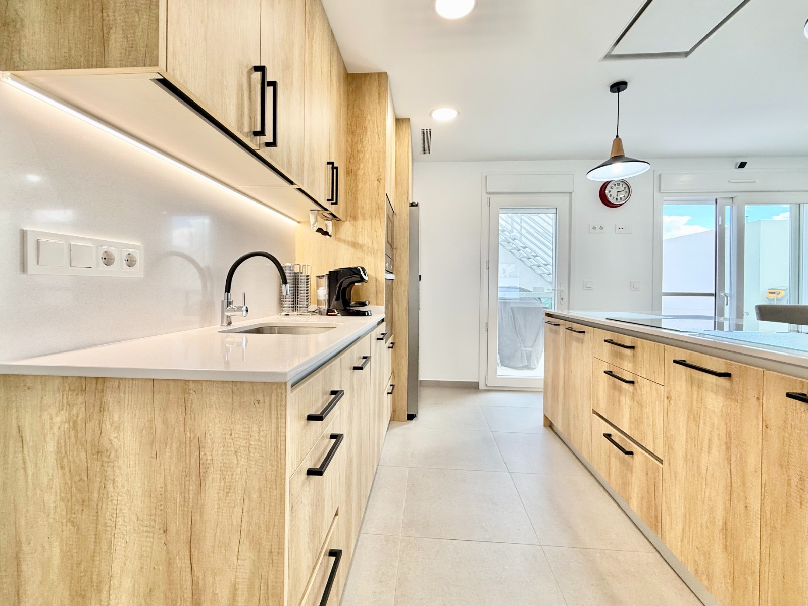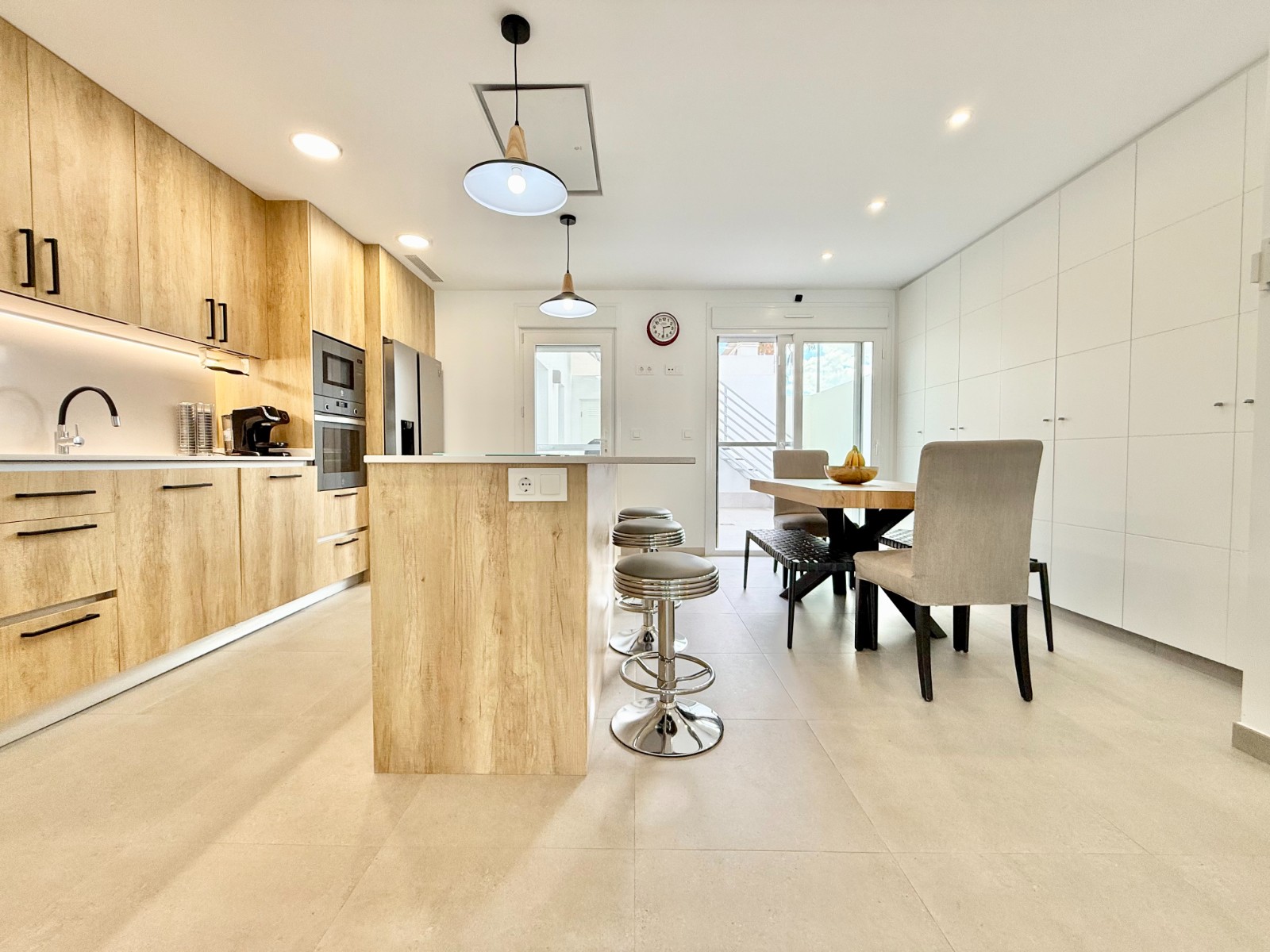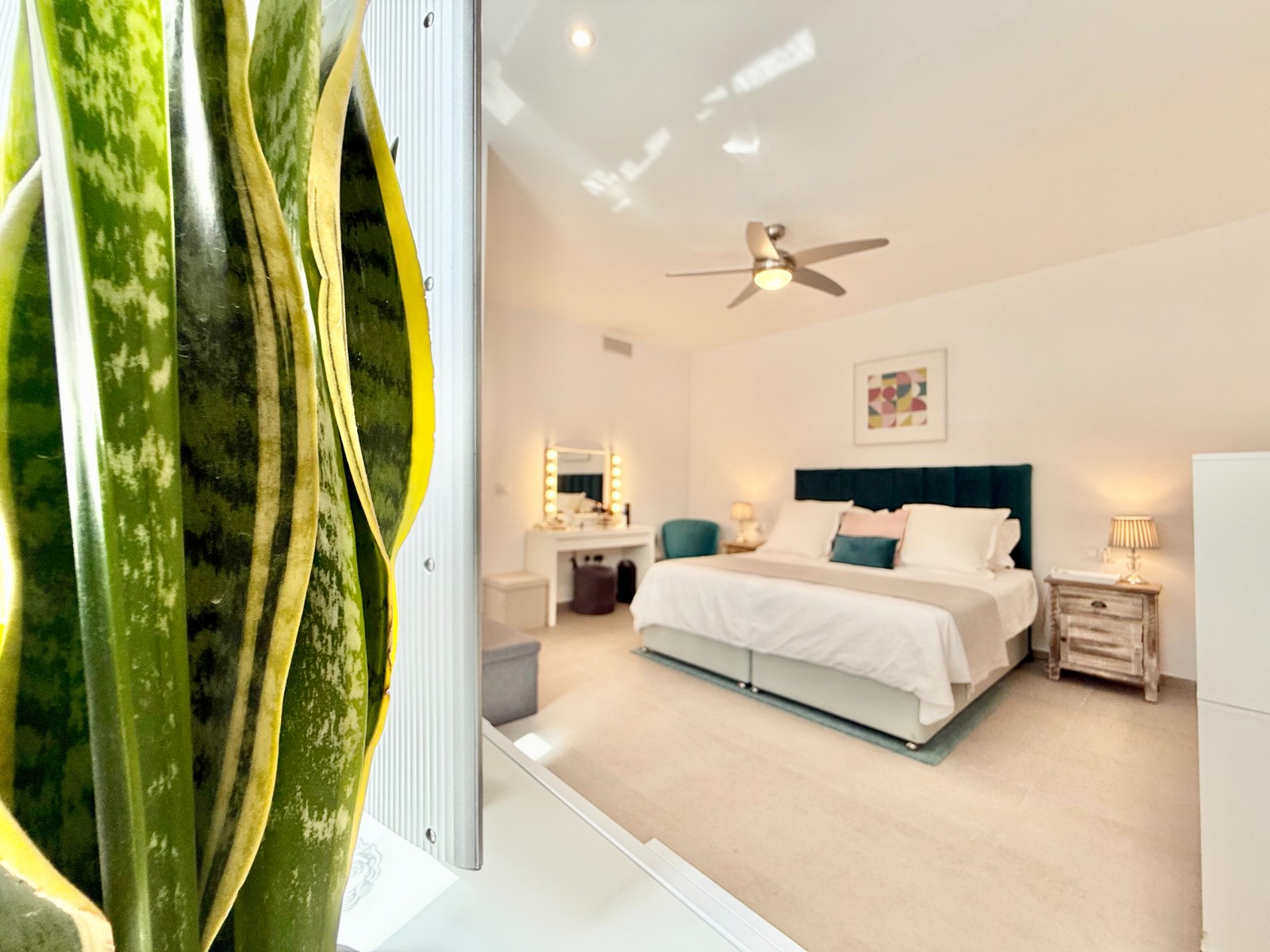 La vivienda es muy luminosa, amplia y ventilada, con 3 dormitorios dobles (uno de ellos con vestidor y baño en suite), baño con claraboya, amplio salón y cocina abierta espaciosa aunque lo mejor, además de la zona, es su terraza a pie de calle en forma de U con piscina y patio, su solarium y su entorno y vecinos.