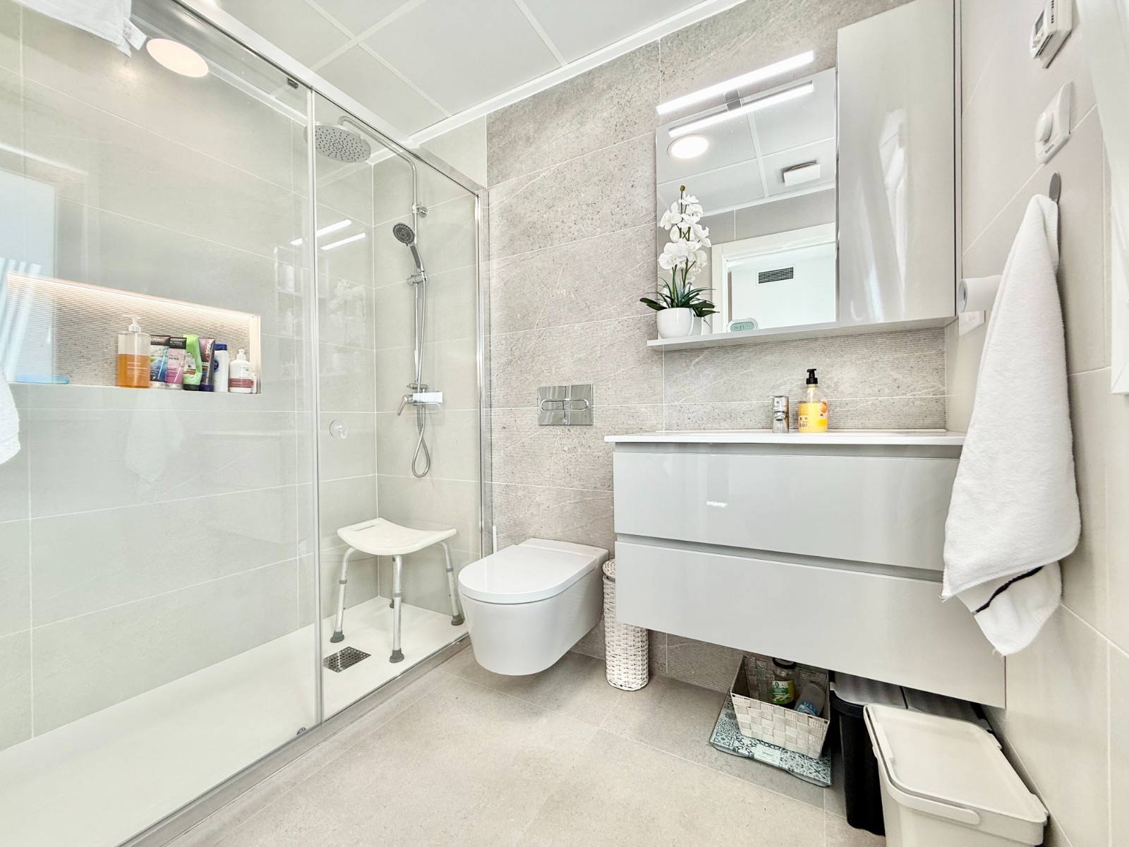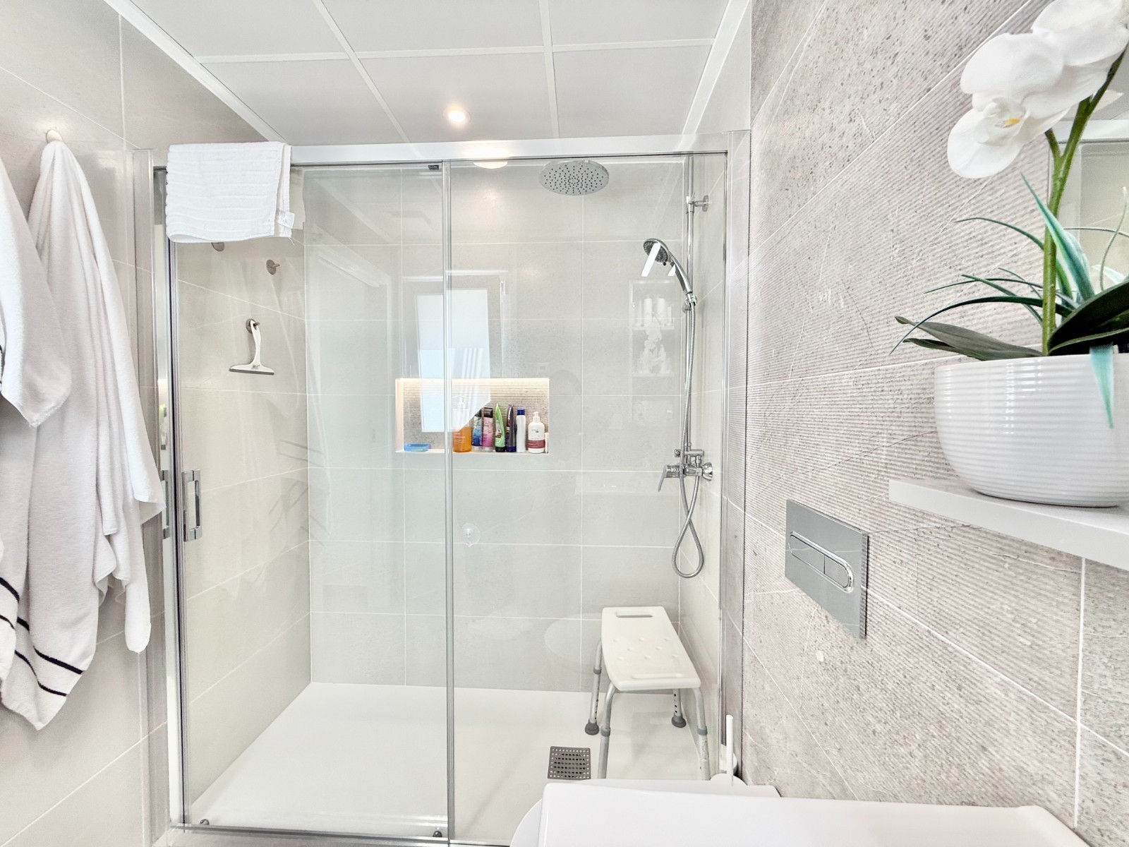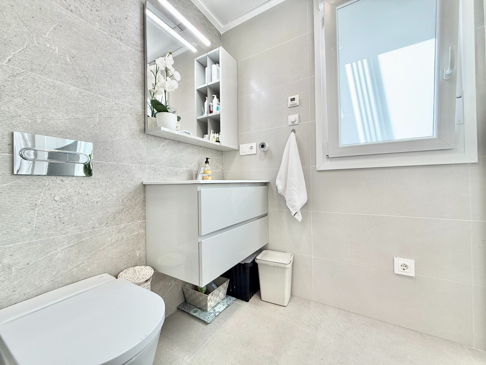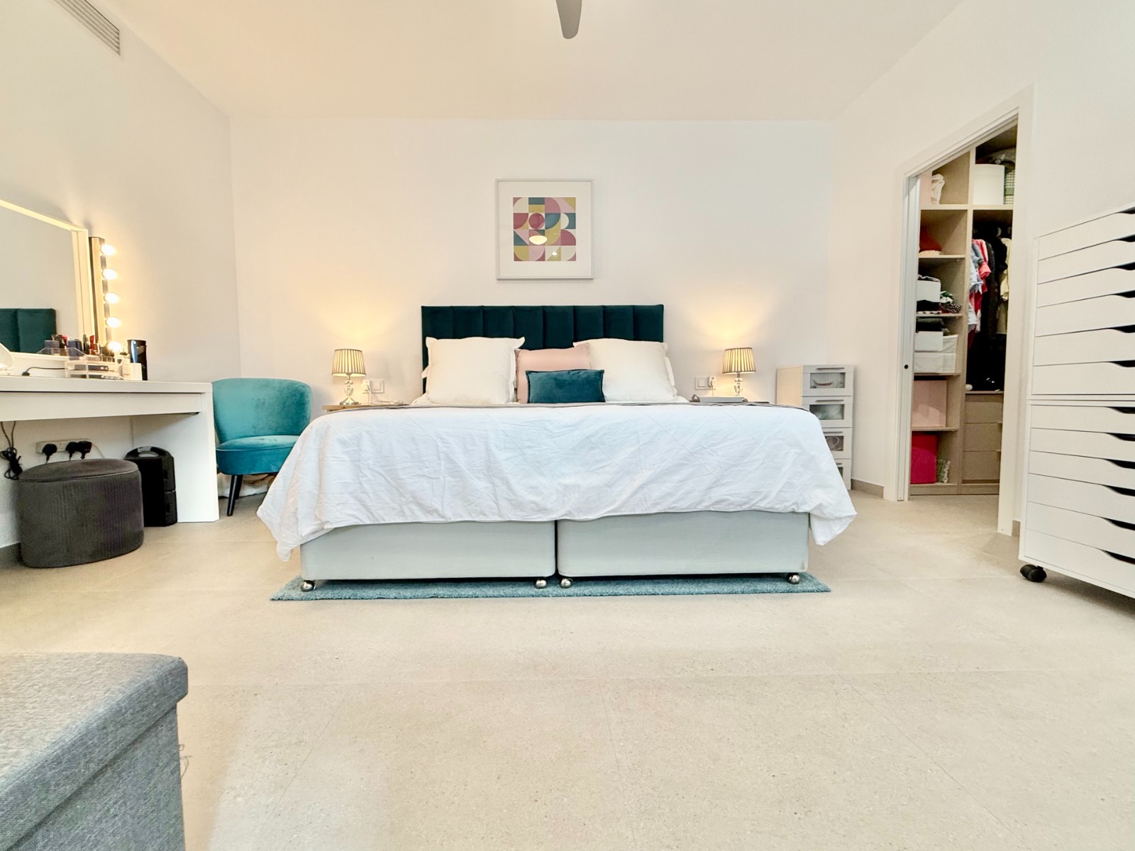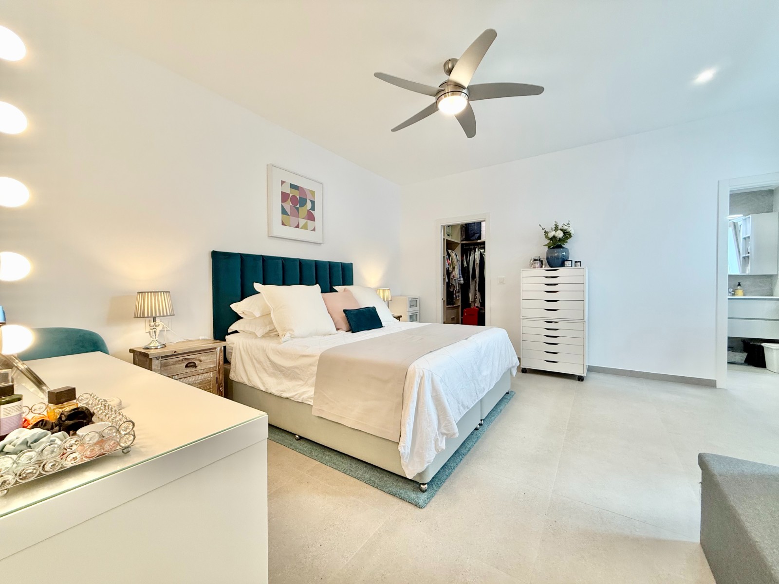 La vivienda es muy luminosa, amplia y ventilada, con 3 dormitorios dobles (uno de ellos con vestidor y baño en suite), baño con claraboya, amplio salón y cocina abierta espaciosa aunque lo mejor, además de la zona, es su terraza a pie de calle en forma de U con piscina y patio, su solarium y su entorno y vecinos.