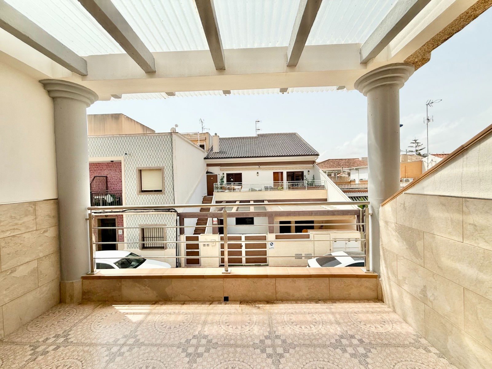 Al entrar, te recibe un salón amplio como los de antes, perfecto para reuniones familiares o con amigos. La cocina, justo a continuación, puede abrirse fácilmente tirando una pequeña pared para conseguir un concepto abierto y moderno. Desde aquí accedemos al patio trasero, donde encontrarás un baño y una práctica ducha exterior pensada para cuando vuelvas de la playa.