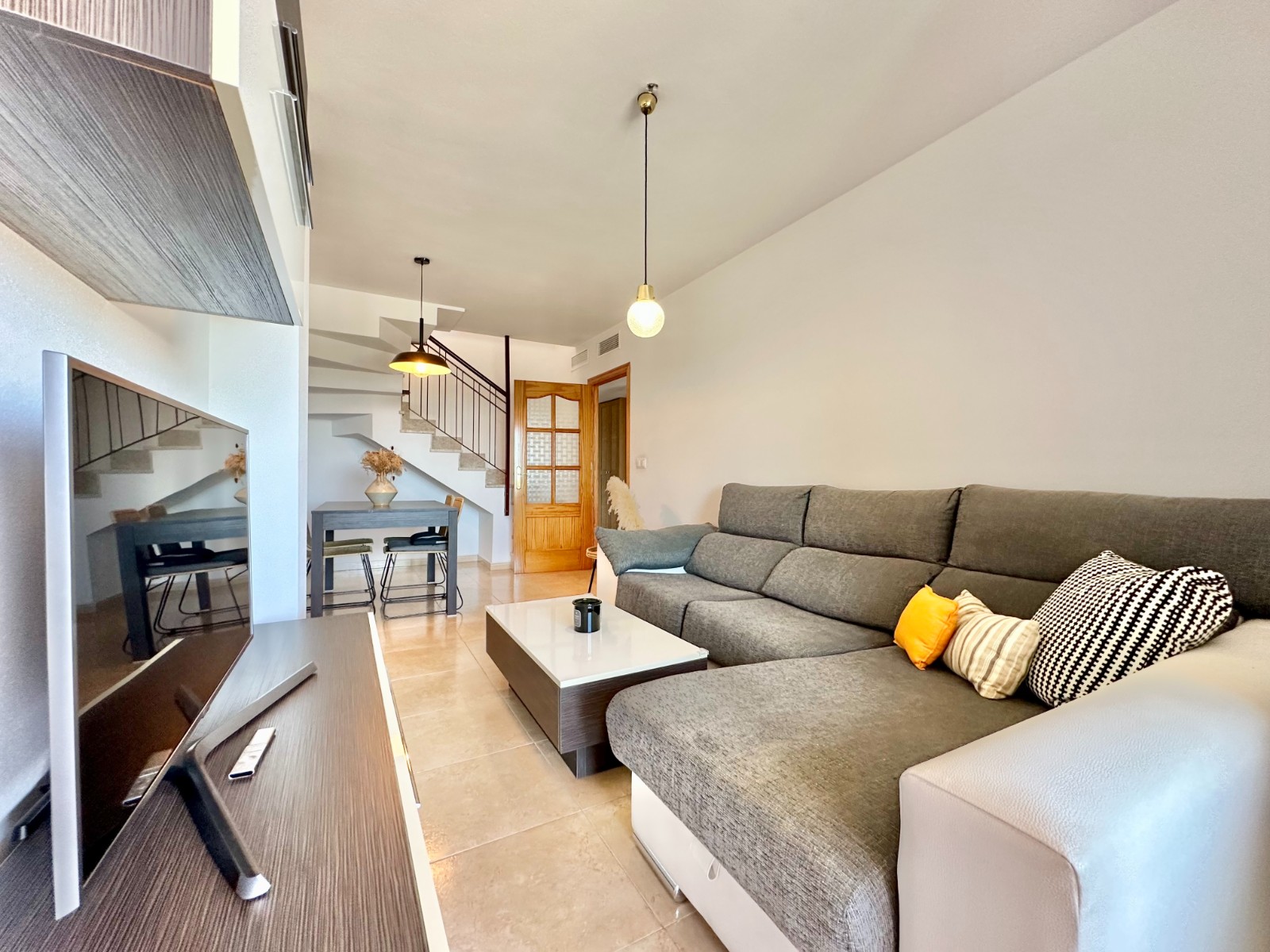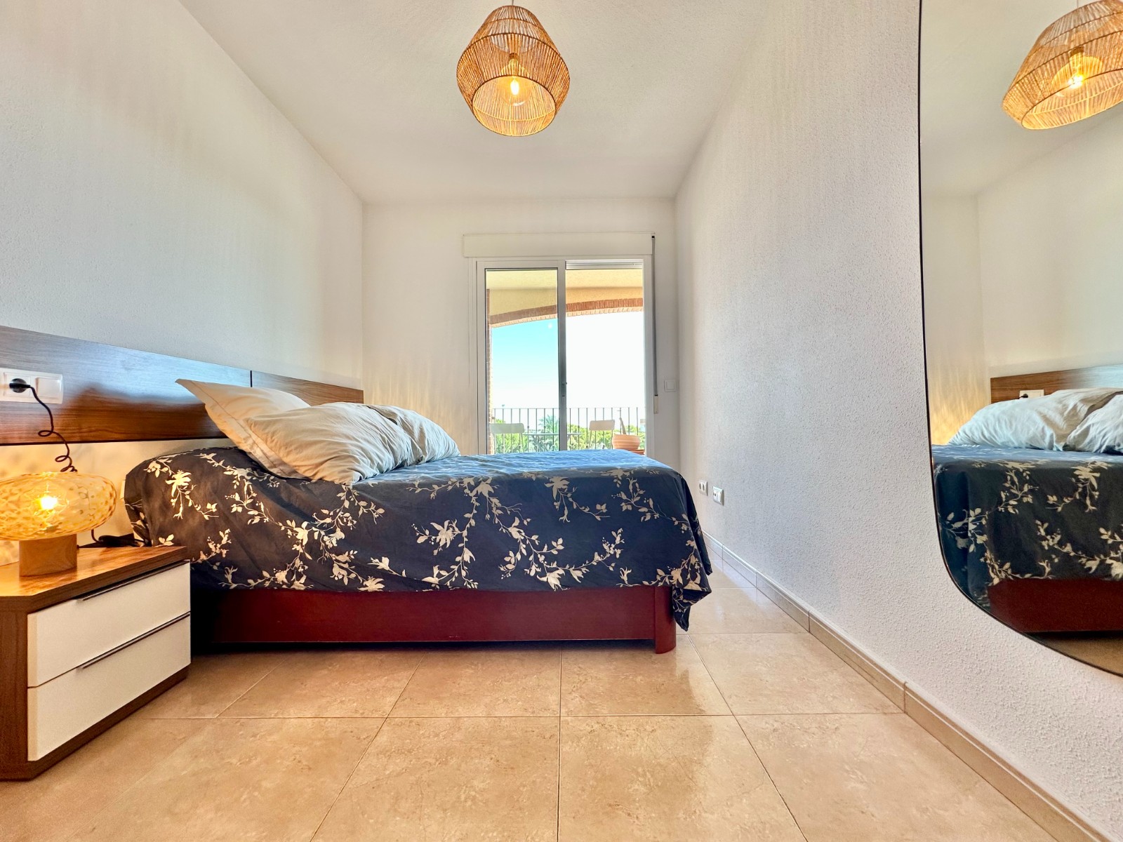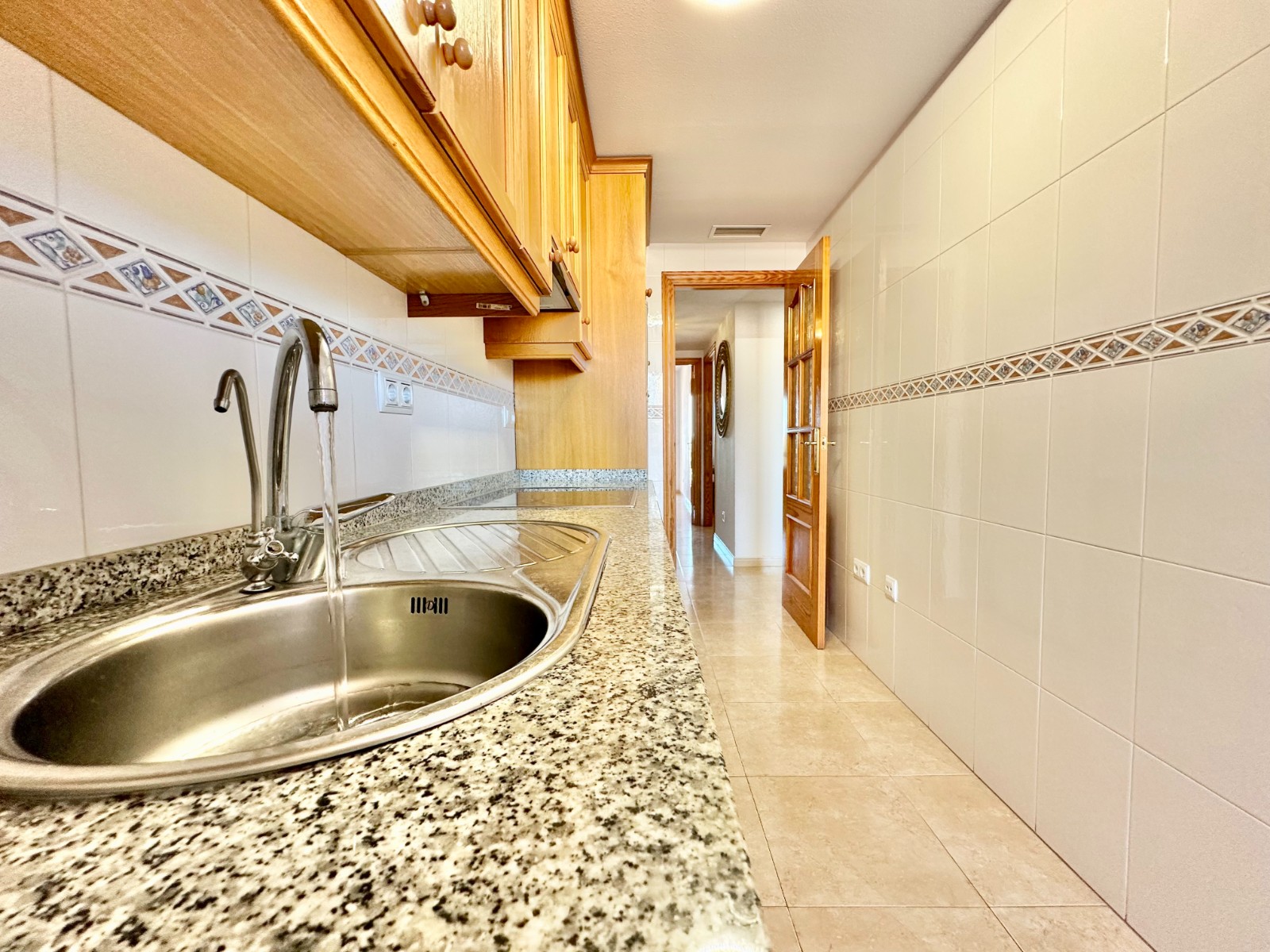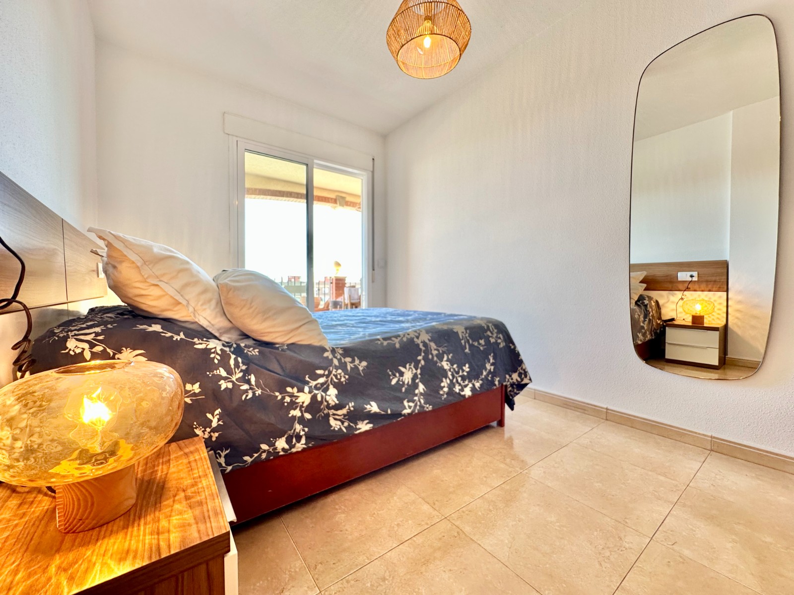 Piso ático con terraza solarium y vistas despejadas por ambos lados. De 2 habitaciones, cocina abierta al salón equipada con lavadero, salón comedor con subida a la terraza solarium muy grande y soleada donde si quieres, puedes hacer un cerramiento. 1 baño reformado completa la vivienda (además del garaje, la piscina y el trastero).