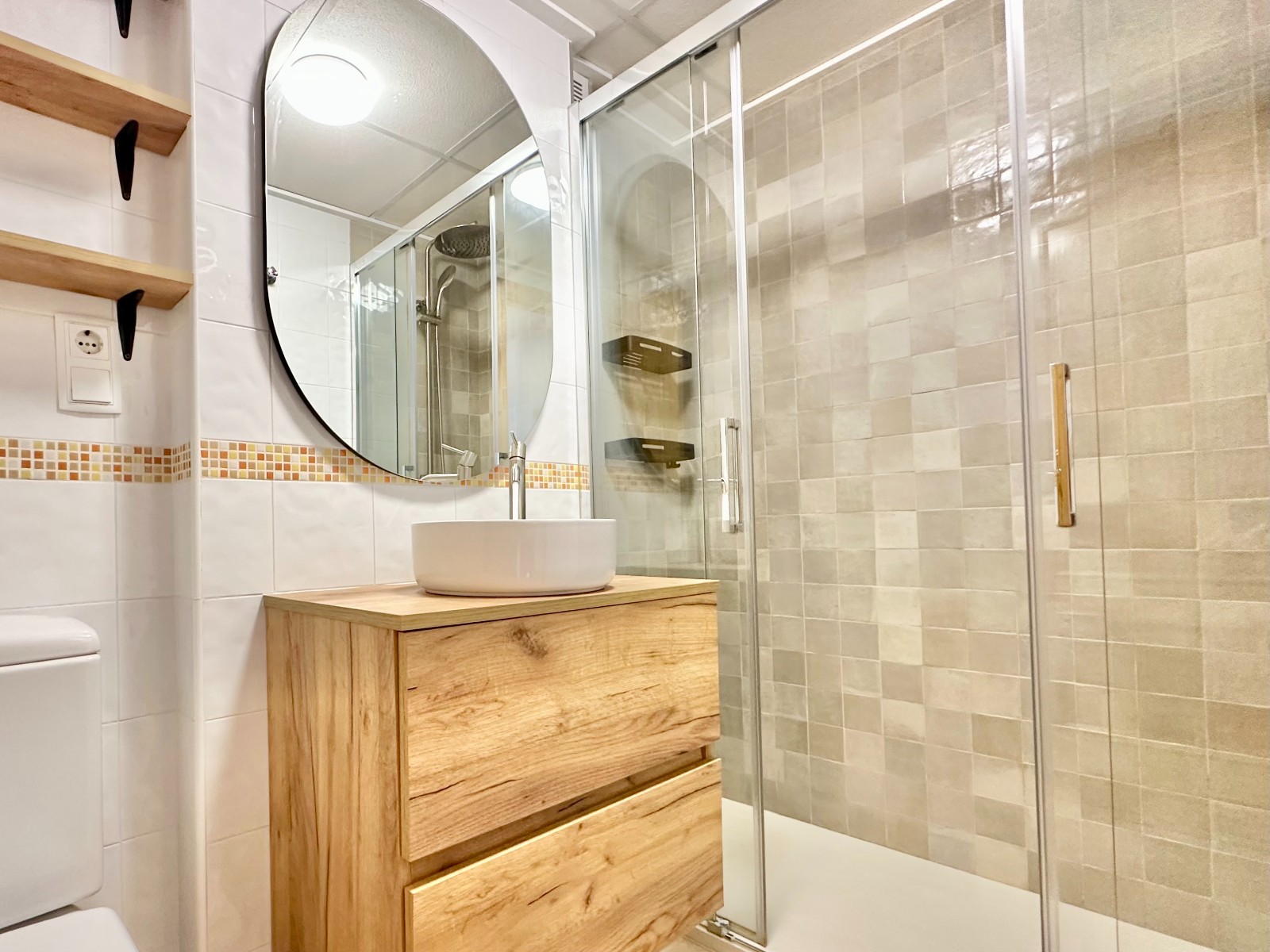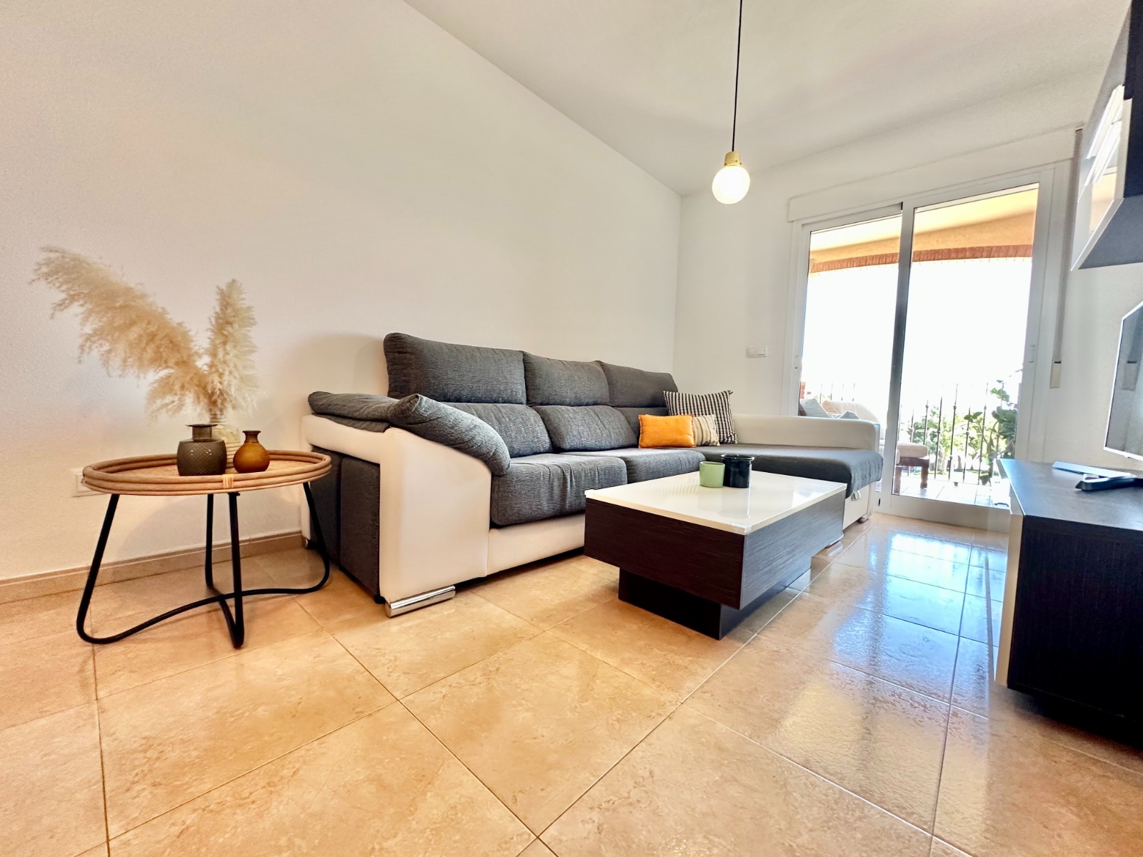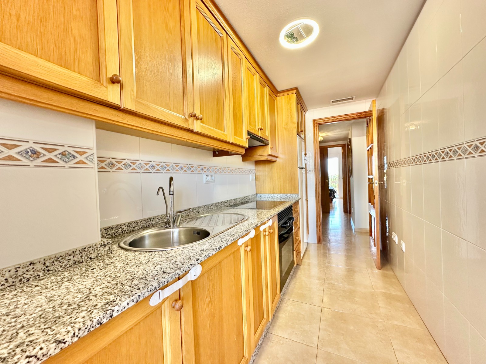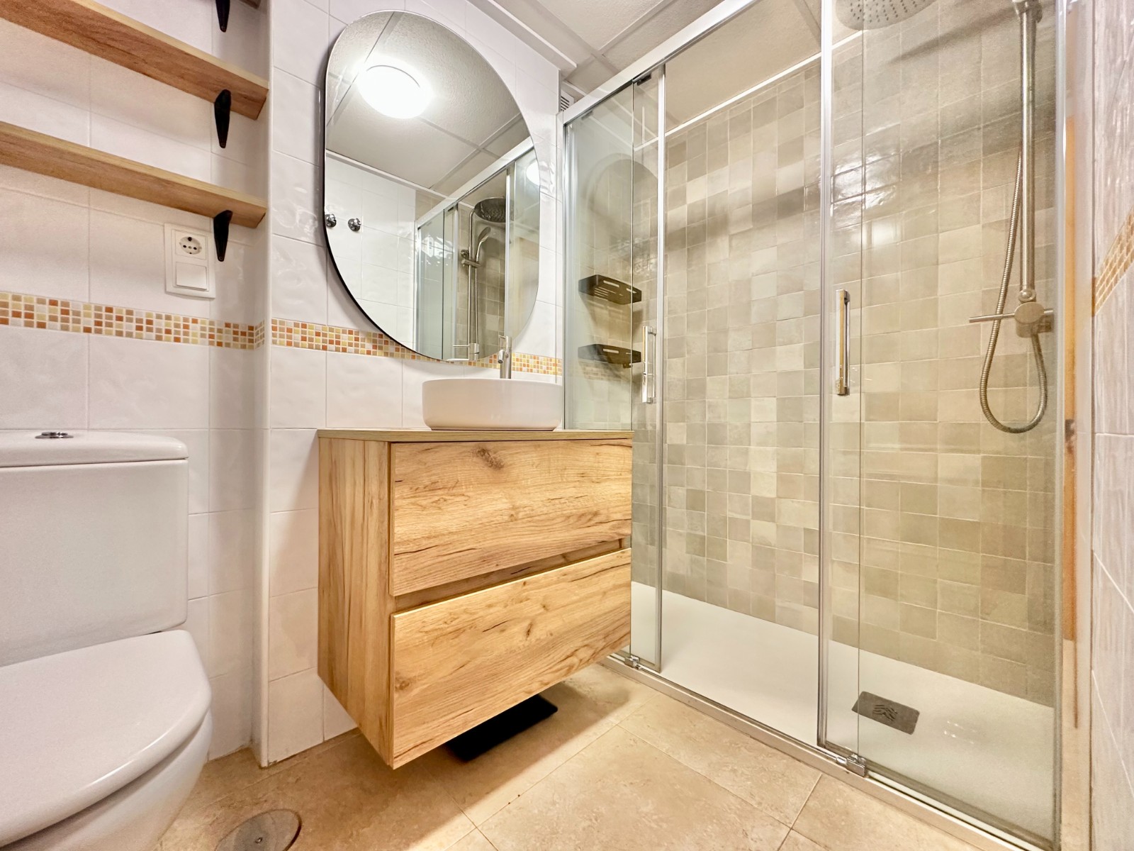 Piso ático con terraza solarium y vistas despejadas por ambos lados. De 2 habitaciones, cocina abierta al salón equipada con lavadero, salón comedor con subida a la terraza solarium muy grande y soleada donde si quieres, puedes hacer un cerramiento. 1 baño reformado completa la vivienda (además del garaje, la piscina y el trastero).